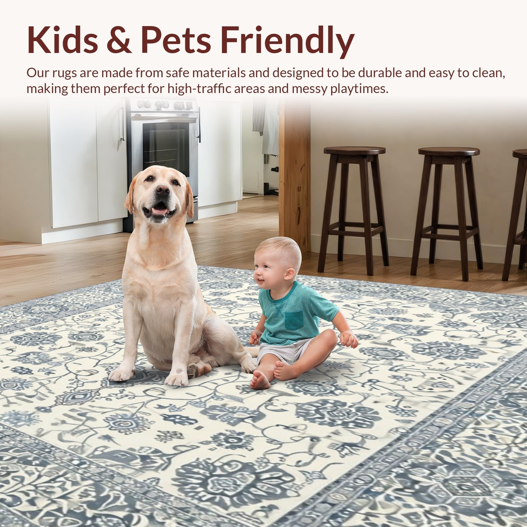 Ultra Soft Area Rug, Non Slip, Stain Resistant, Washable Area Rugs for Living Room, Bedroom, Modern Paisley Runner for Hallways(White) Overview: