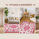 Ultra Soft Area Rug, Non Slip, Stain Resistant, Washable Area Rugs for Living Room, Bedroom, Modern Pastel Floral Fusion(White) Overview: