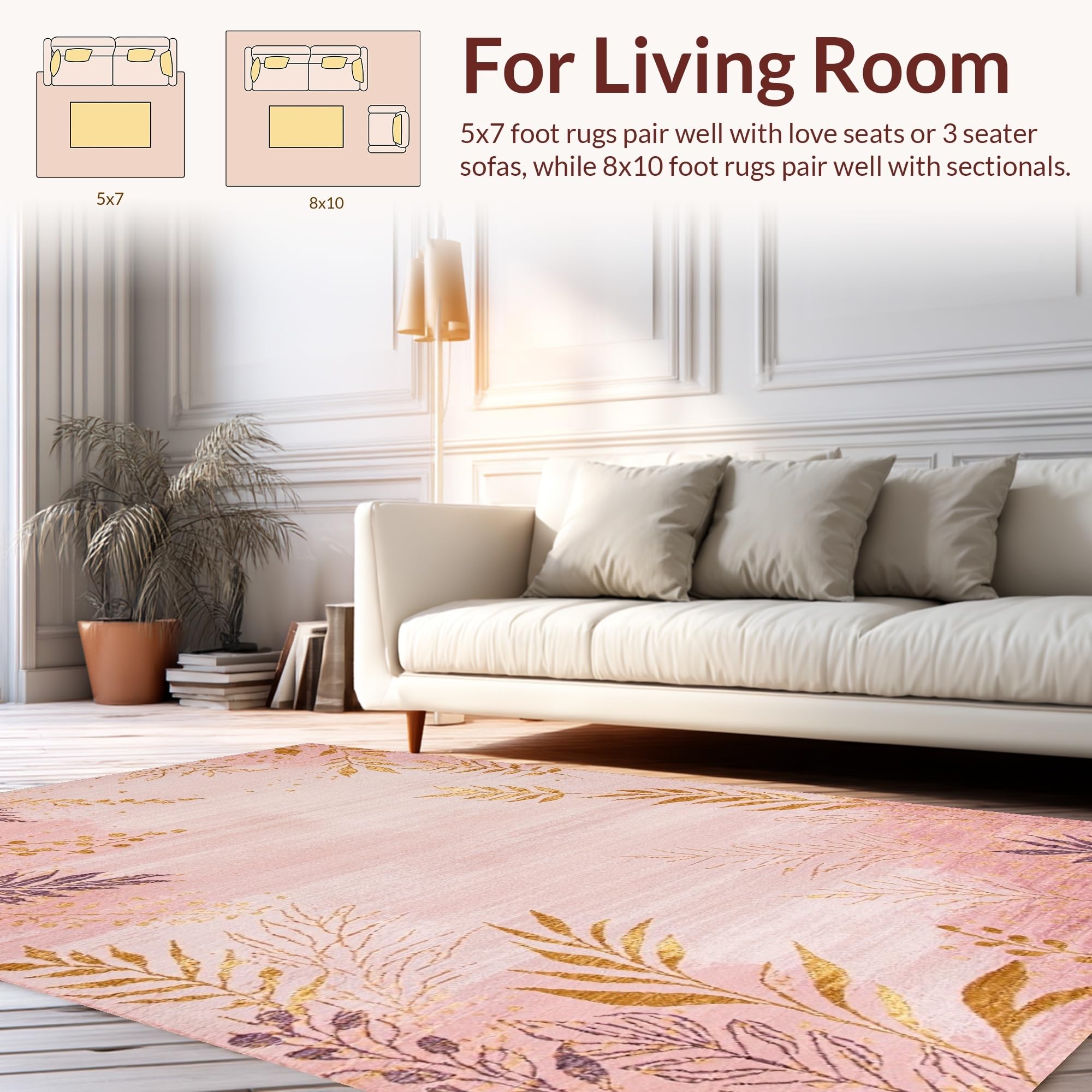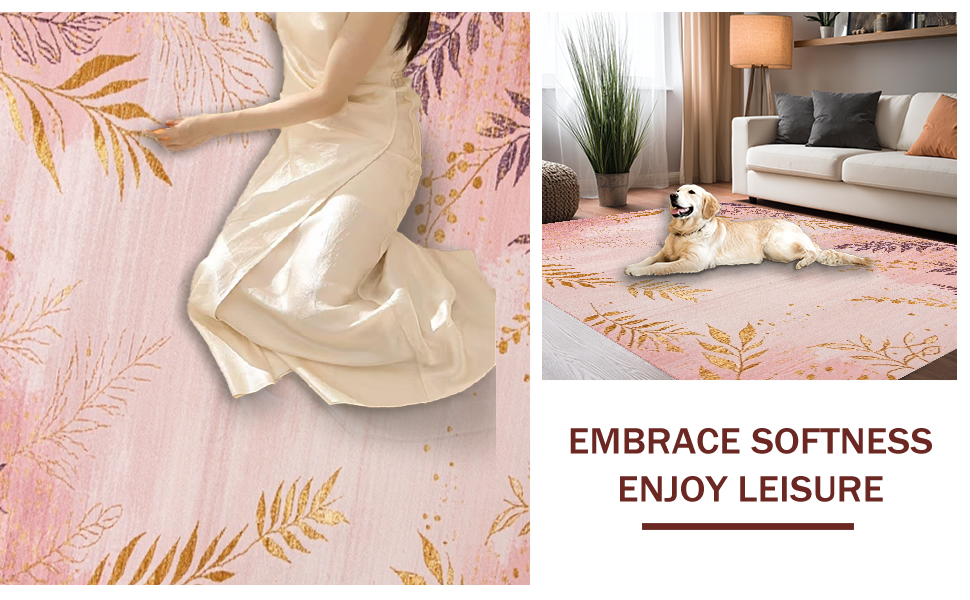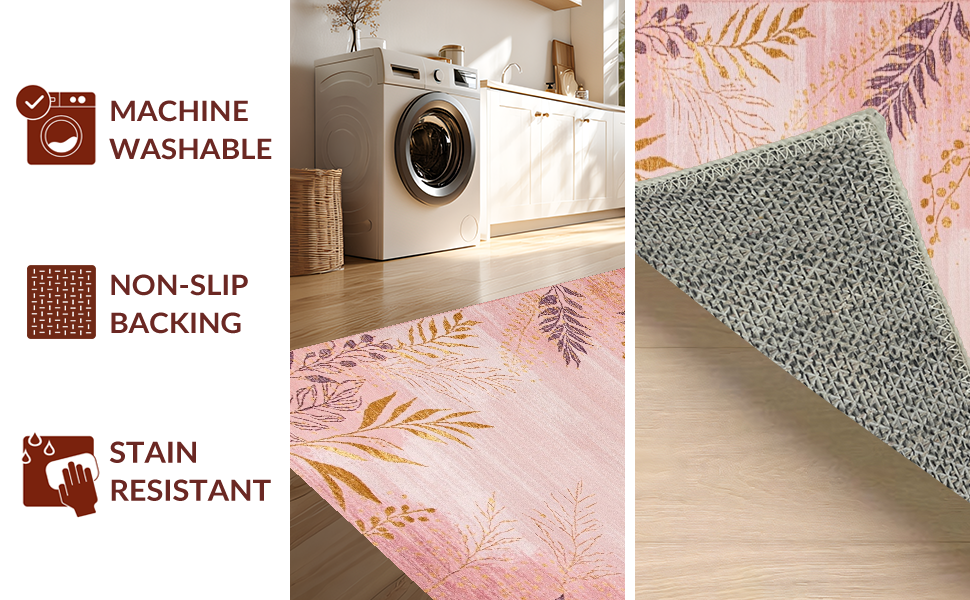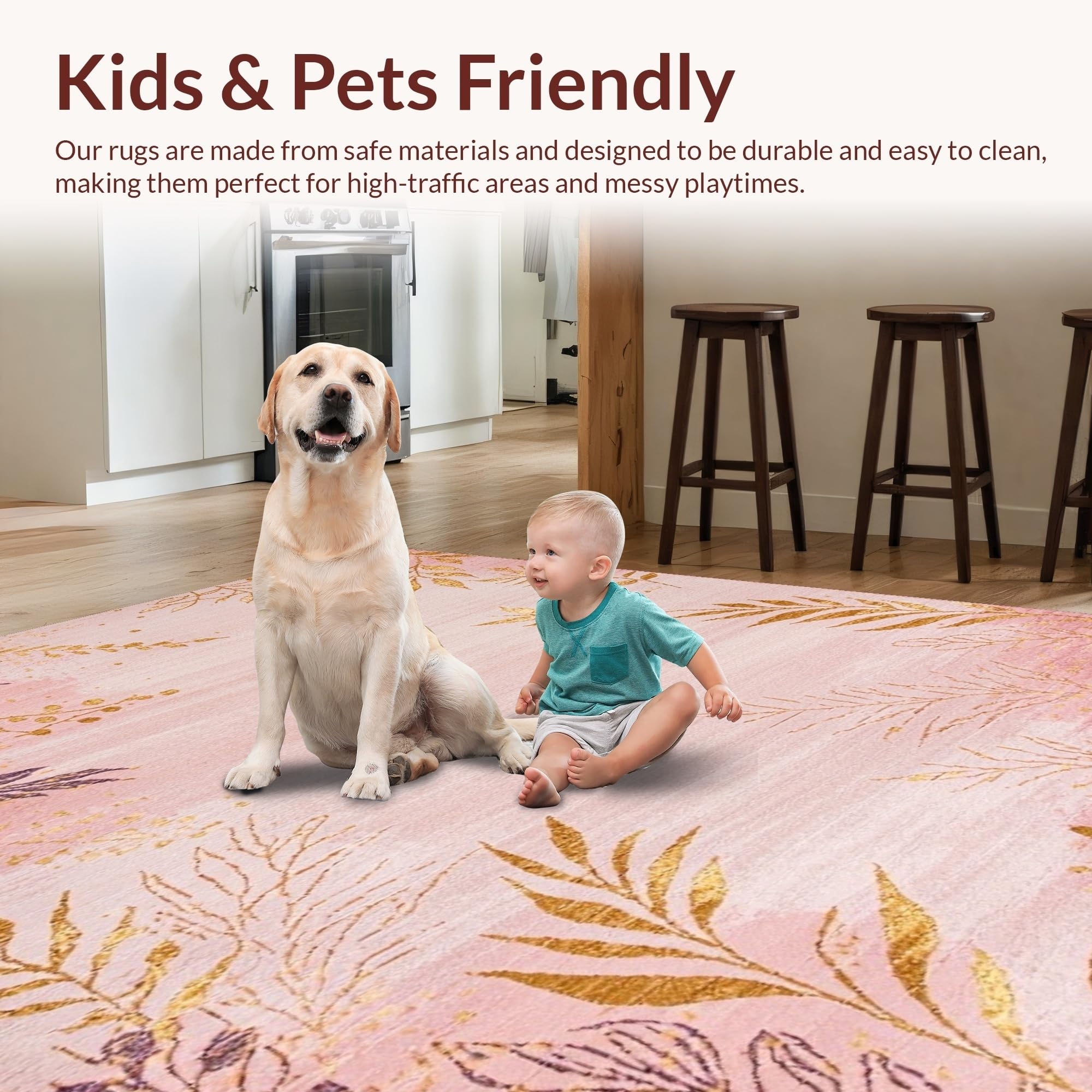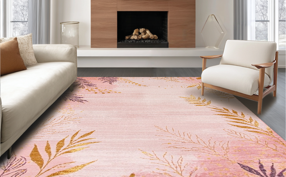 Ultra Soft Area Rug, Non Slip, Stain Resistant, Washable Area Rugs for Living Room, Bedroom, Modern Pastel Floral Overlay(Pink) Overview:
