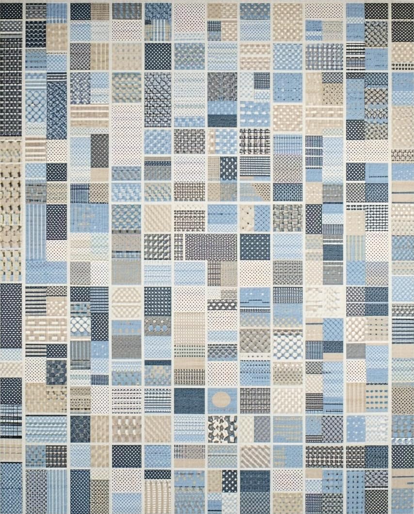 Modern Patchwork Area Geometric Design Beige Blue(Blue)