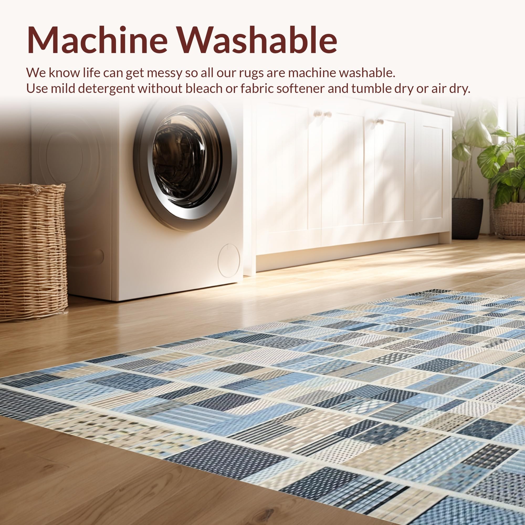 - Machine Washable: Our rugs can be easily thrown in the wash machine.