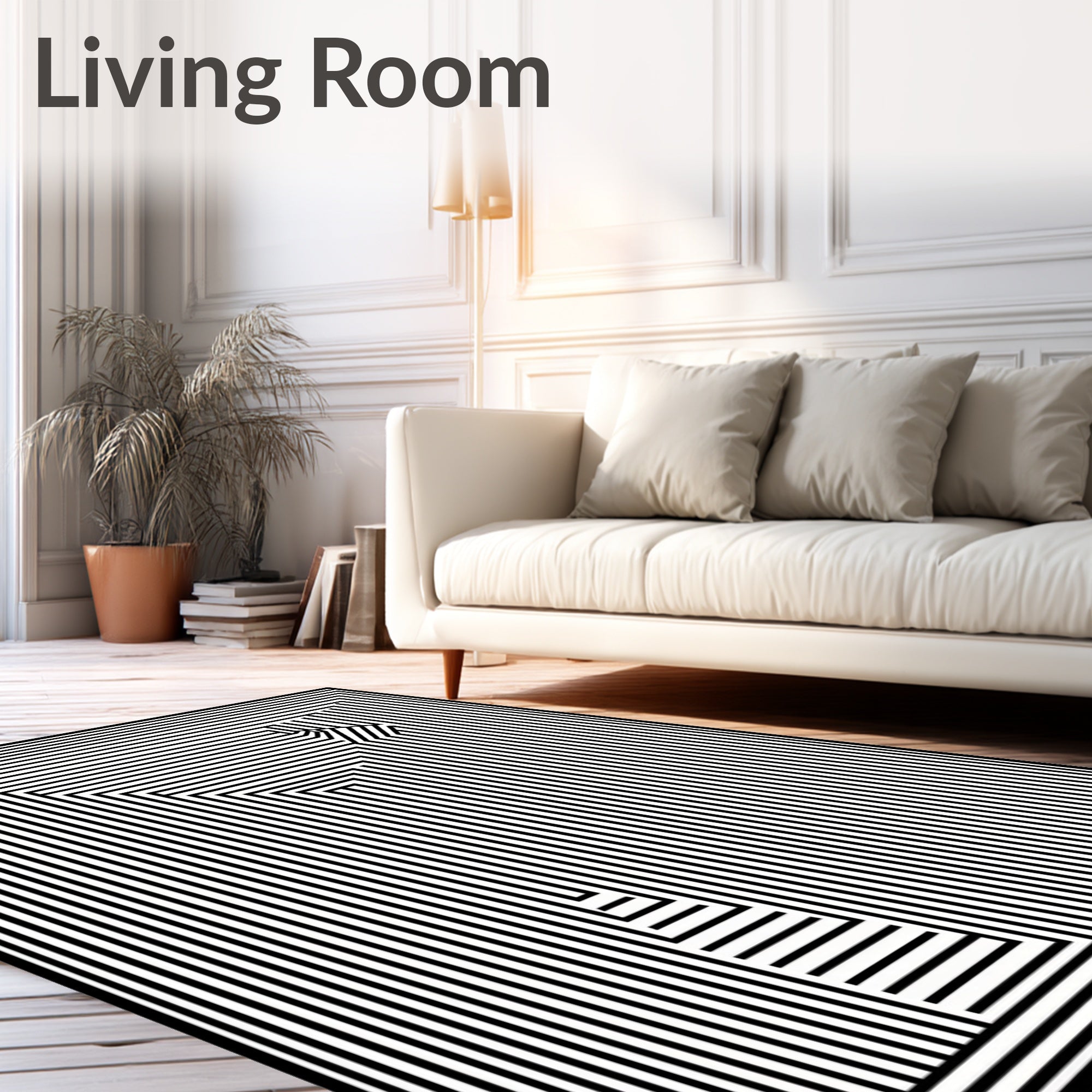 Flatwoven High Traffic Area Rug, Modern Pinstripe Minimalist Contrast Design, Non Slip, Stain Resistant, Washable Area Rugs for Living Room, Bedroom (Black) Overview: