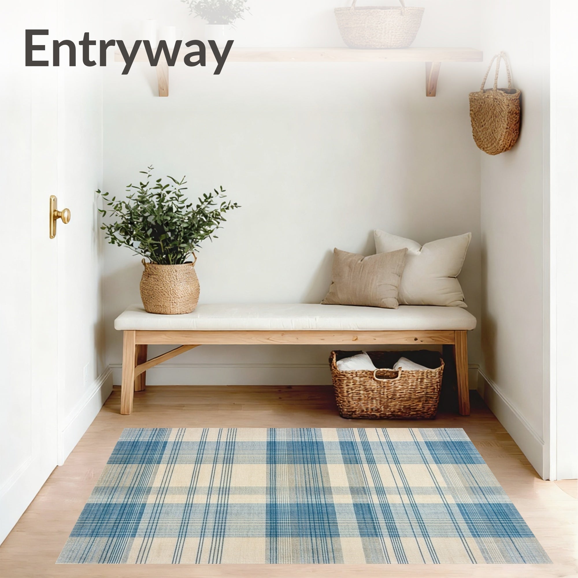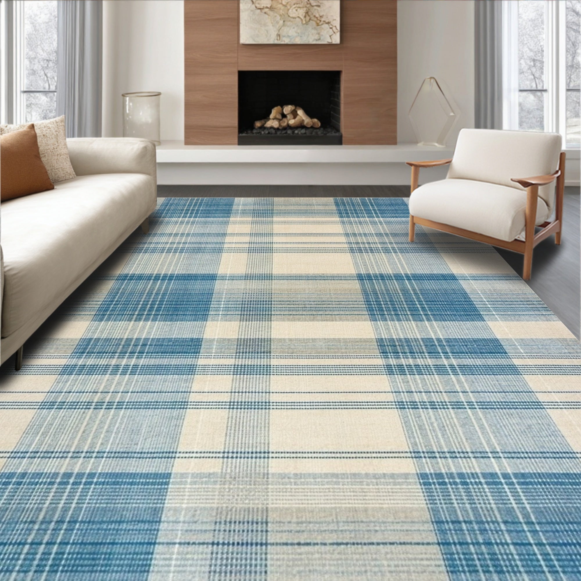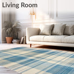 Ultra Soft Area Rug, Non Slip, Stain Resistant, Washable Area Rugs for Living Room, Bedroom, Modern Plaid Area with Irregular Grid Lines and Muted Blue Beige Tones(Beige) Overview: