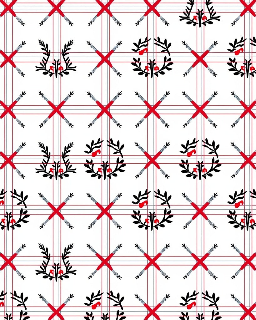 Modern Plaid With Abstract Holiday Laurel Accents(Red)