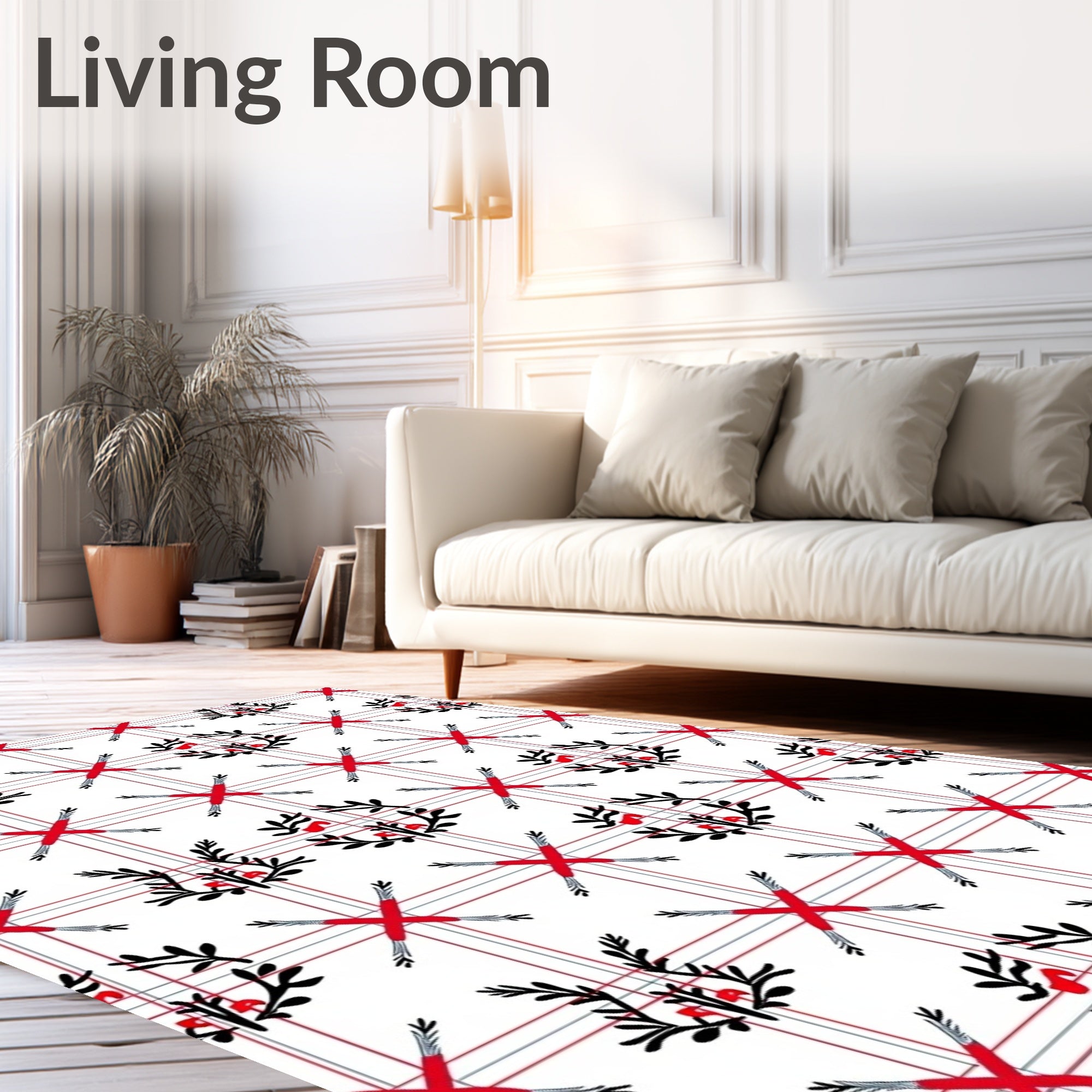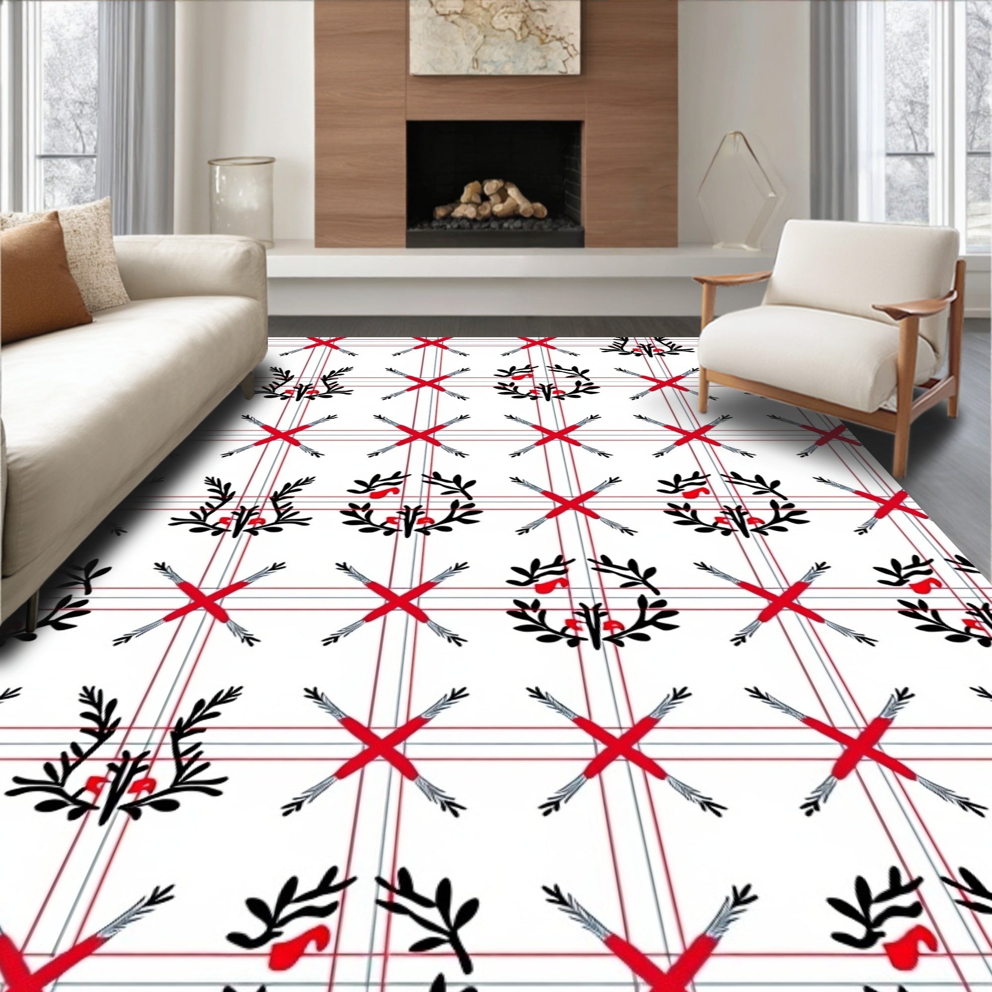 Ultra Soft Area Rug, Non Slip, Stain Resistant, Washable Area Rugs for Living Room, Bedroom, Modern Plaid With Abstract Holiday Laurel Accents(Red) Overview: