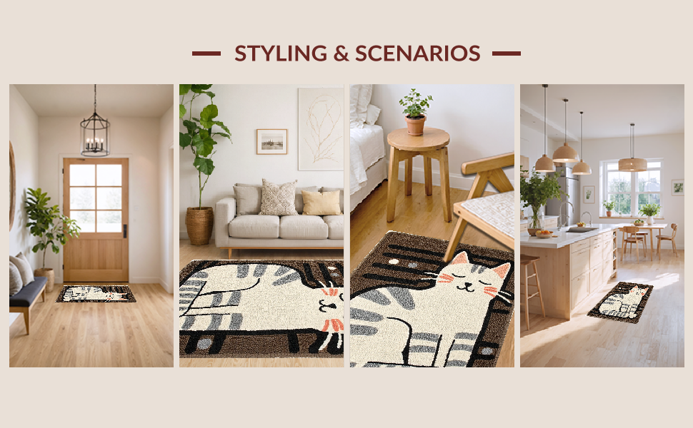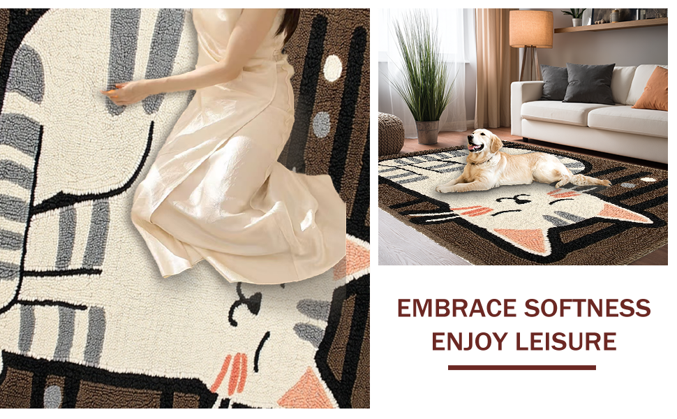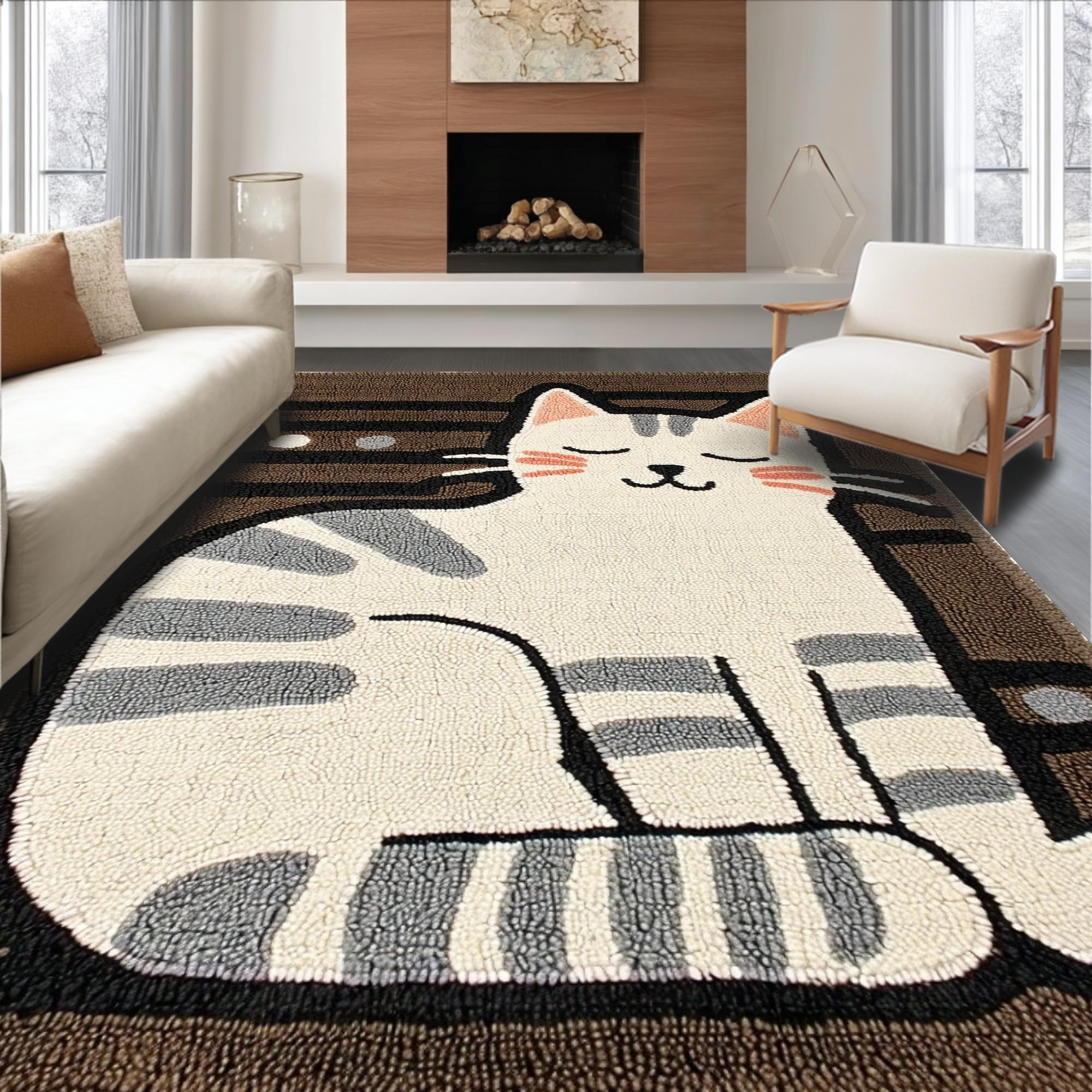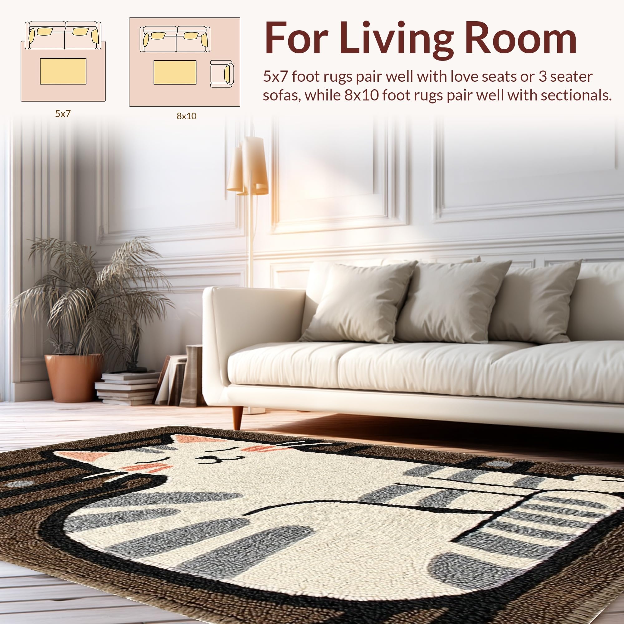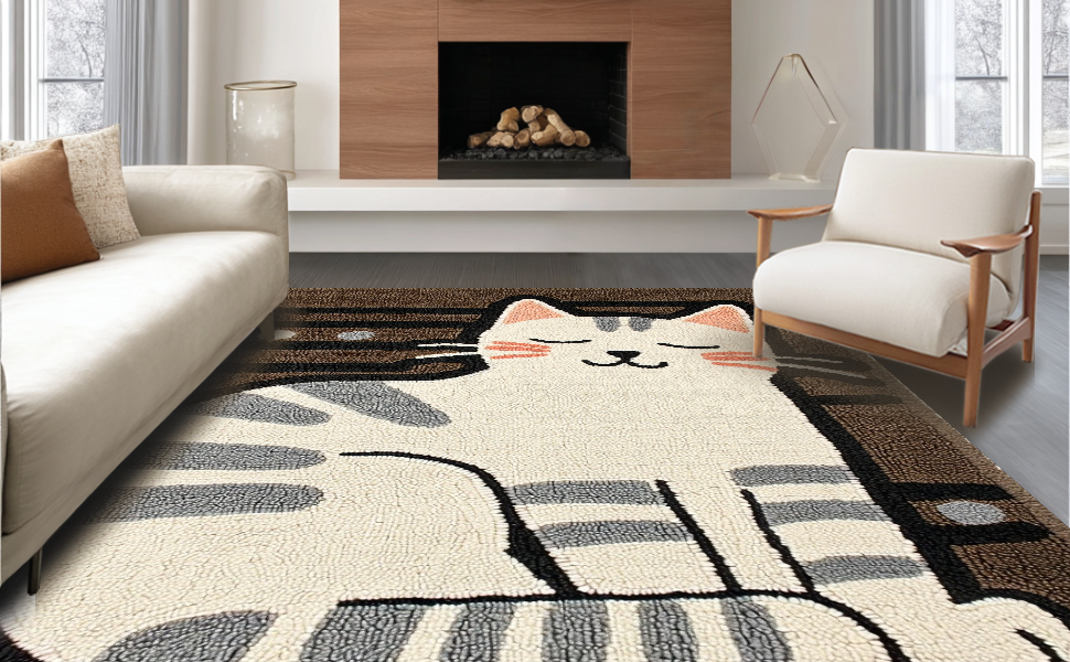 Ultra Soft Area Rug, Non Slip, Stain Resistant, Washable Area Rugs for Living Room, Bedroom, Modern Playful Feline Design(Gray) Overview: