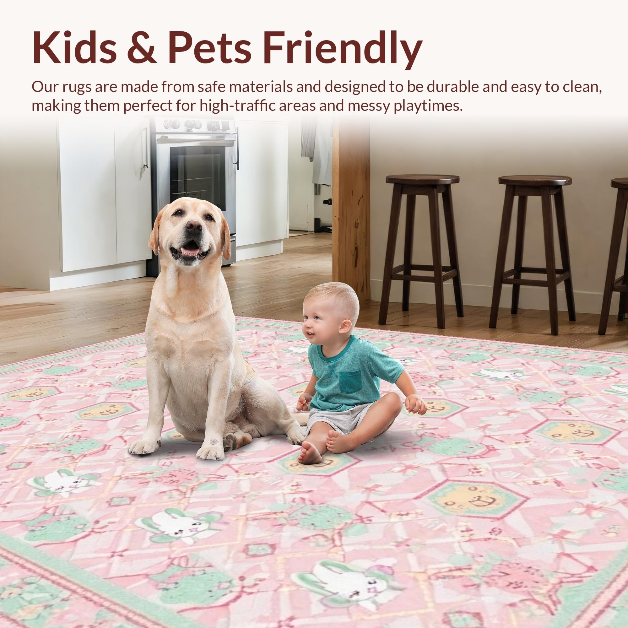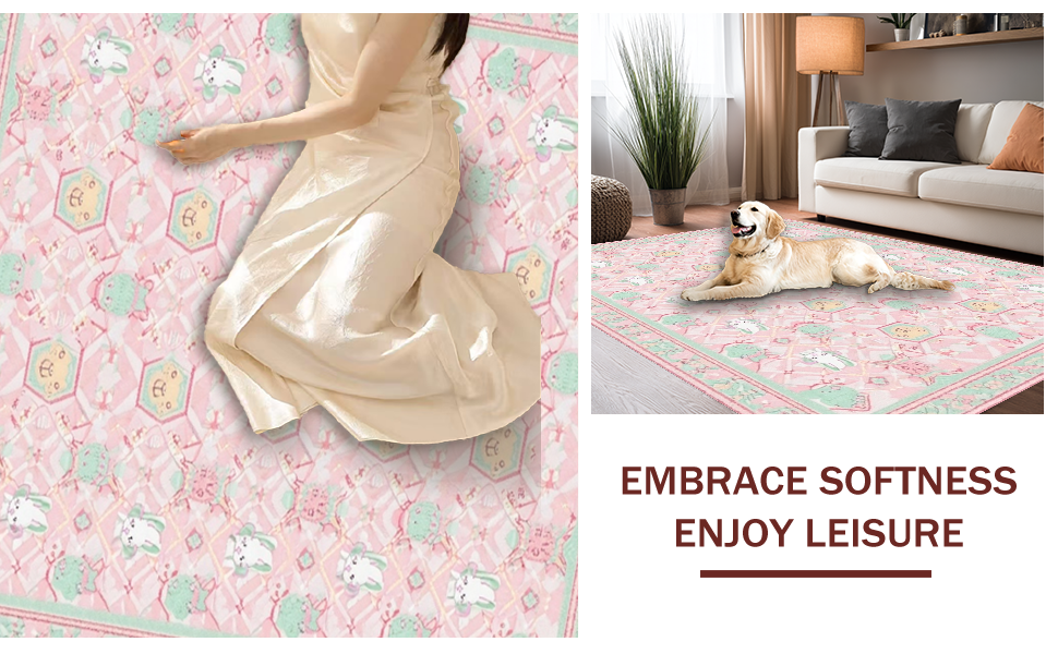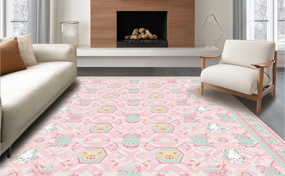 Ultra Soft Area Rug, Non Slip, Stain Resistant, Washable Area Rugs for Living Room, Bedroom, Modern Playful Geometric Theme(Pink) Overview: