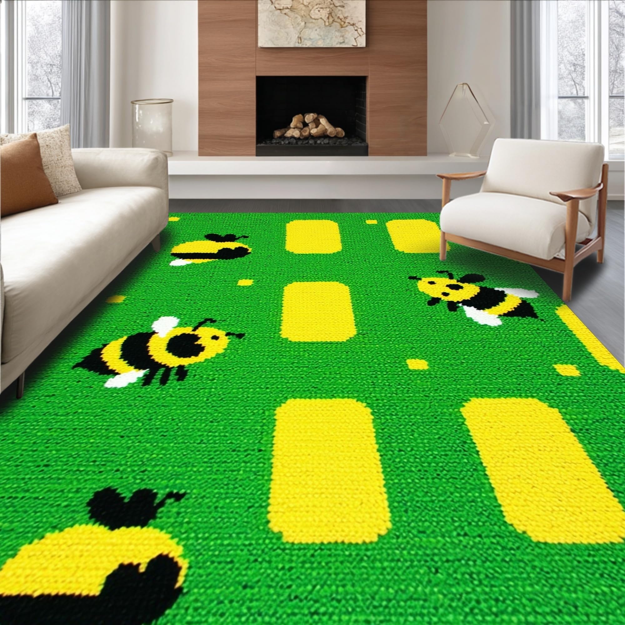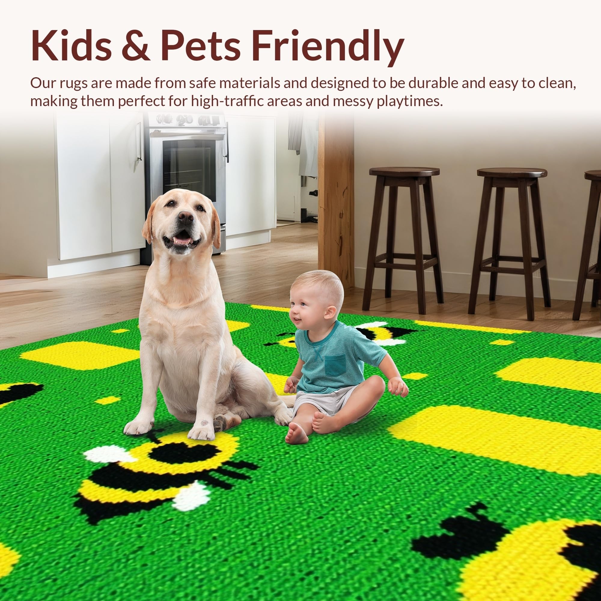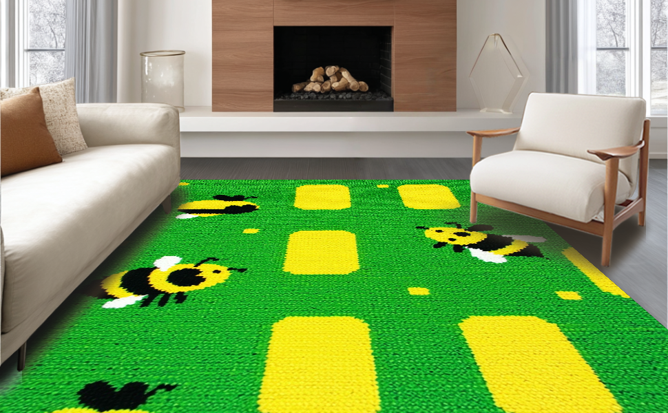 Ultra Soft Area Rug, Non Slip, Stain Resistant, Washable Area Rugs for Living Room, Bedroom, Modern Playful Insect Motif(Green) Overview: