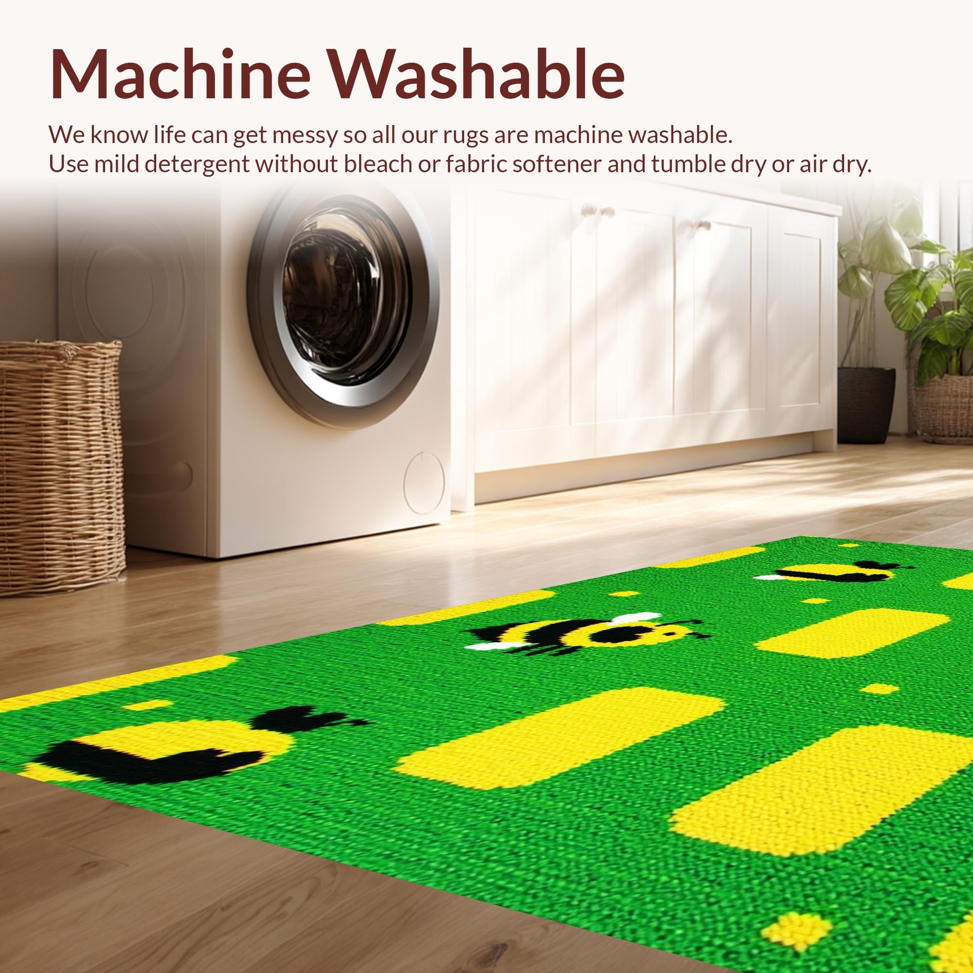- Machine Washable: Our rugs can be easily thrown in the wash machine.