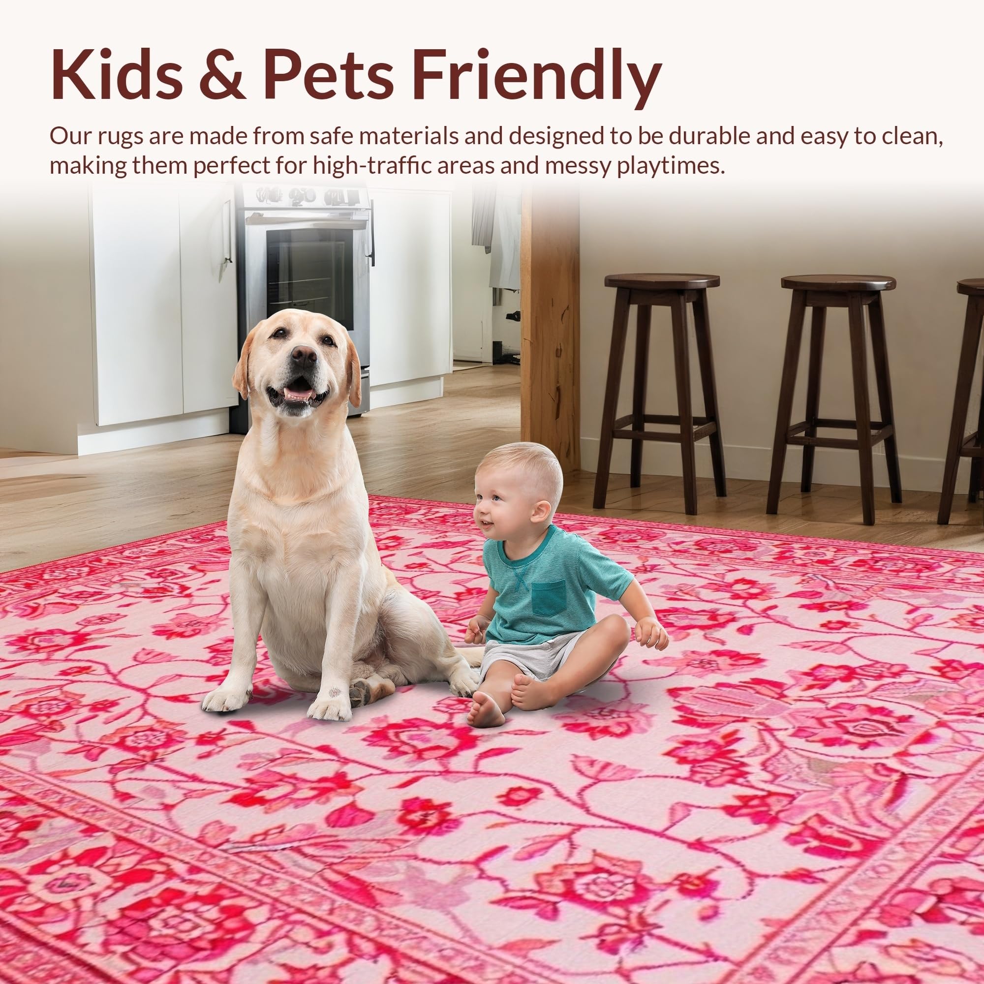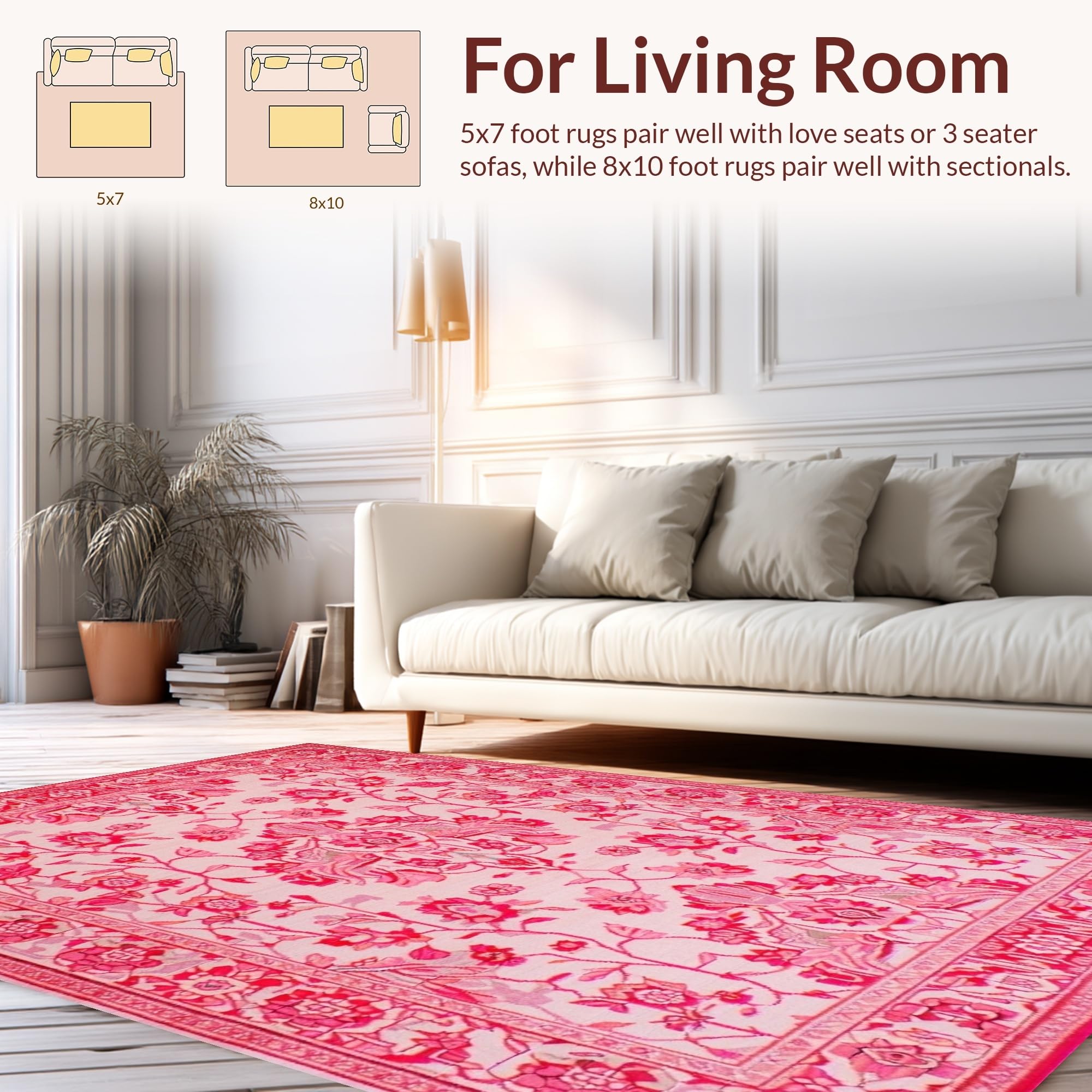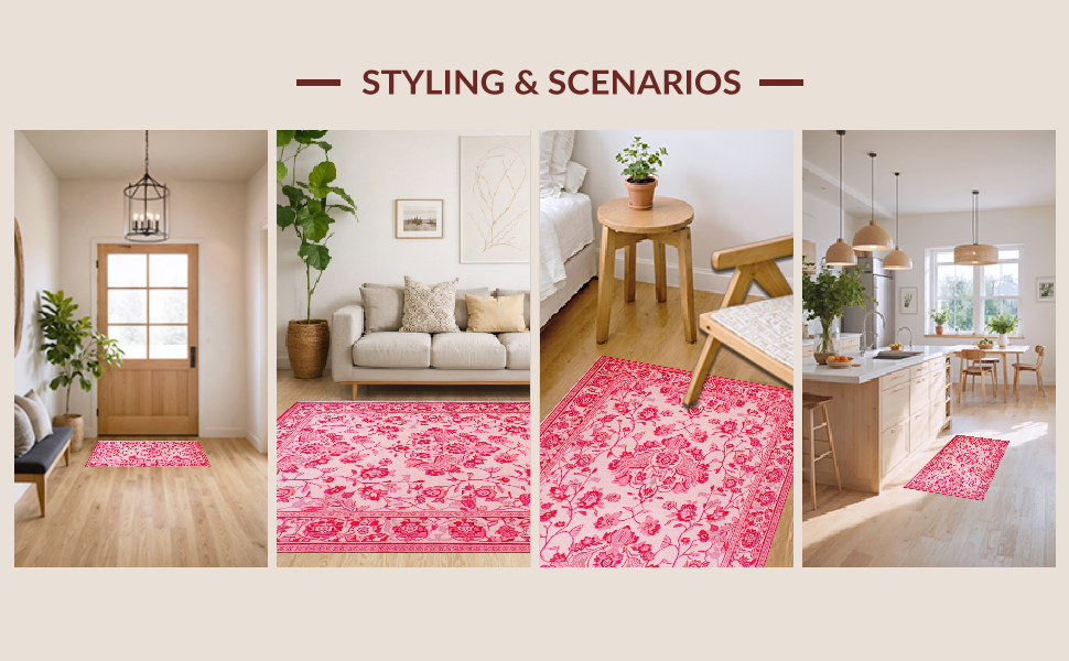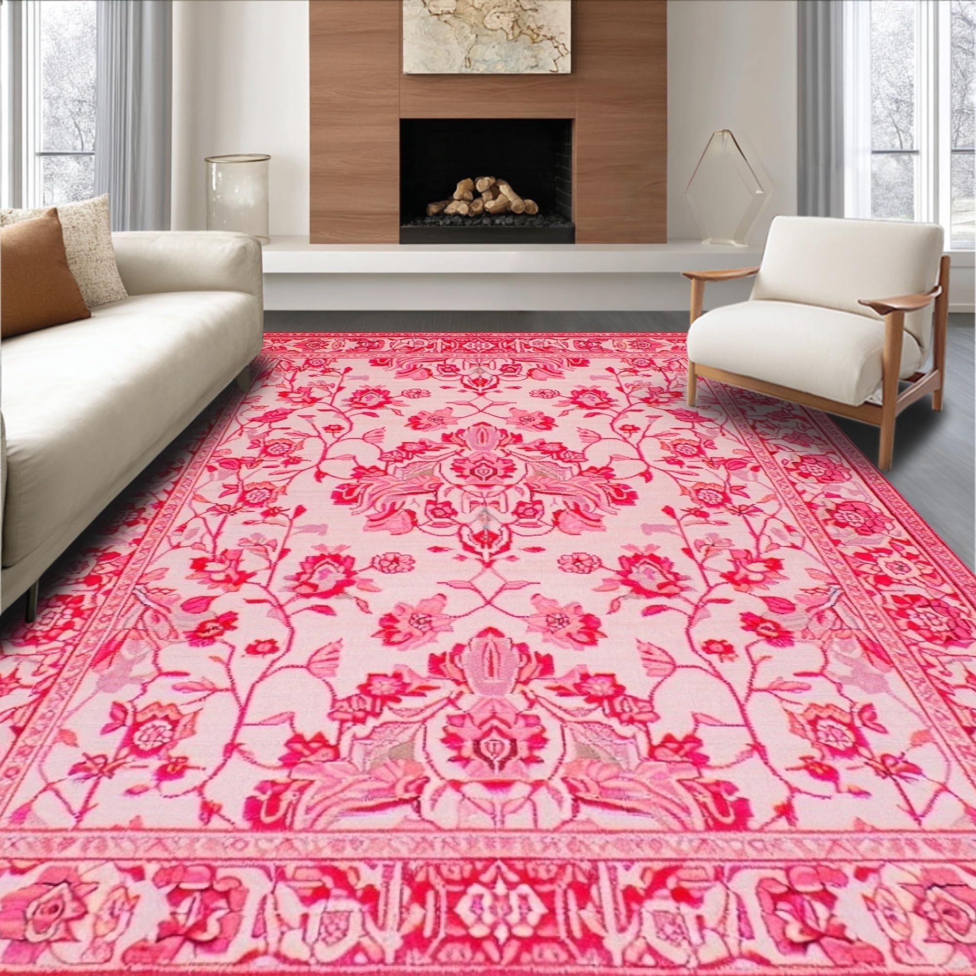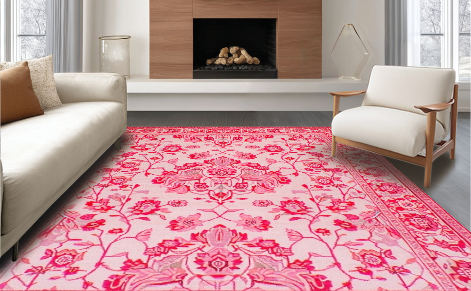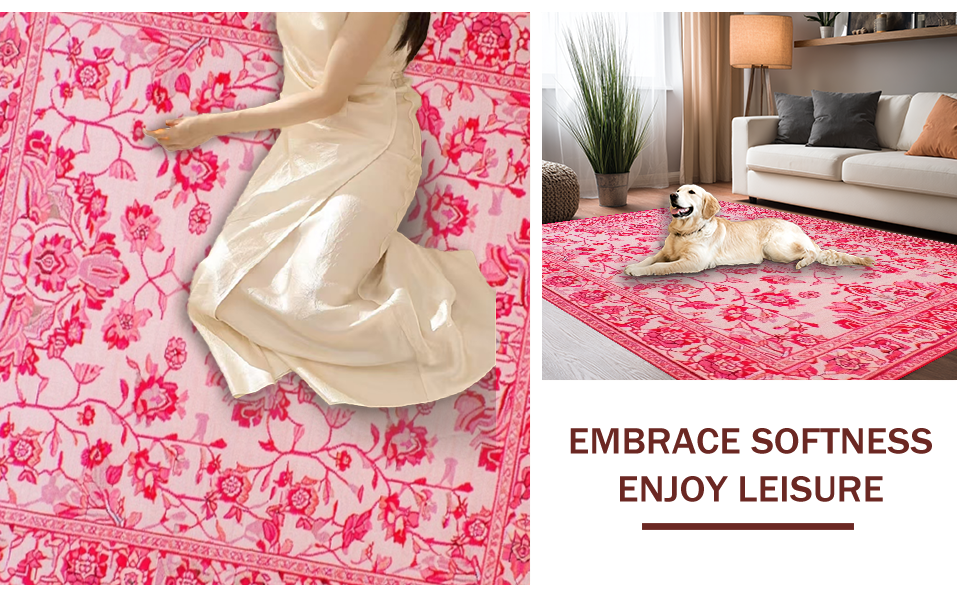 Ultra Soft Area Rug, Non Slip, Stain Resistant, Washable Area Rugs for Living Room, Bedroom, Modern Playful Pink Petal Design(Pink) Overview: