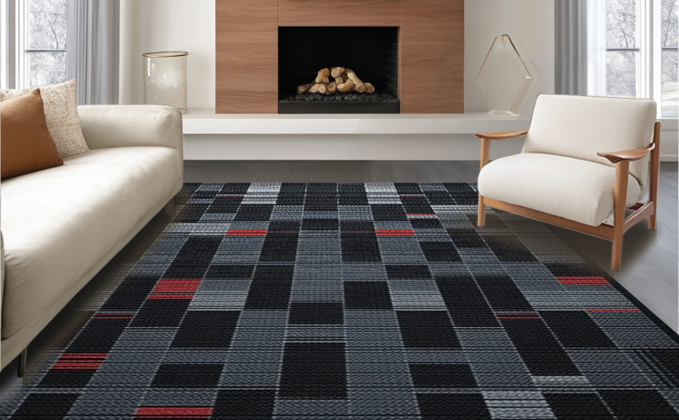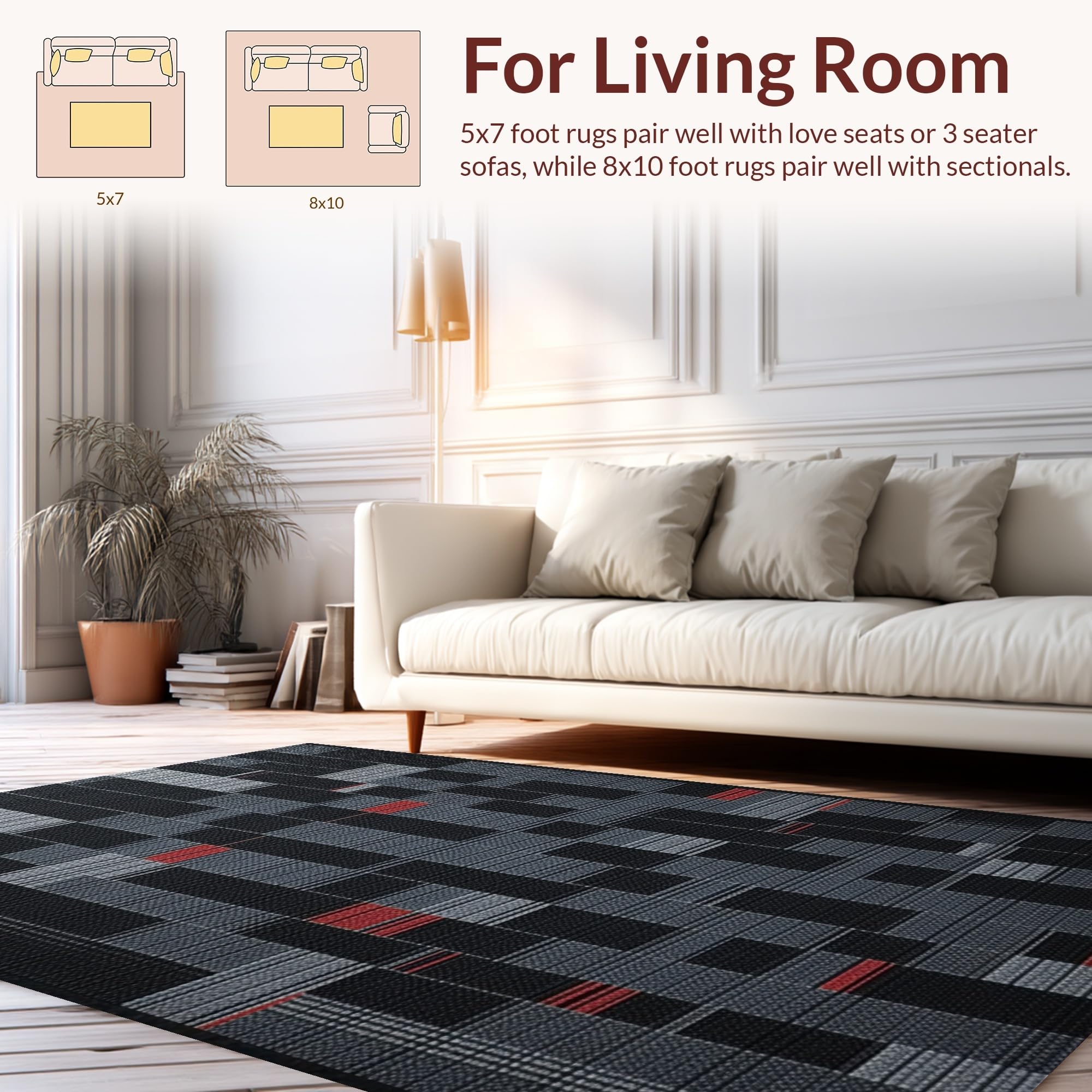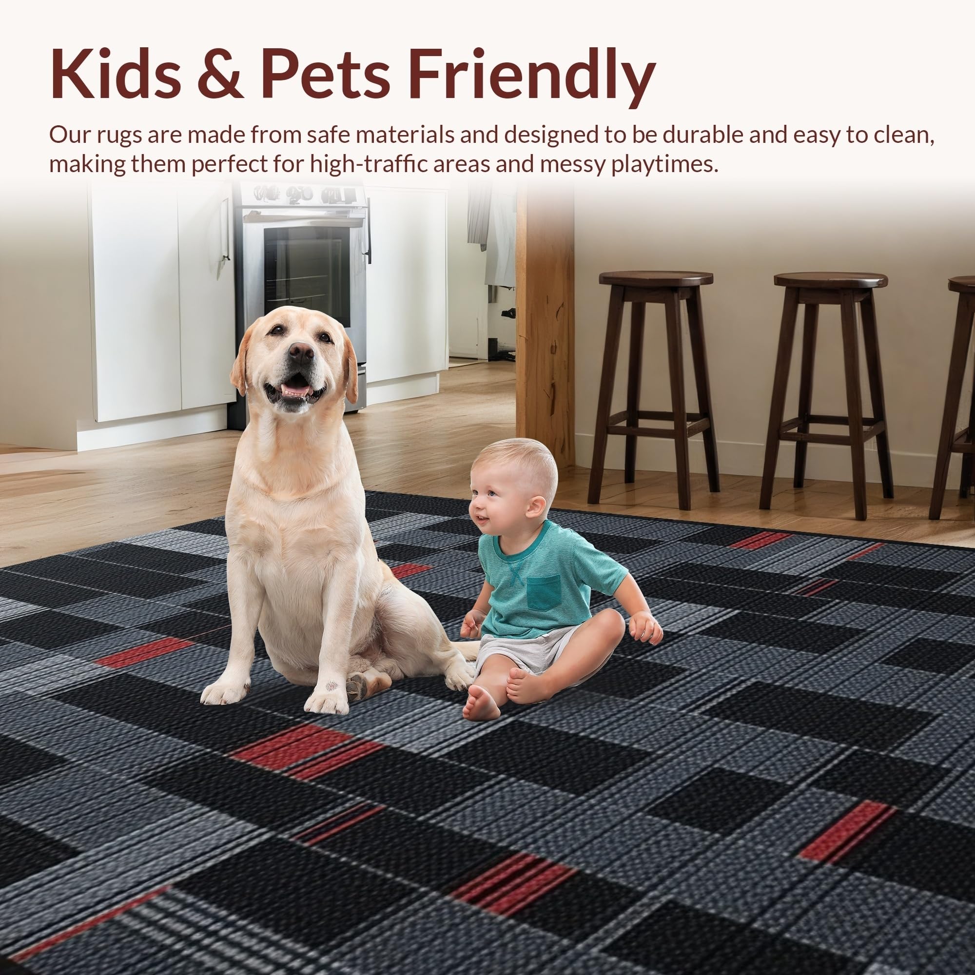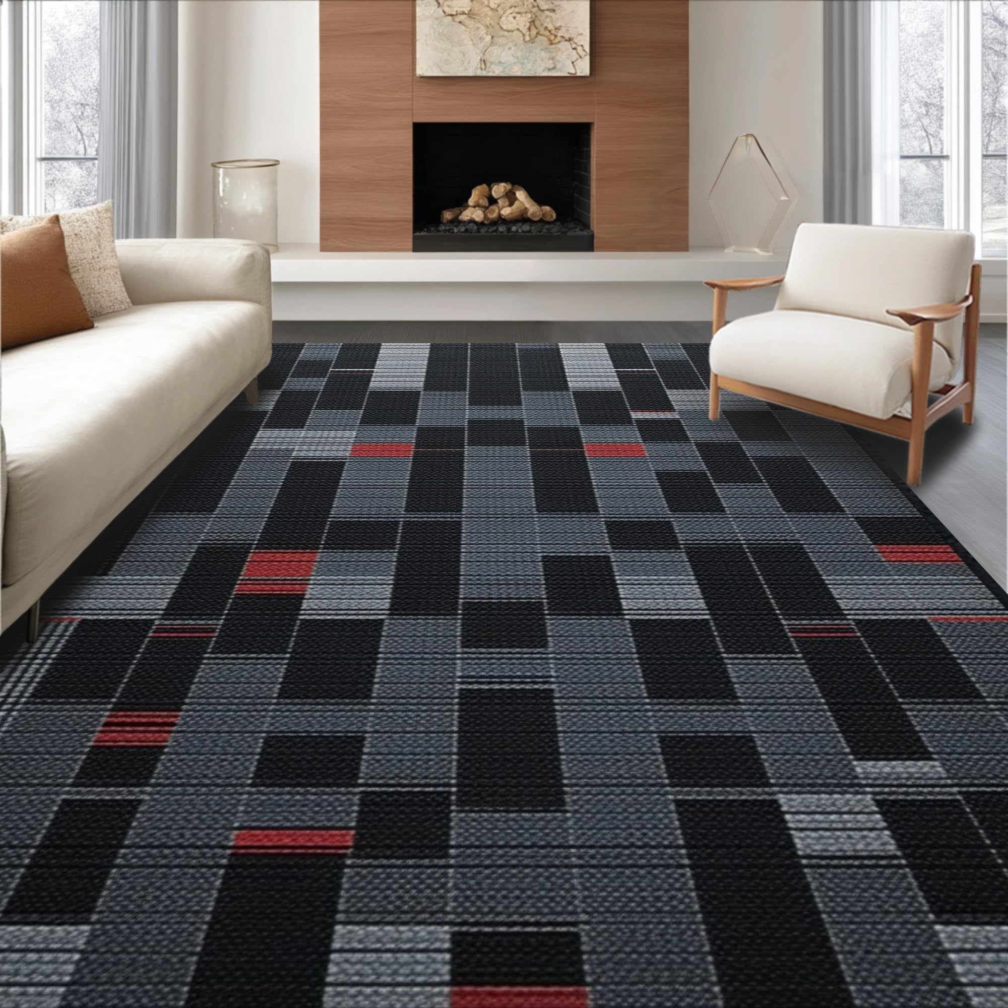 Ultra Soft Area Rug, Non Slip, Stain Resistant, Washable Area Rugs for Living Room, Bedroom, Modern Playful Pixel Art(Black) Overview: