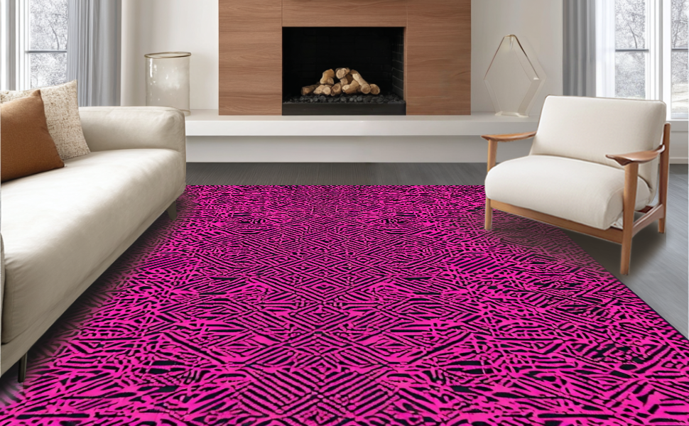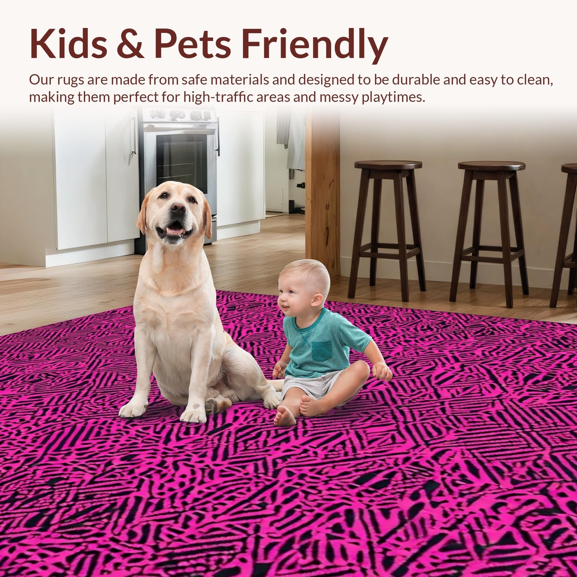 Ultra Soft Area Rug, Non Slip, Stain Resistant, Washable Area Rugs for Living Room, Bedroom, Modern Playful Wildlife Design(Pink) Overview: