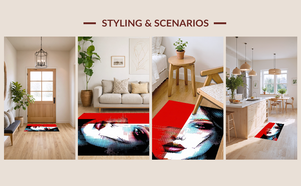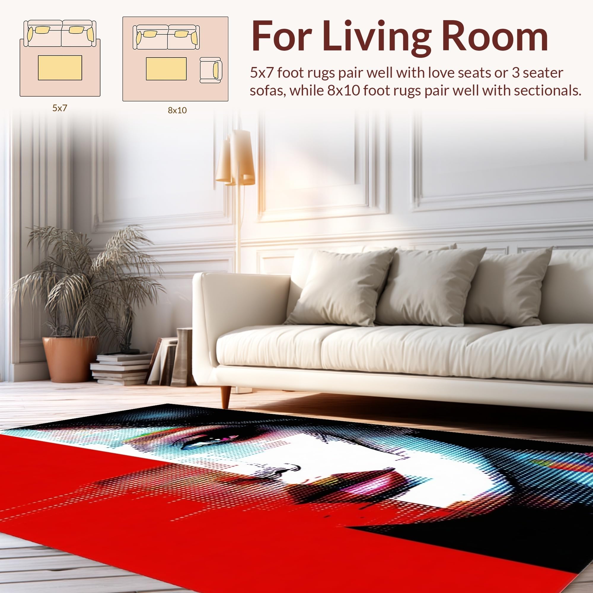 Ultra Soft Area Rug, Non Slip, Stain Resistant, Washable Area Rugs for Living Room, Bedroom, Modern Plush Female Silhouette Aesthetic(Red) Overview: