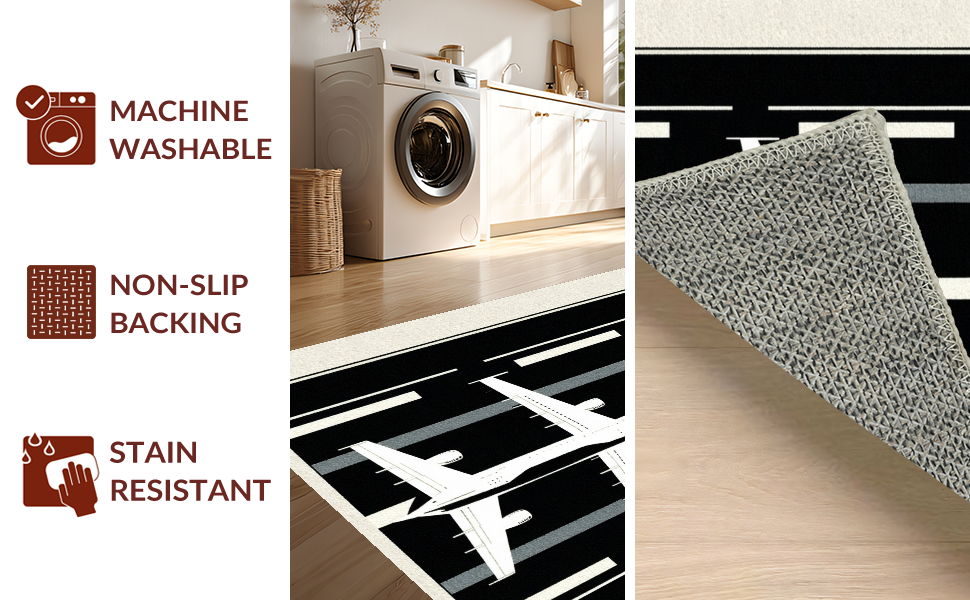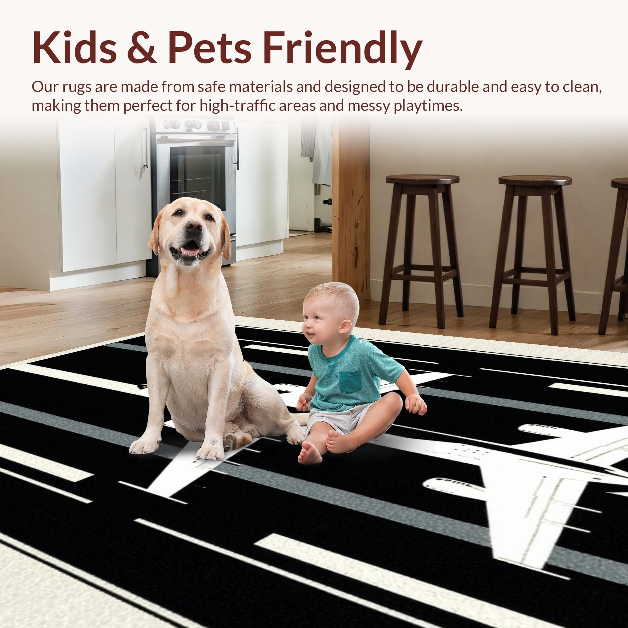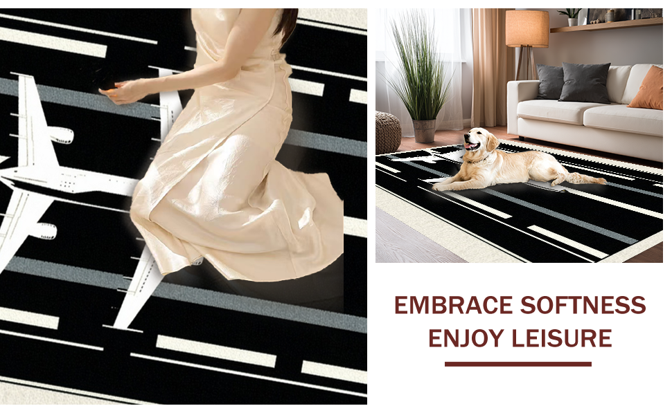 Ultra Soft Area Rug, Non Slip, Stain Resistant, Washable Area Rugs for Living Room, Bedroom, Modern Racing Runway Visual(Black) Overview: