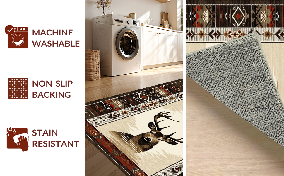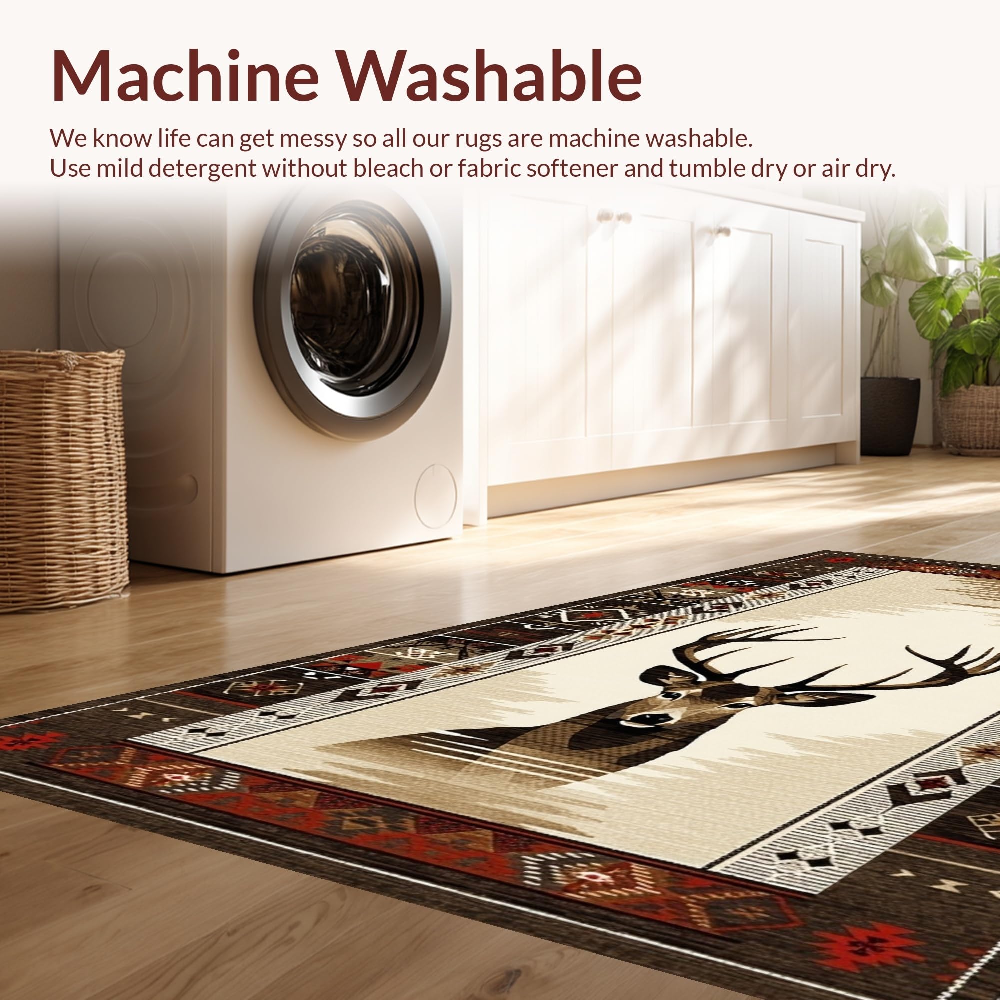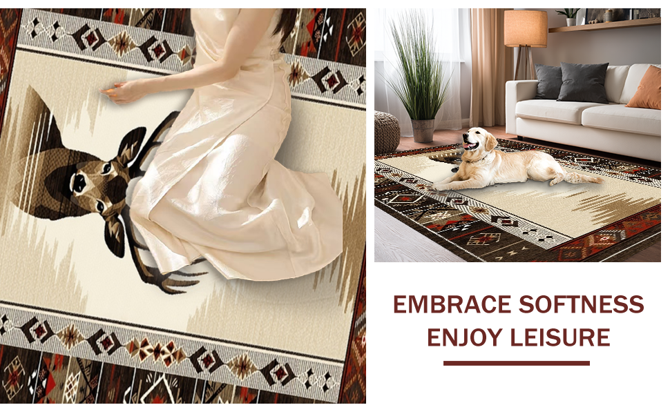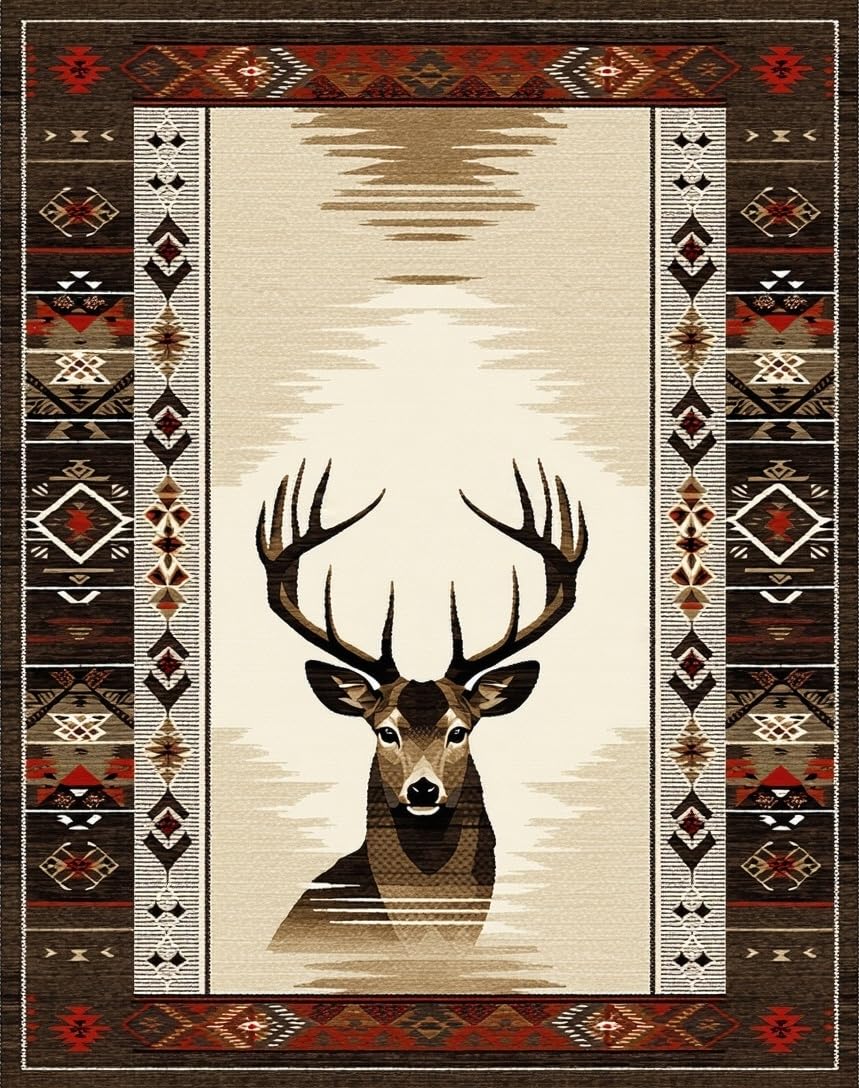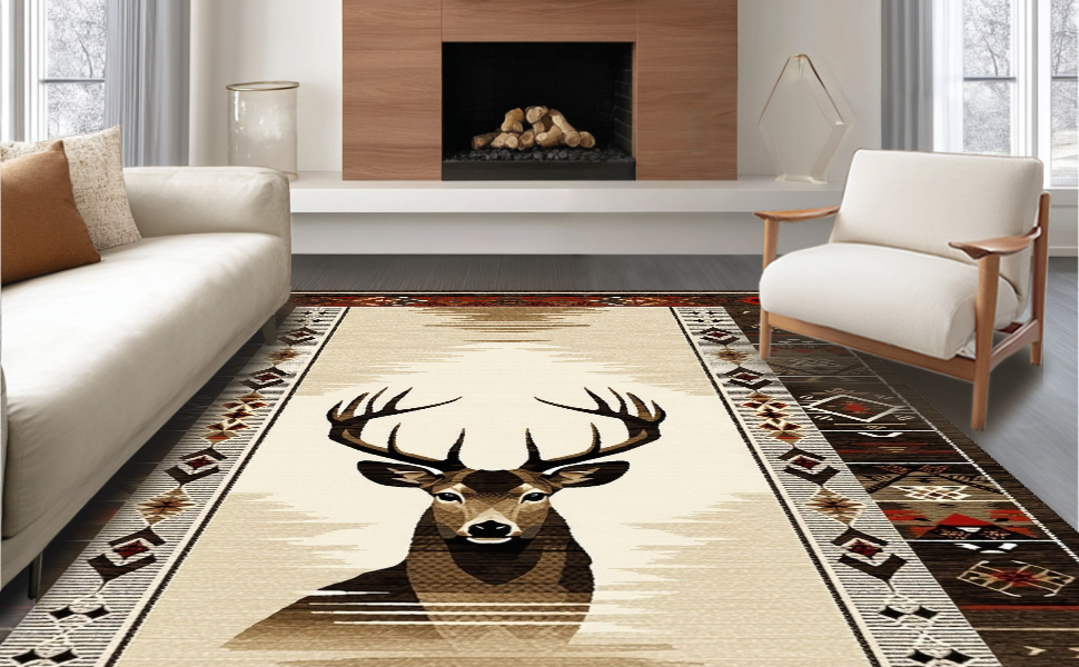 Ultra Soft Area Rug, Non Slip, Stain Resistant, Washable Area Rugs for Living Room, Bedroom, Modern Rustic Deer Inspired Artistry(Beige) Overview:
