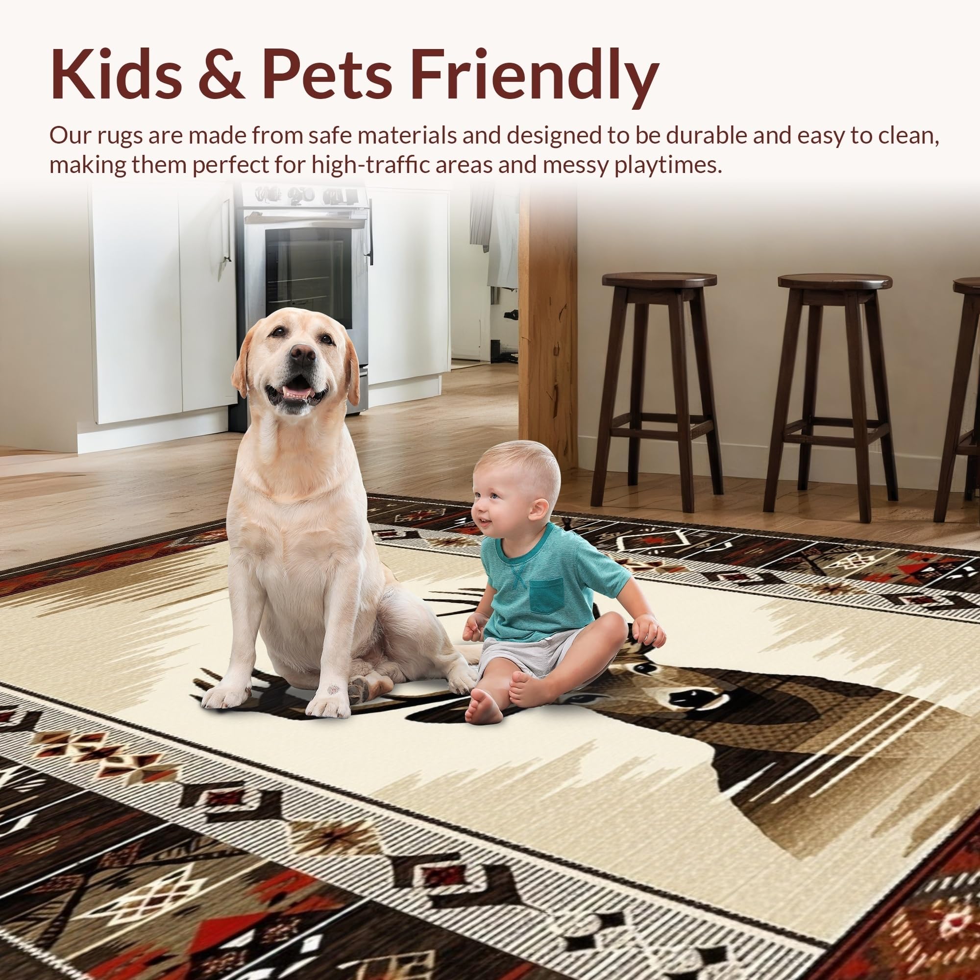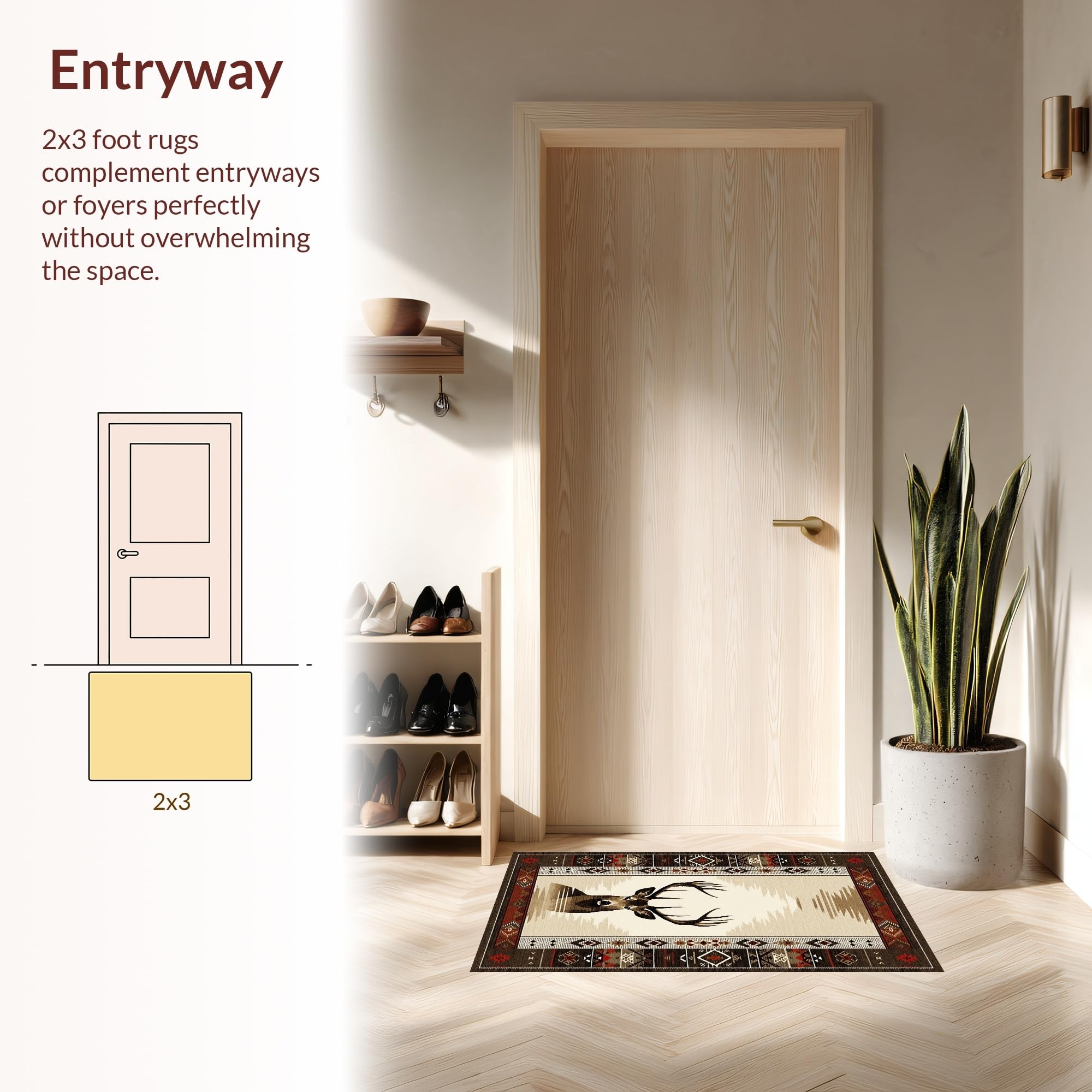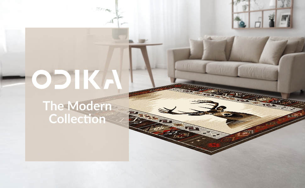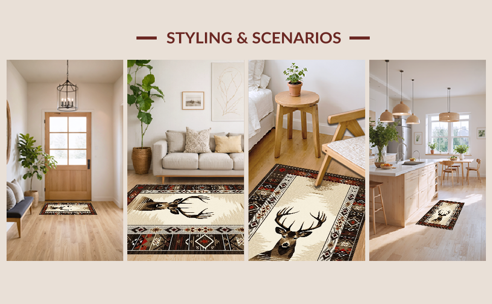 Ultra Soft Area Rug, Non Slip, Stain Resistant, Washable Area Rugs for Living Room, Bedroom, Modern Rustic Deer Inspired Artistry(Beige) Overview: