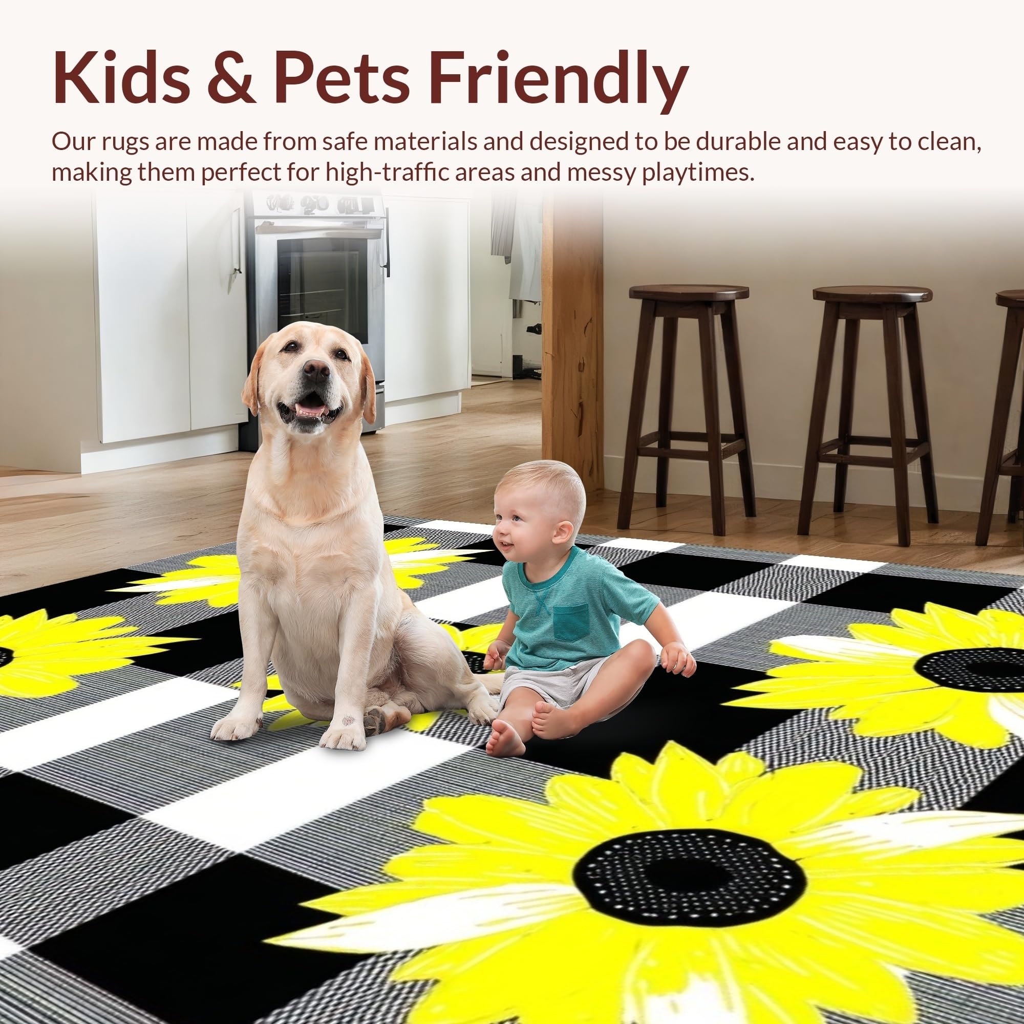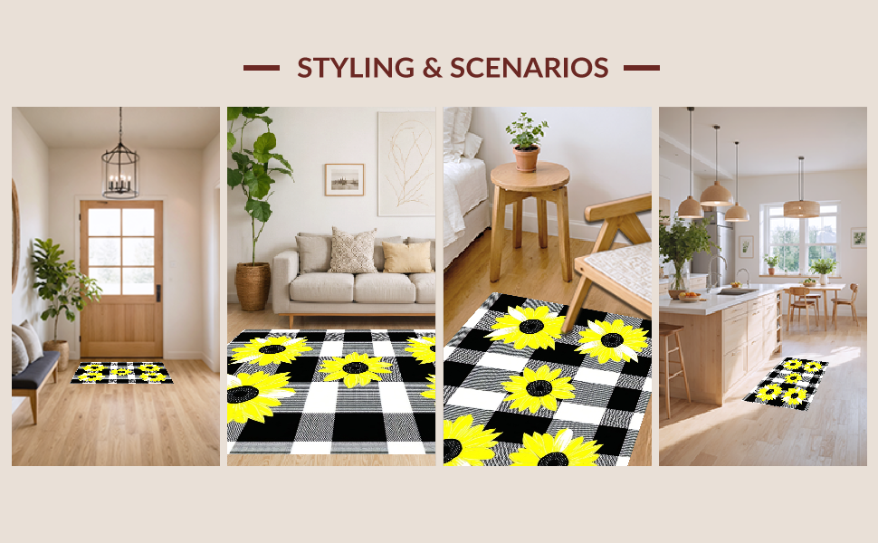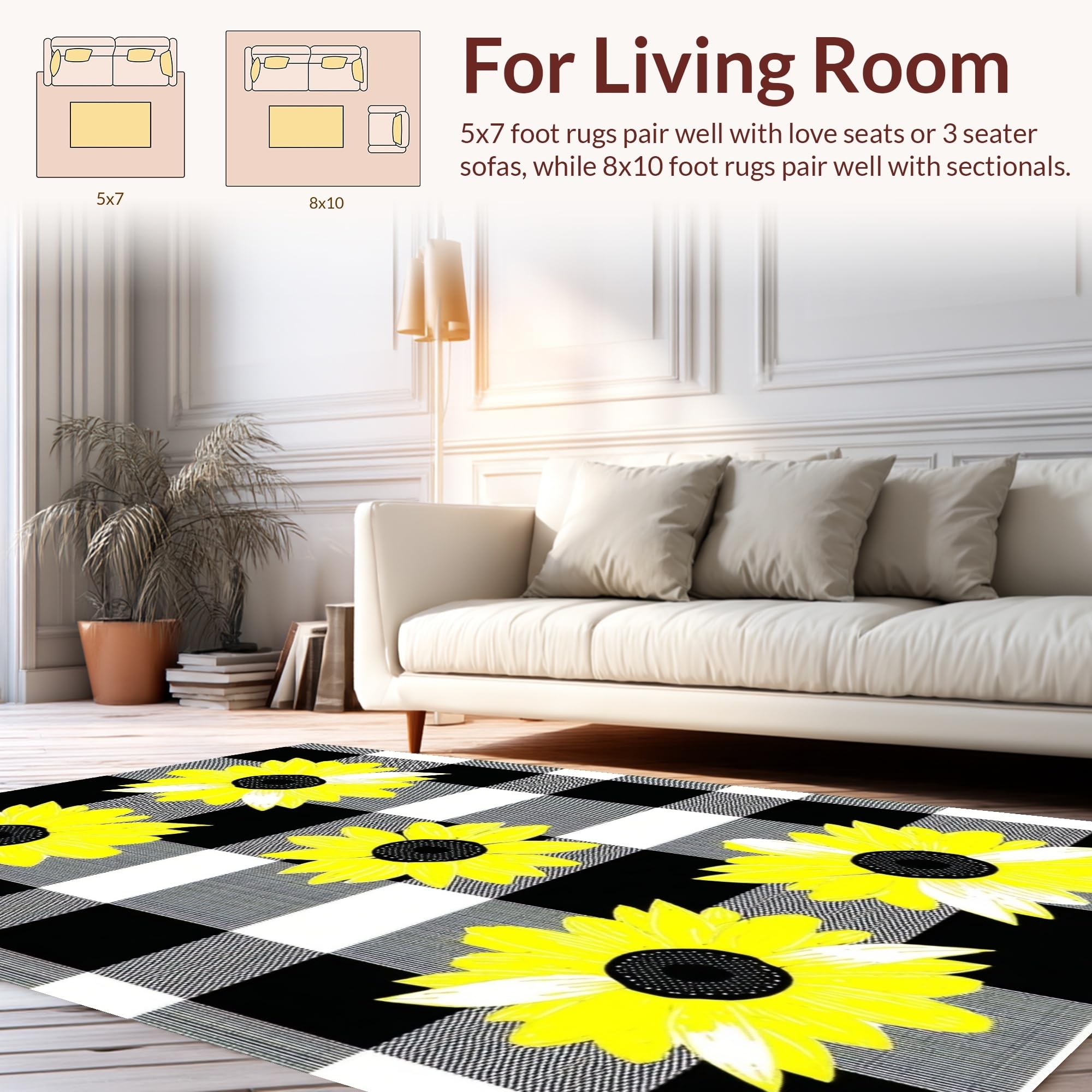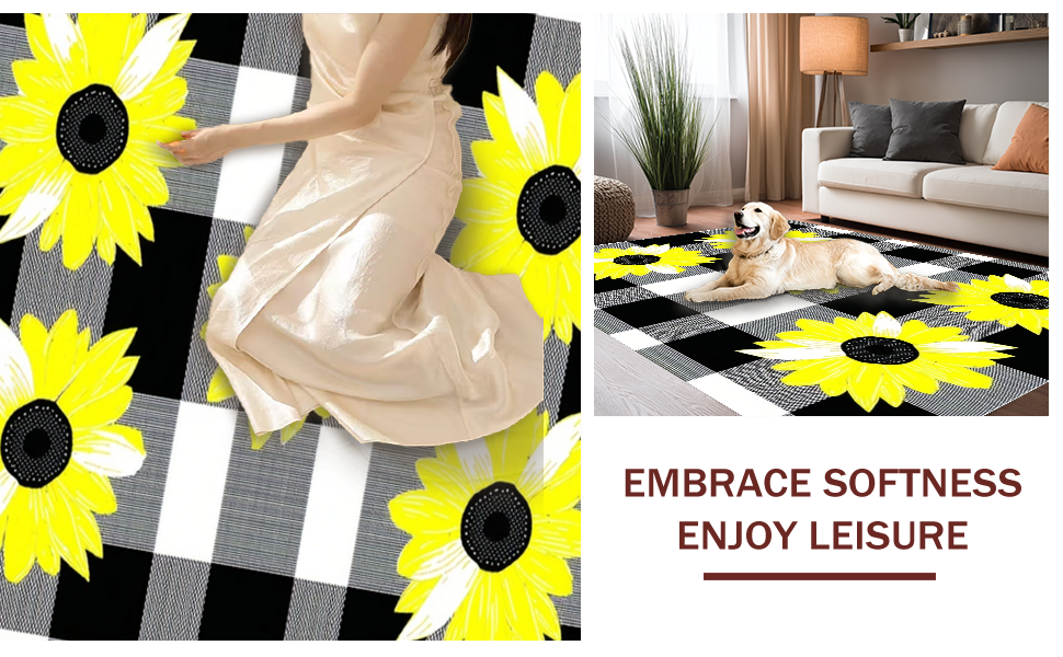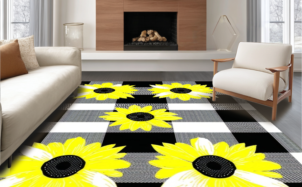 Ultra Soft Area Rug, Non Slip, Stain Resistant, Washable Area Rugs for Living Room, Bedroom, Modern Rustic Plaid Charm(Black) Overview: