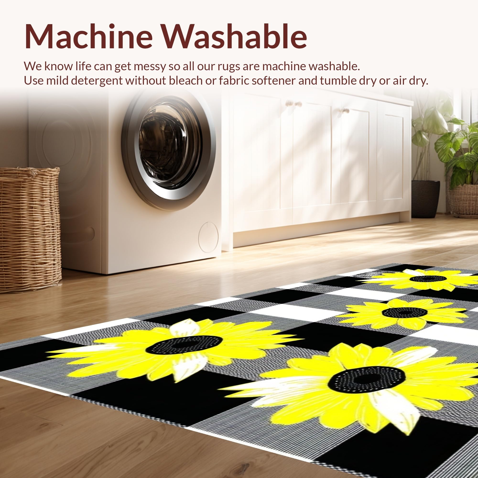 - Machine Washable: Our rugs can be easily thrown in the wash machine.
