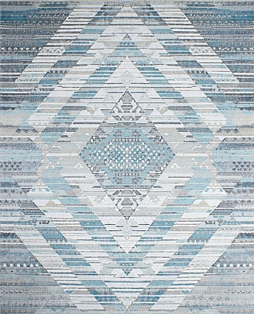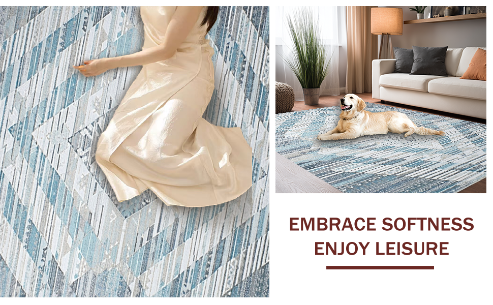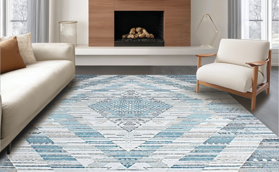 Ultra Soft Area Rug, Non Slip, Stain Resistant, Washable Area Rugs for Living Room, Bedroom, Modern Soft Blue Lattice Design(Blue) Overview: