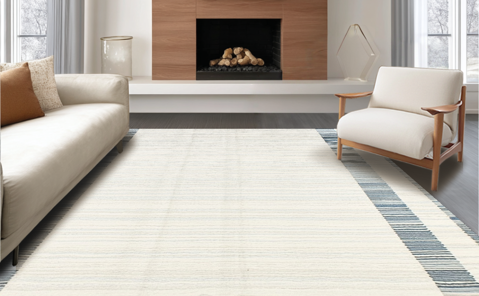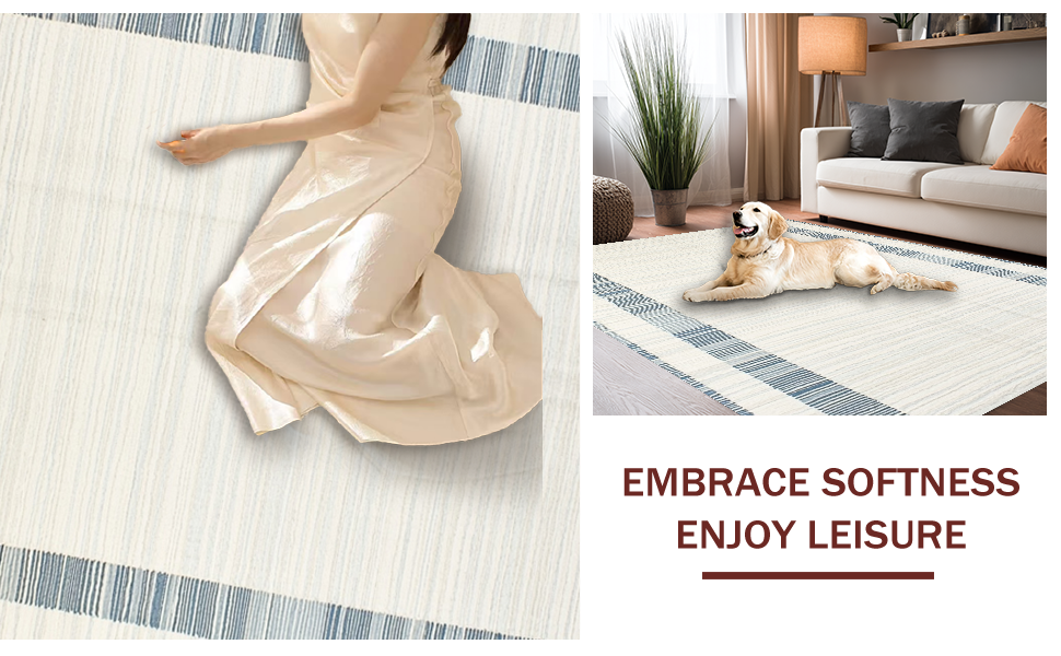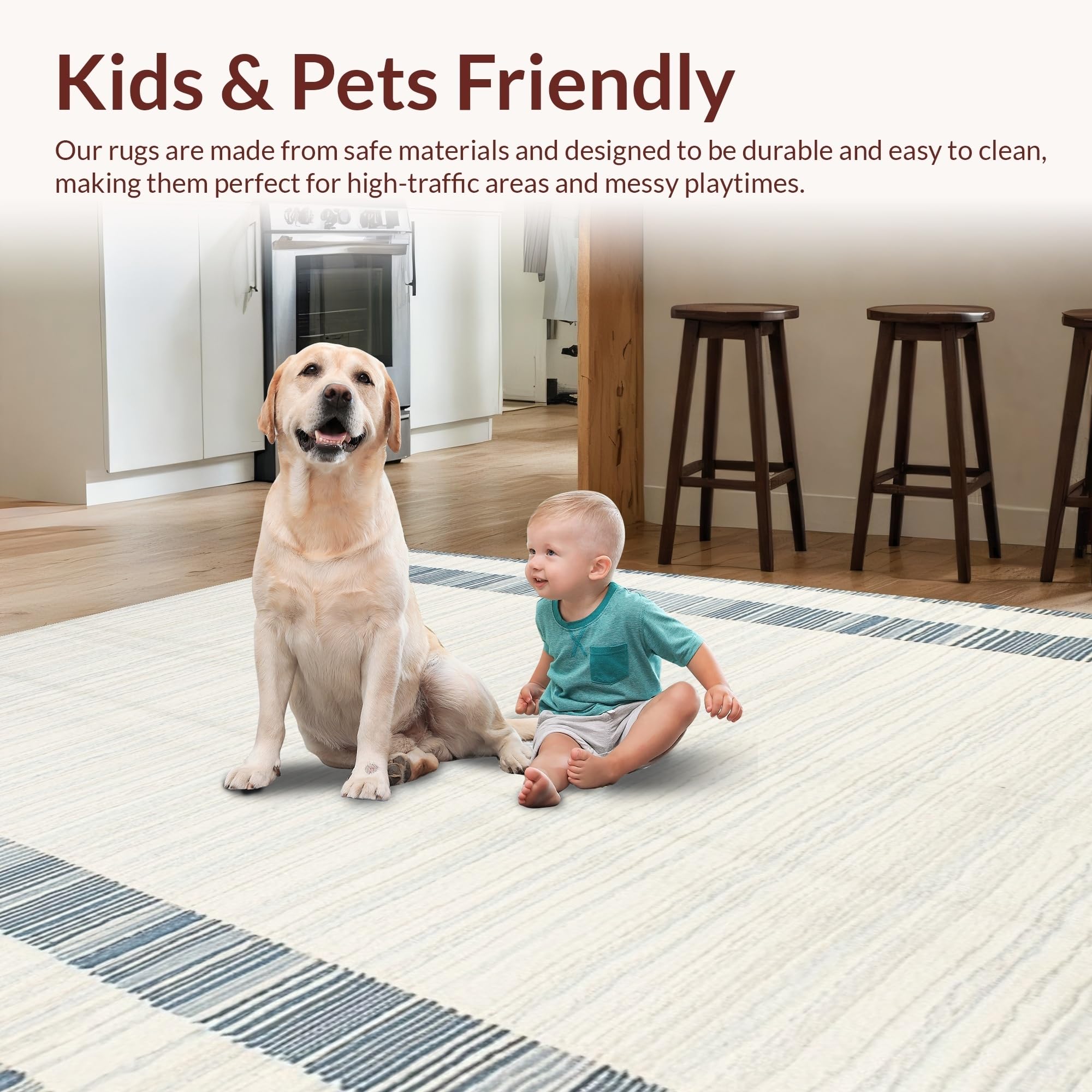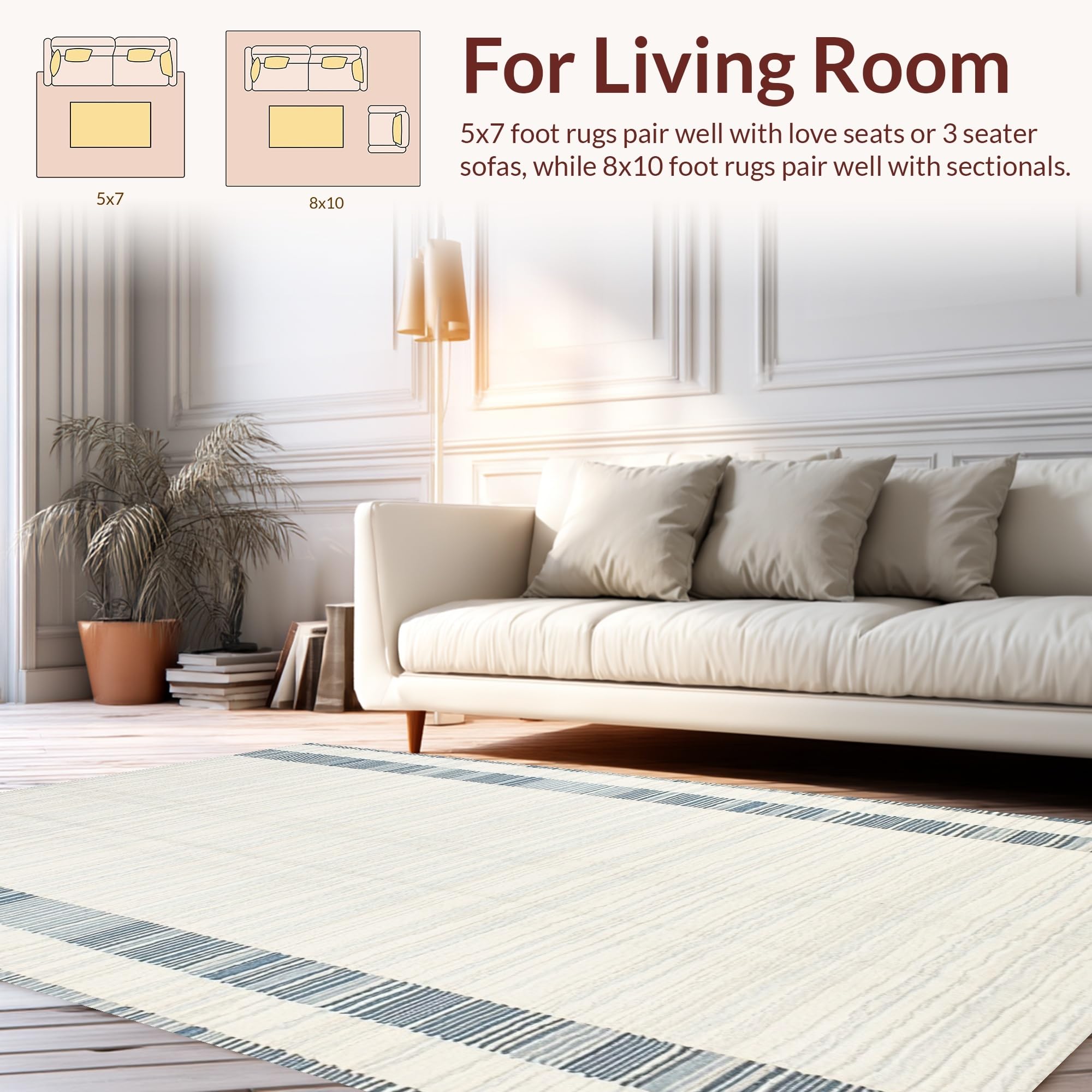 Ultra Soft Area Rug, Non Slip, Stain Resistant, Washable Area Rugs for Living Room, Bedroom, Modern Soft Blue Stripe Visual(Beige) Overview: