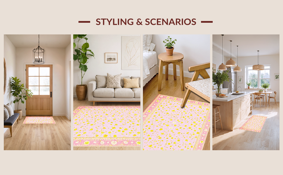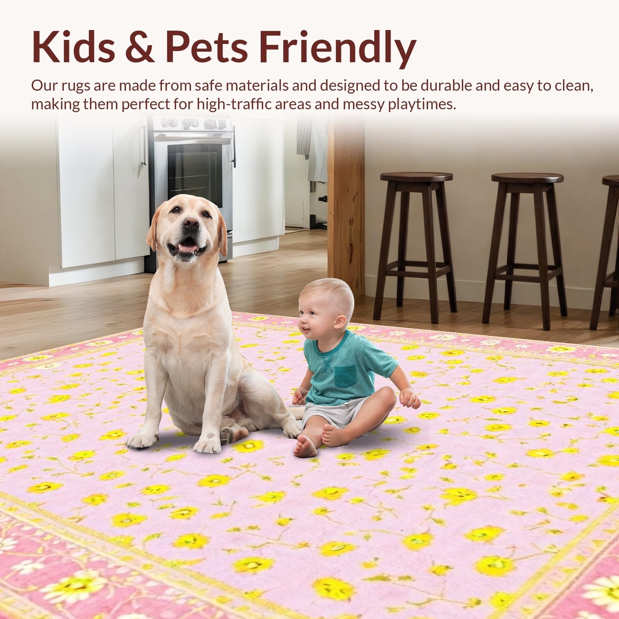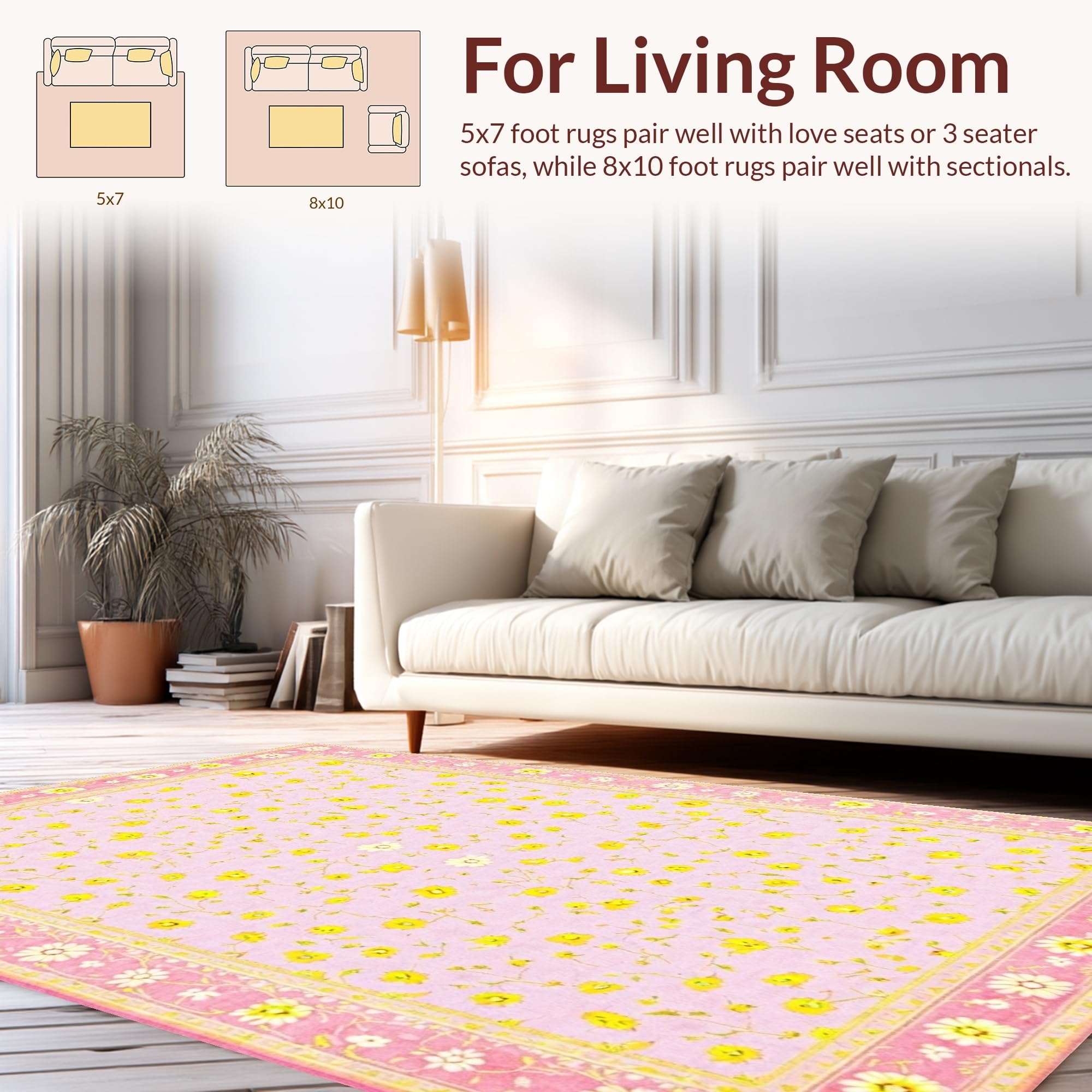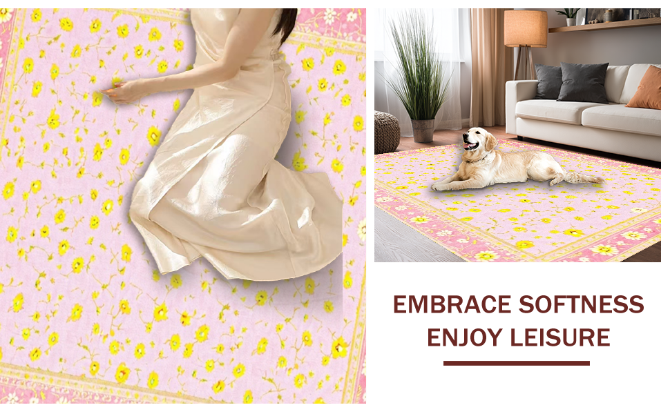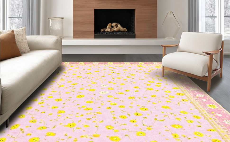 Ultra Soft Area Rug, Non Slip, Stain Resistant, Washable Area Rugs for Living Room, Bedroom, Modern Soft Floral Elegance(Pink) Overview: