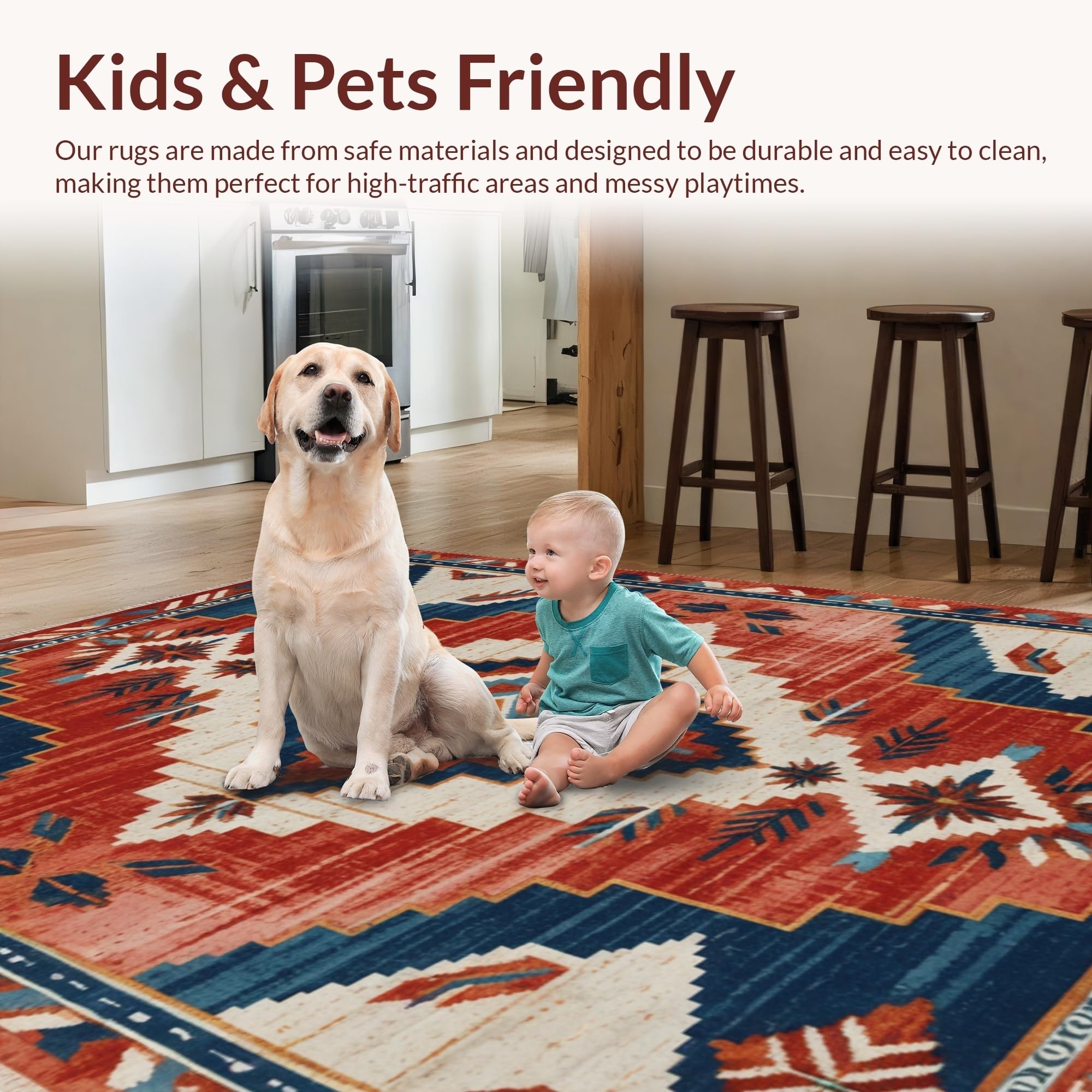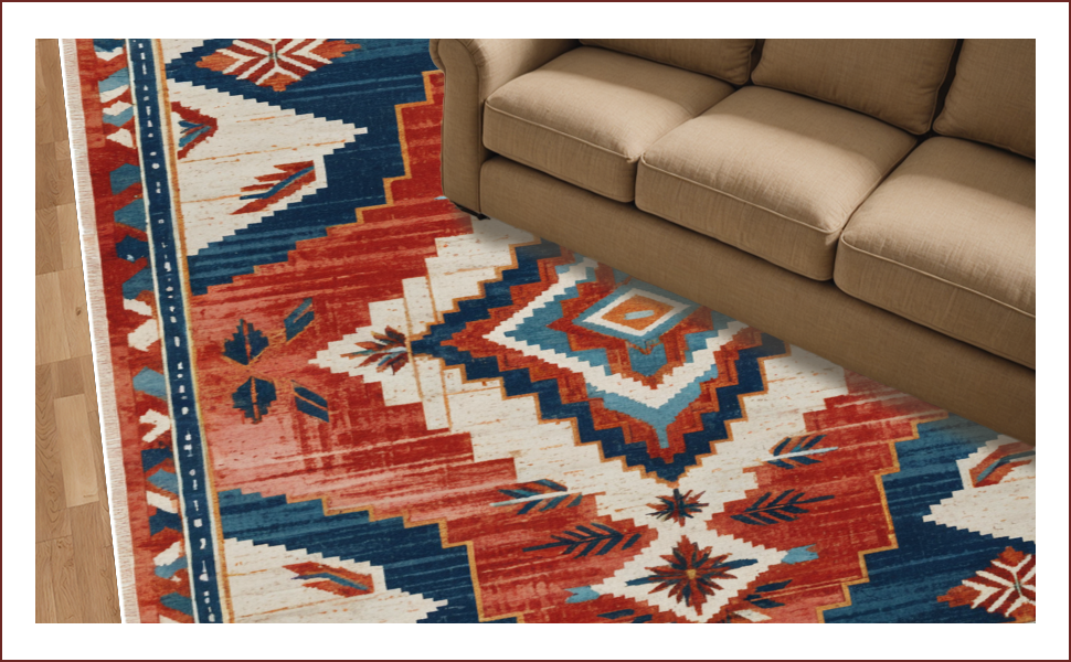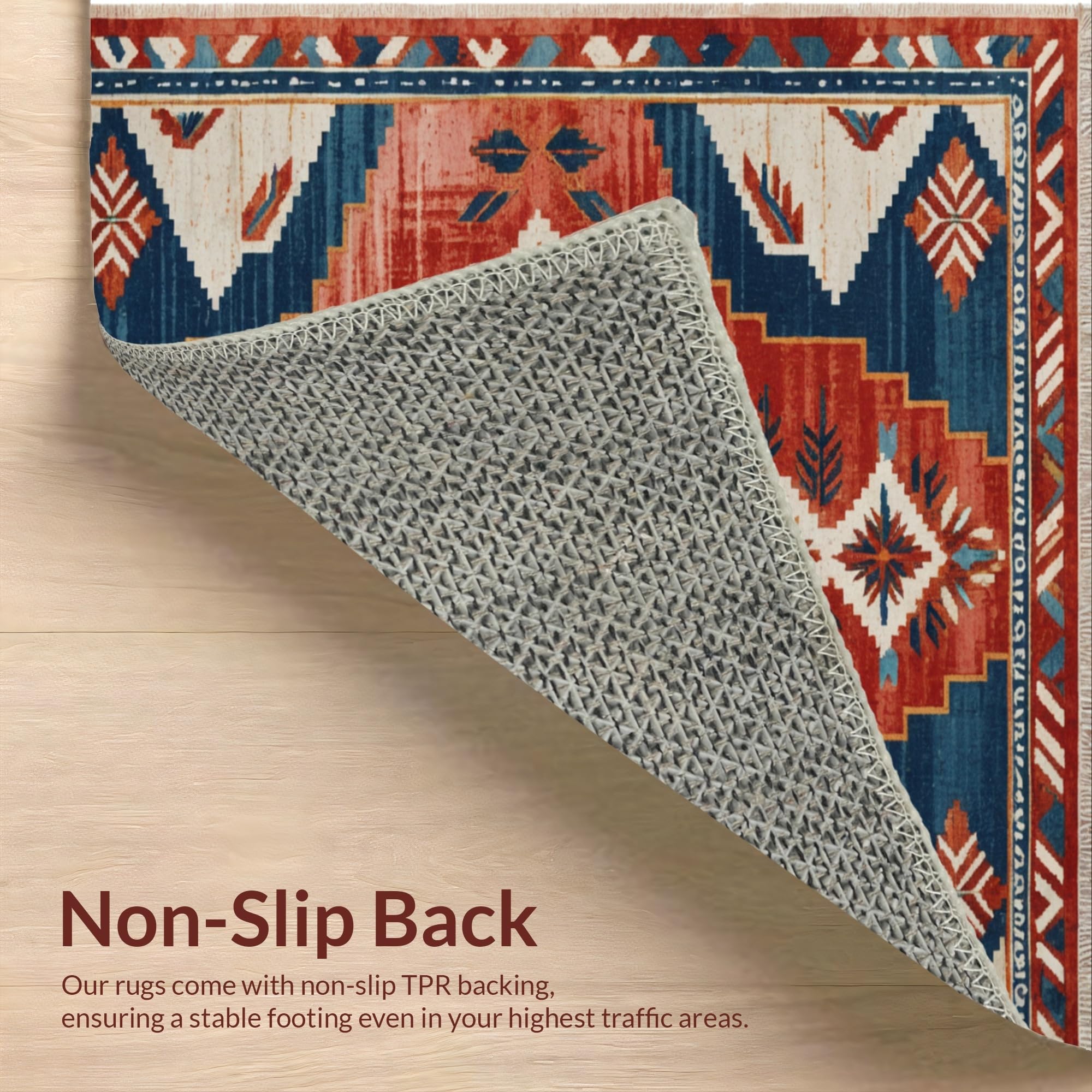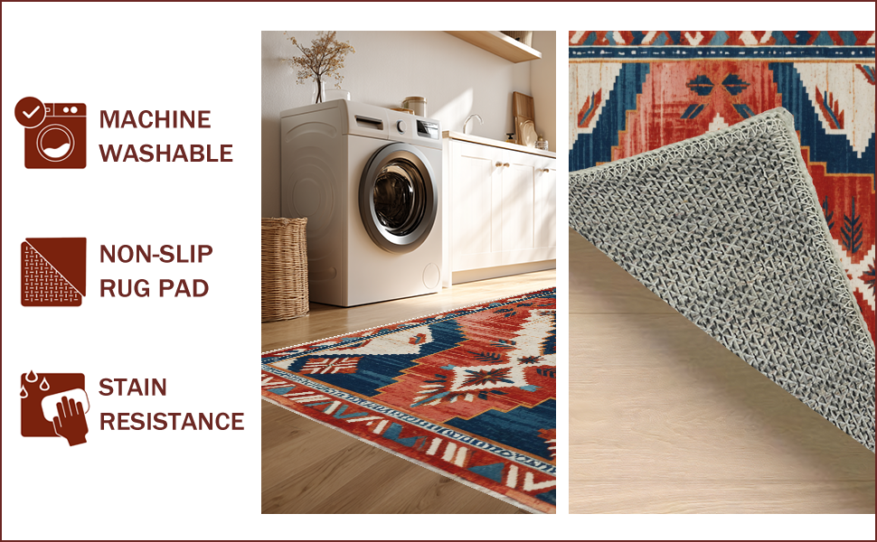 Ultra Soft Area Rug, Non Slip, Stain Resistant, Washable Area Rugs for Living Room, Bedroom, Modern Southwestern Entryway Non-Shedding Decor Rug(Red) Overview: