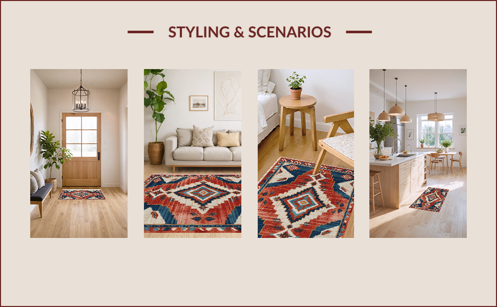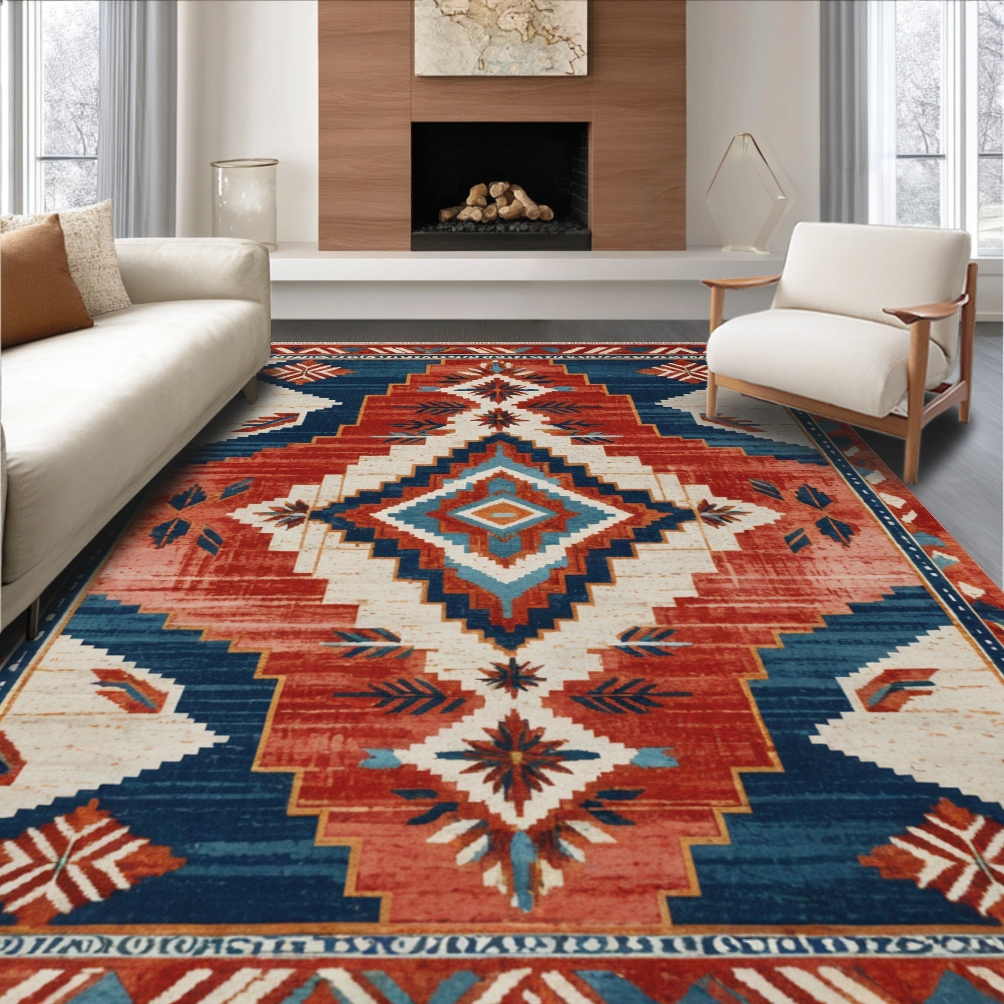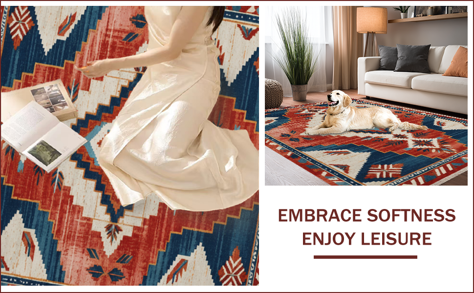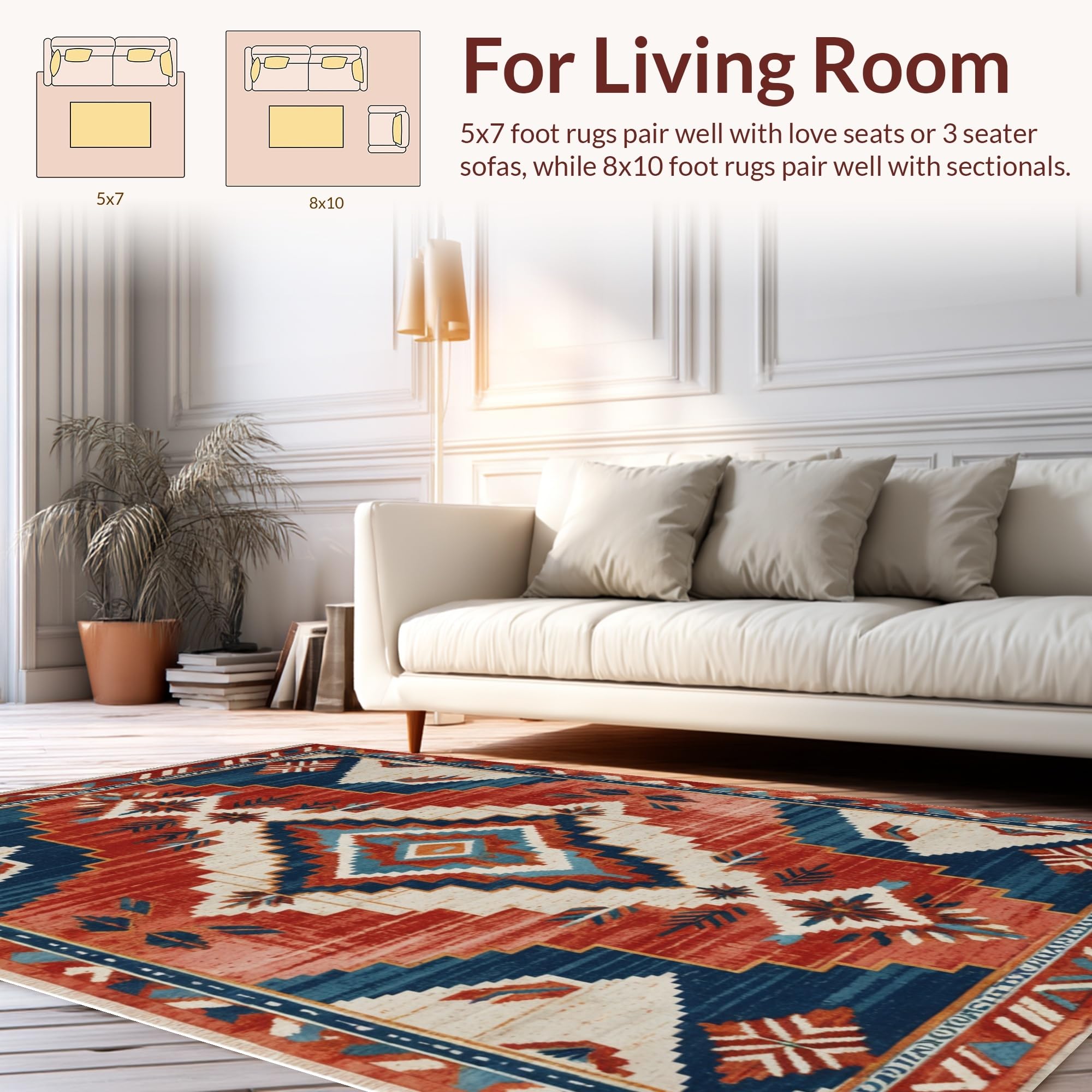 Ultra Soft Area Rug, Non Slip, Stain Resistant, Washable Area Rugs for Living Room, Bedroom, Modern Southwestern Entryway Non-Shedding Decor Rug(Red) Overview: