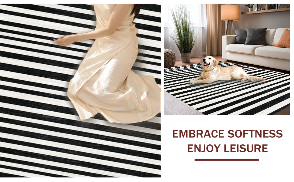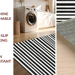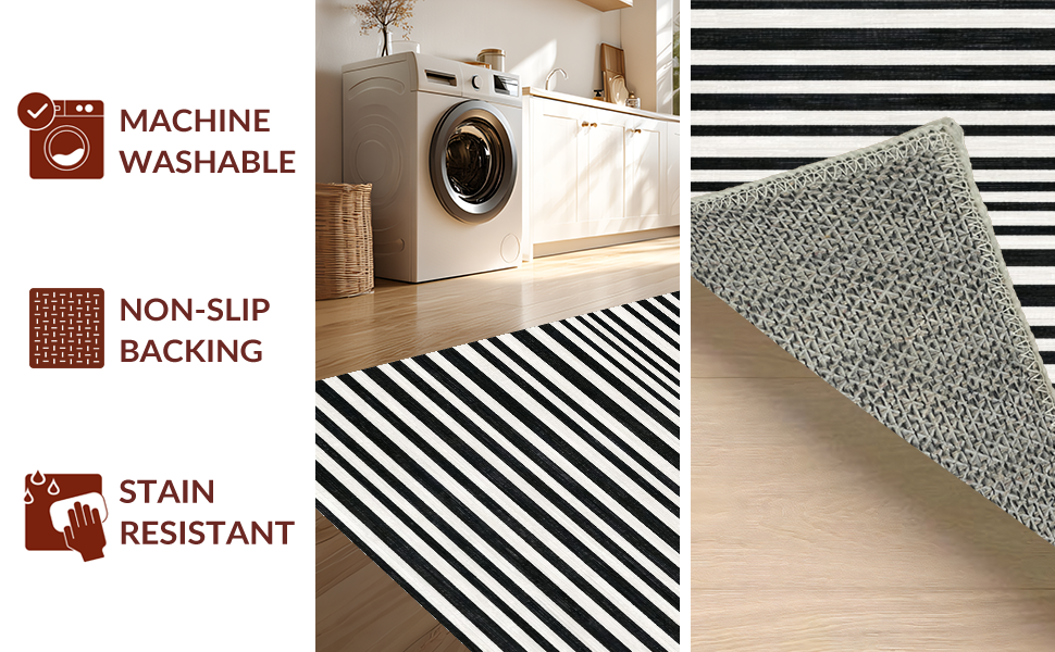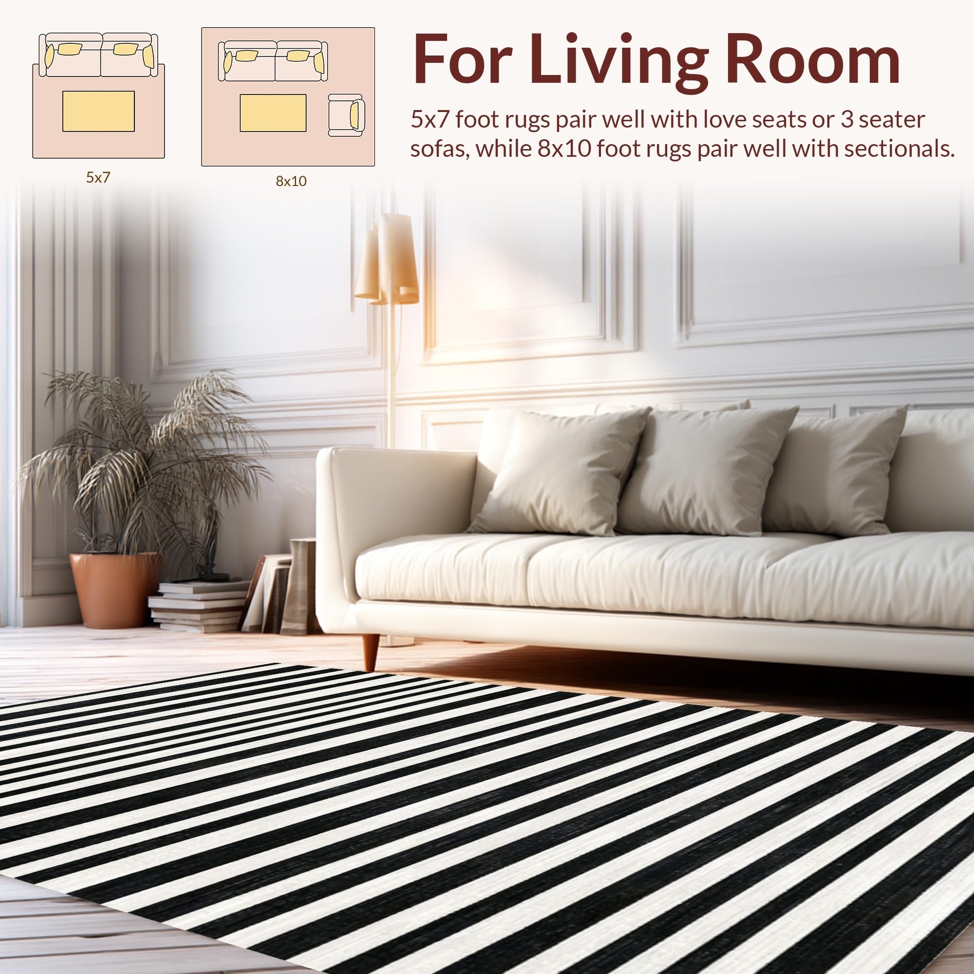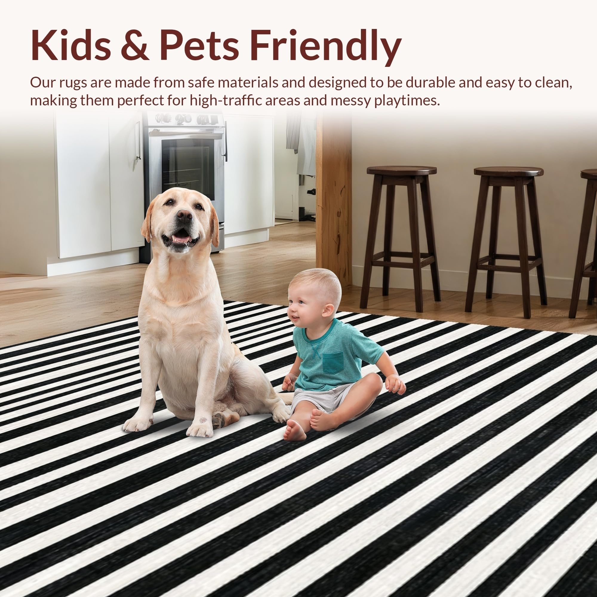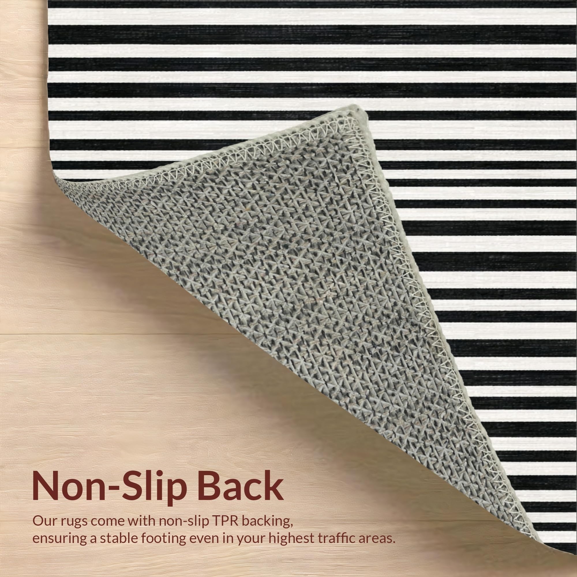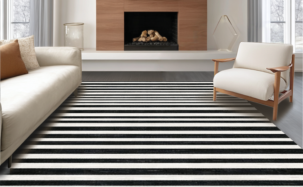 Ultra Soft Area Rug, Non Slip, Stain Resistant, Washable Area Rugs for Living Room, Bedroom, Modern Stripe Fusion Rug with Contrasting Lines and Bold Graphic Pattern(Black) Overview: