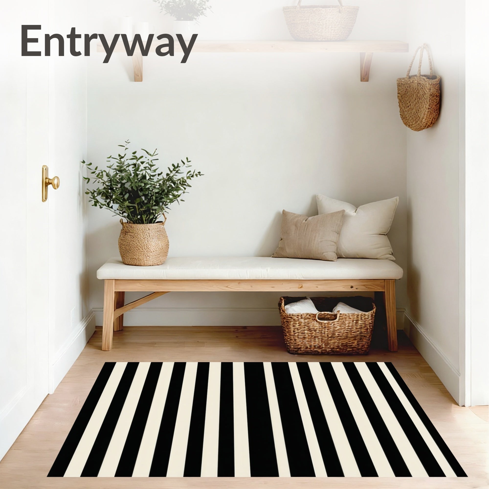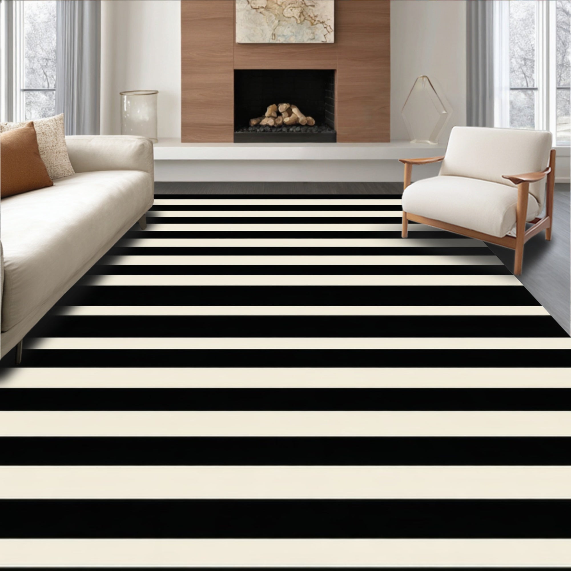 Modern Striped Entryway Black And Beige Porch(Black)