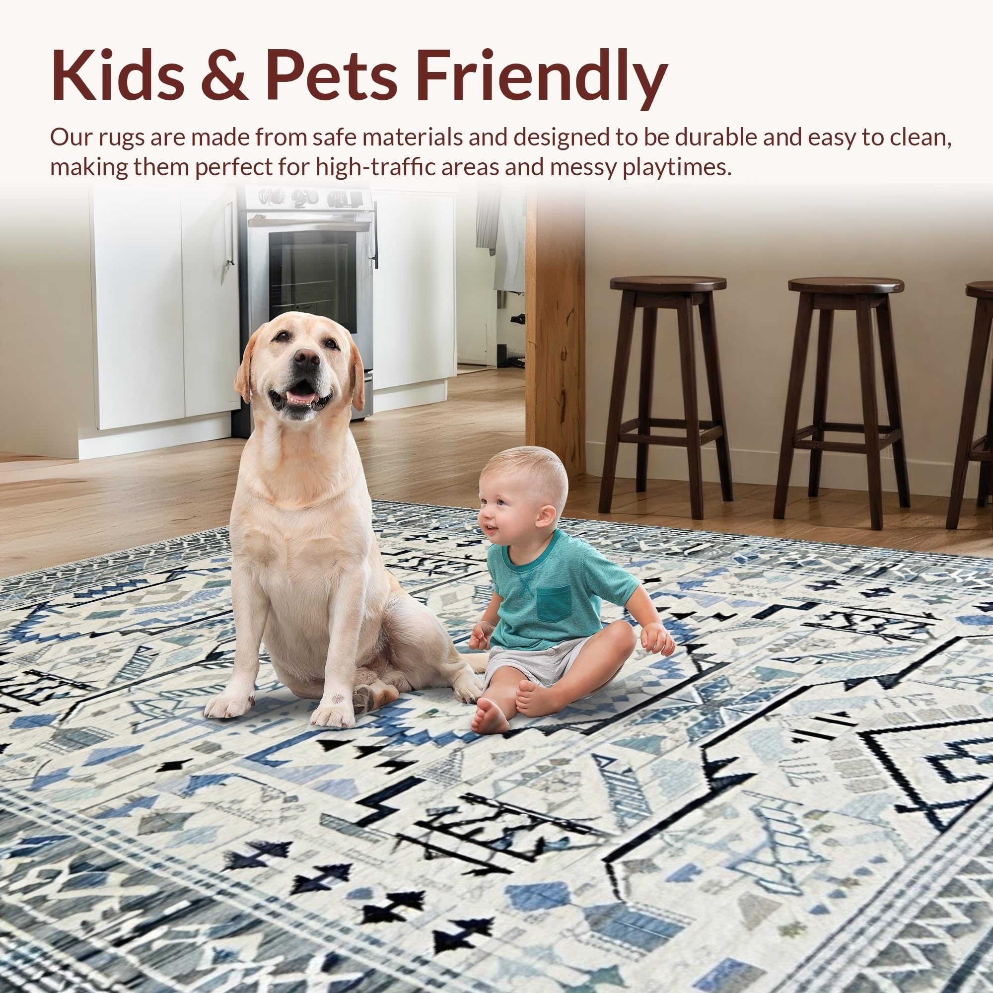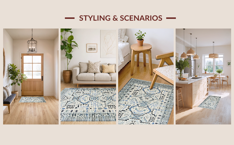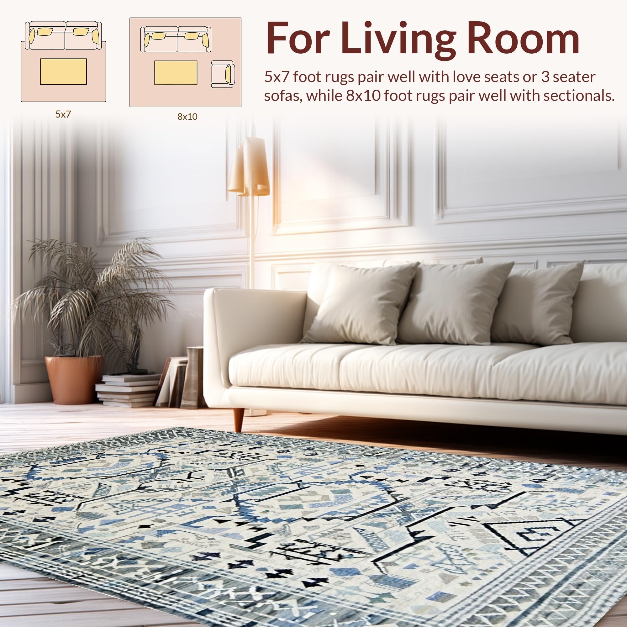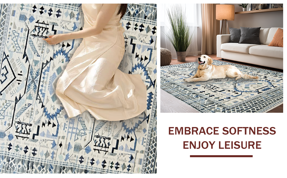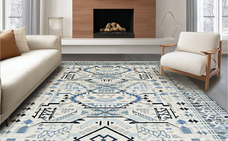 Ultra Soft Area Rug, Non Slip, Stain Resistant, Washable Area Rugs for Living Room, Bedroom, Modern Striped Rustic Feel(Blue) Overview: