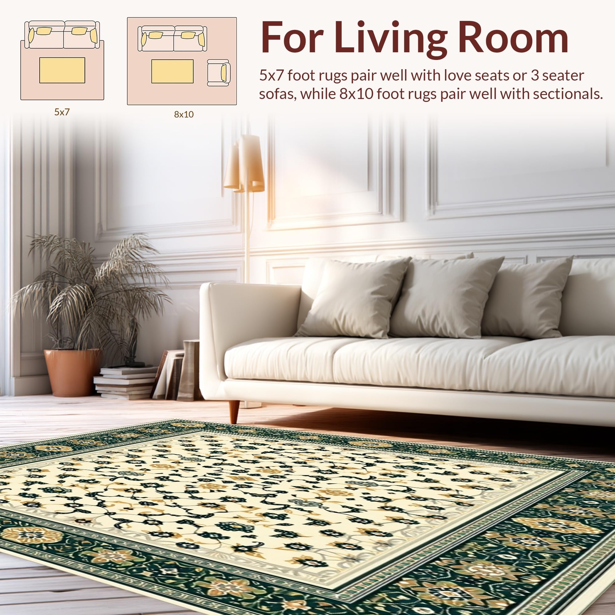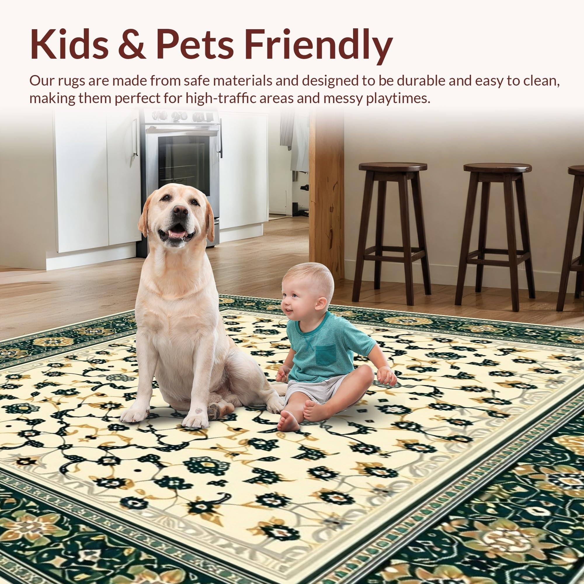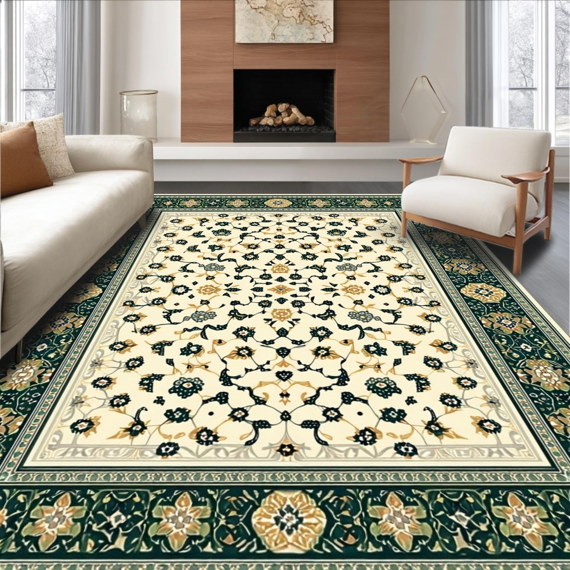 Ultra Soft Area Rug, Non Slip, Stain Resistant, Washable Area Rugs for Living Room, Bedroom, Modern Style Tribal Beige with Ornate Floral Motifs(Beige) Overview: