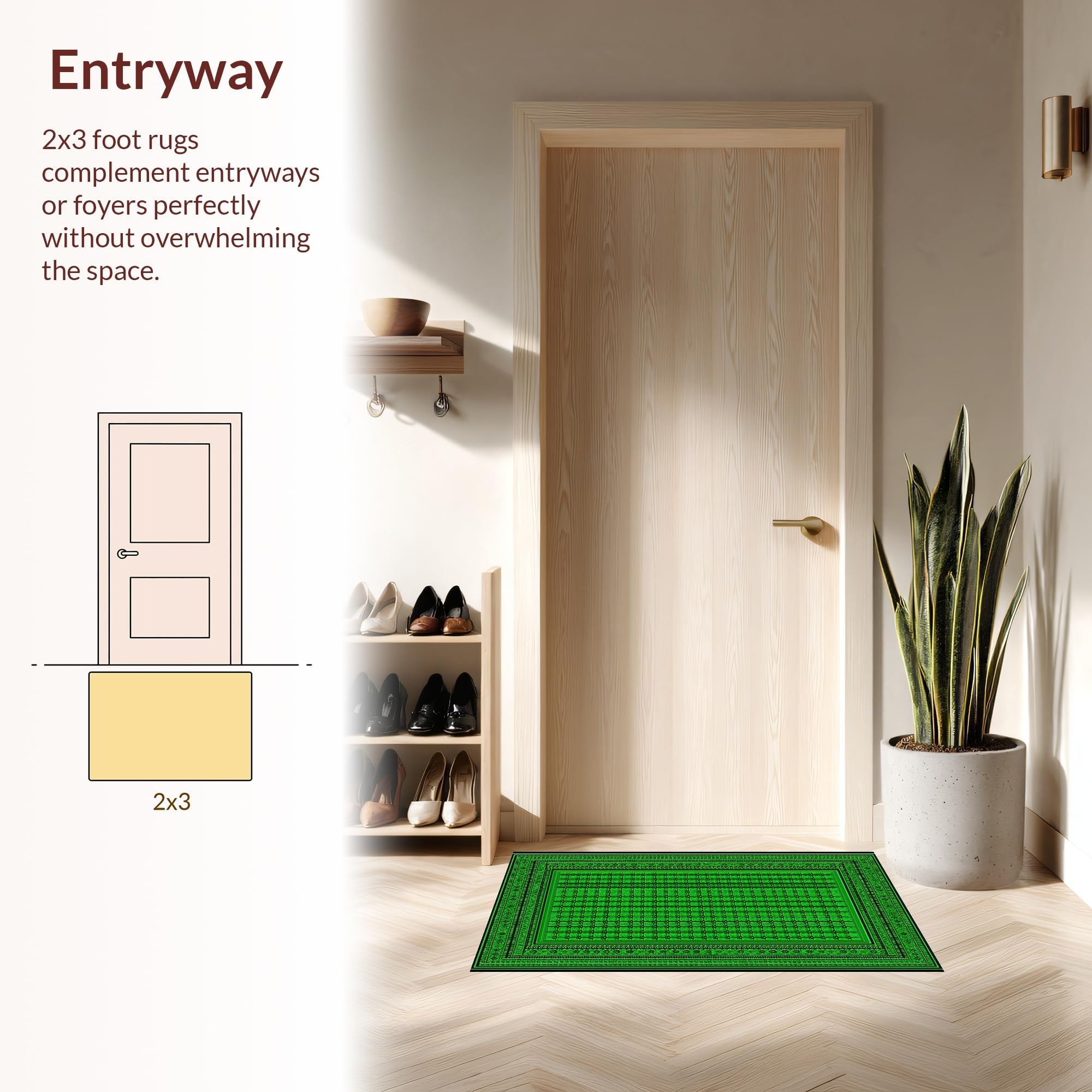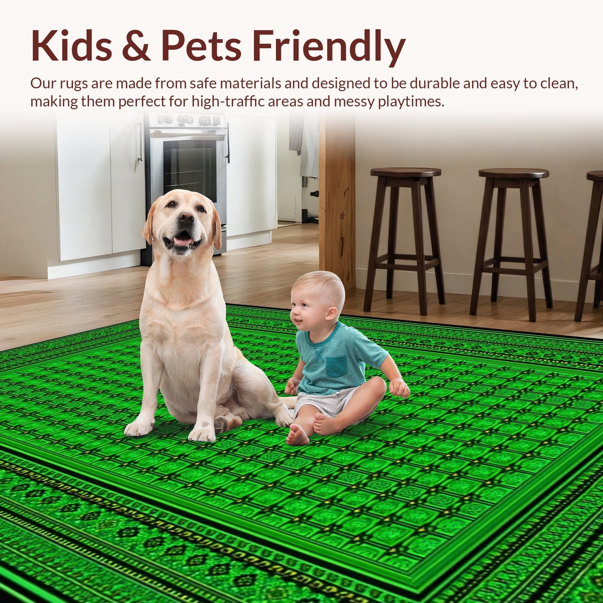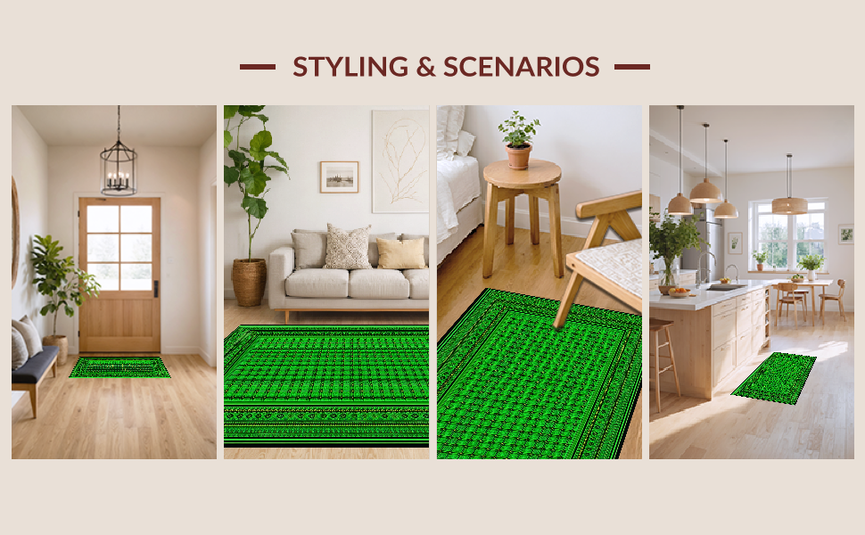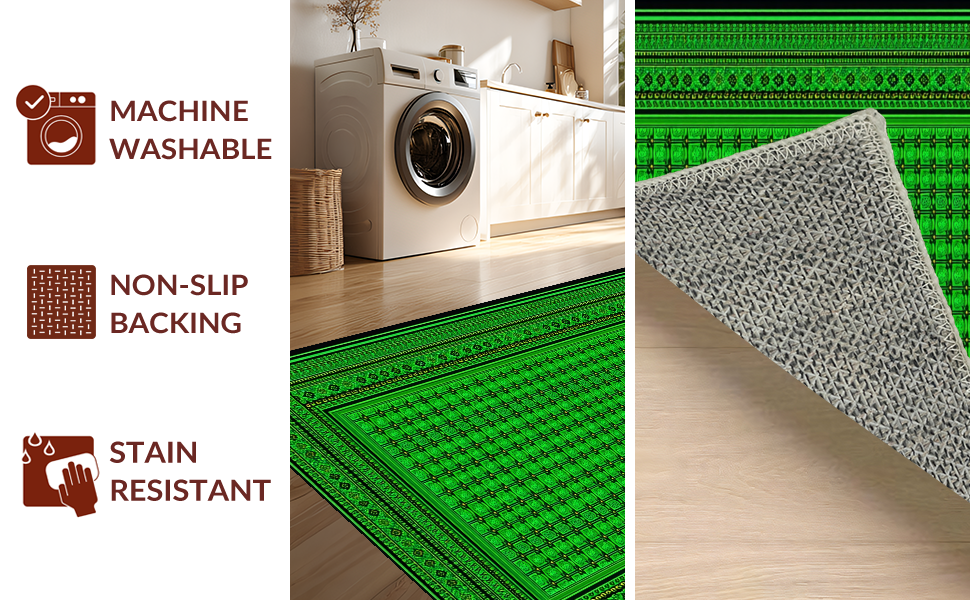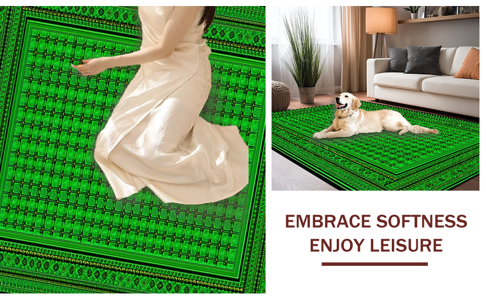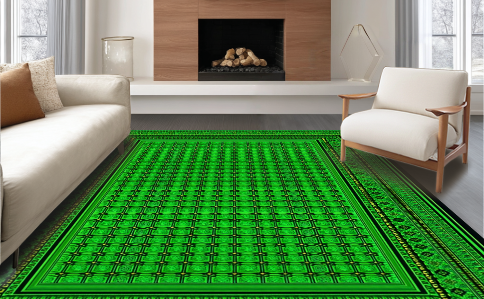 Ultra Soft Area Rug, Non Slip, Stain Resistant, Washable Area Rugs for Living Room, Bedroom, Modern Subdued Tiled Pattern(Green) Overview:
