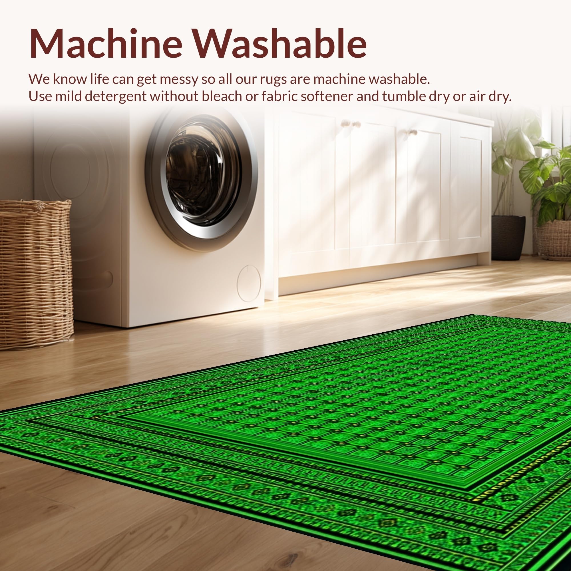 - Machine Washable: Our rugs can be easily thrown in the wash machine.