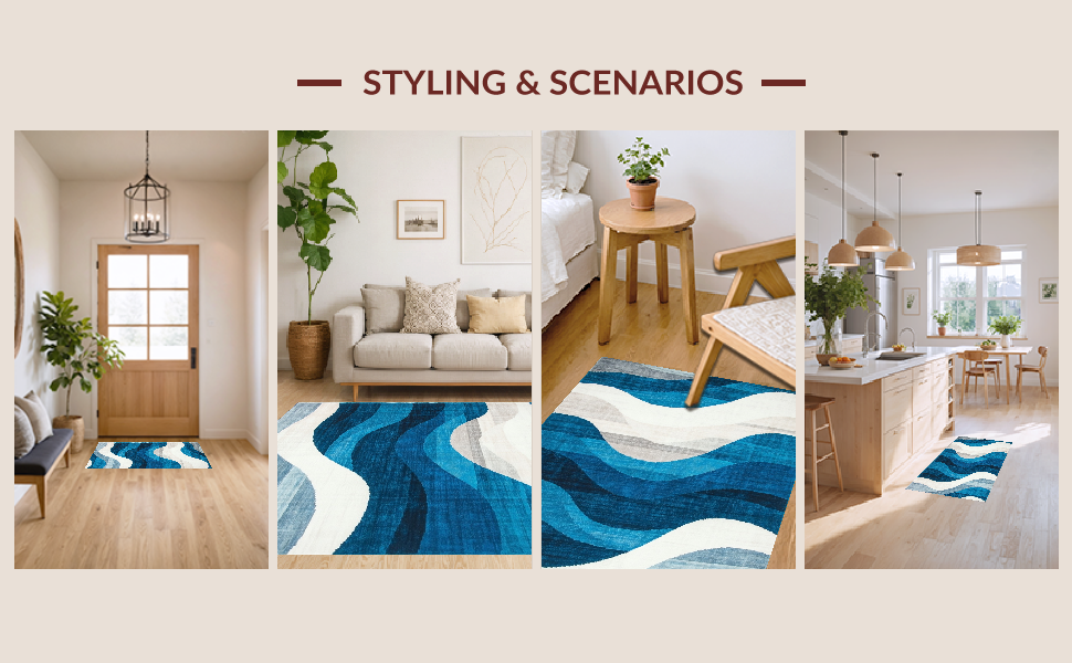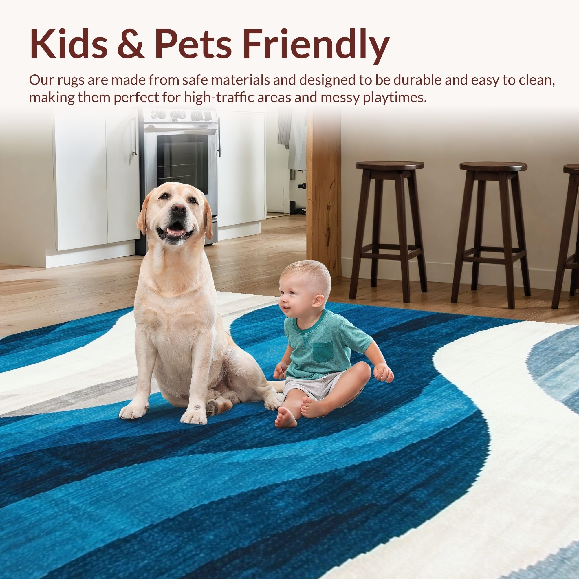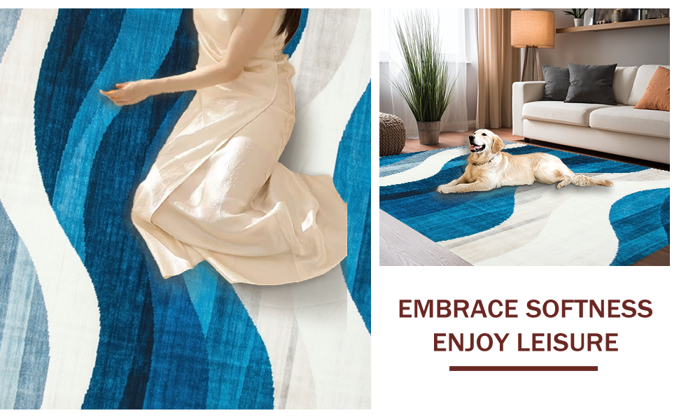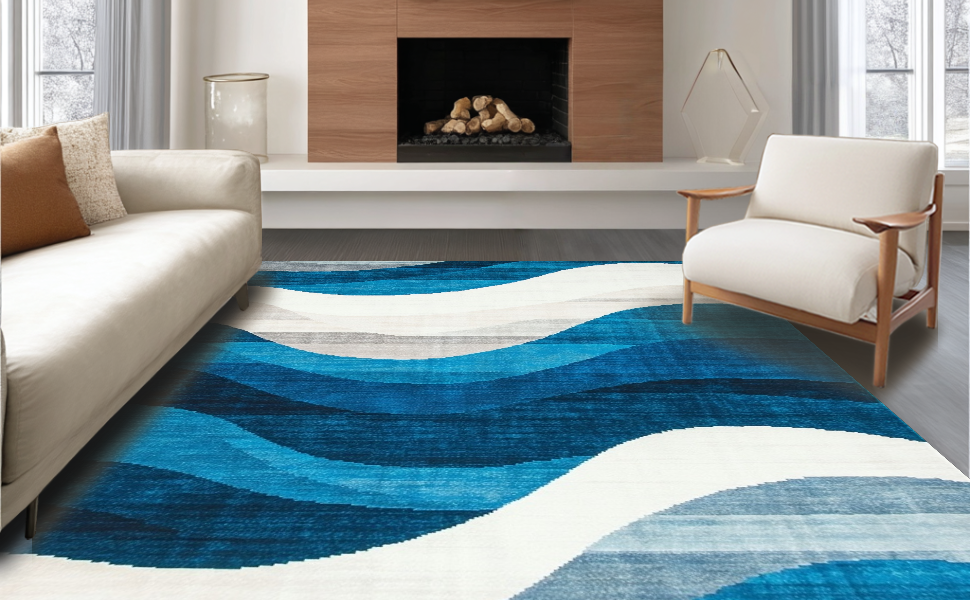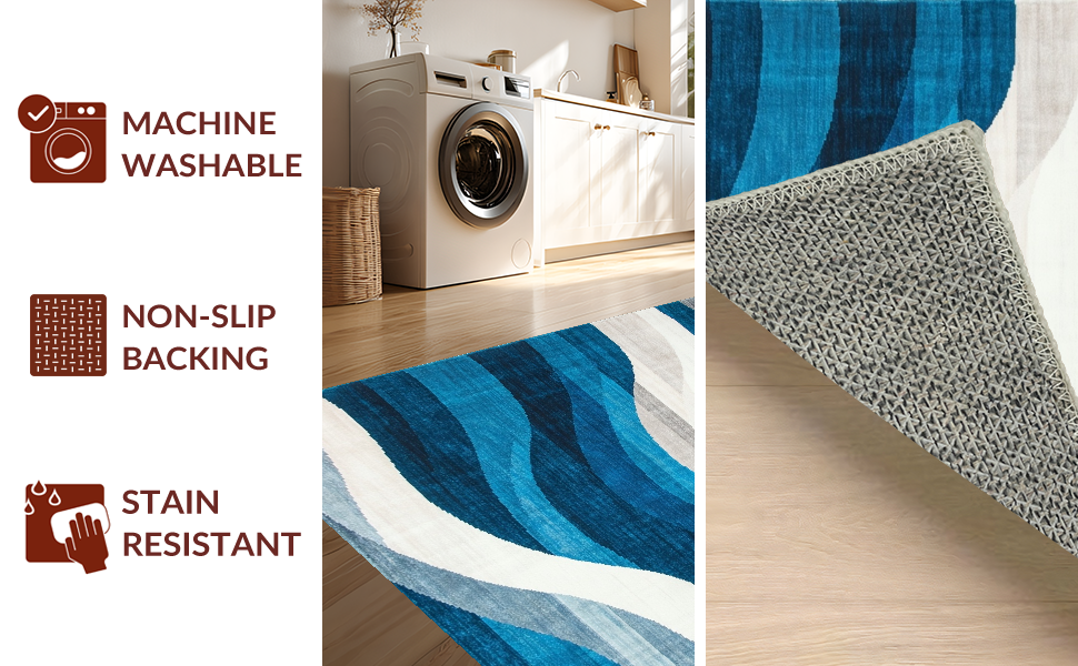Ultra Soft Area Rug, Non Slip, Stain Resistant, Washable Area Rugs for Living Room, Bedroom, Modern Subtle Color Block Pattern(Blue) Overview: