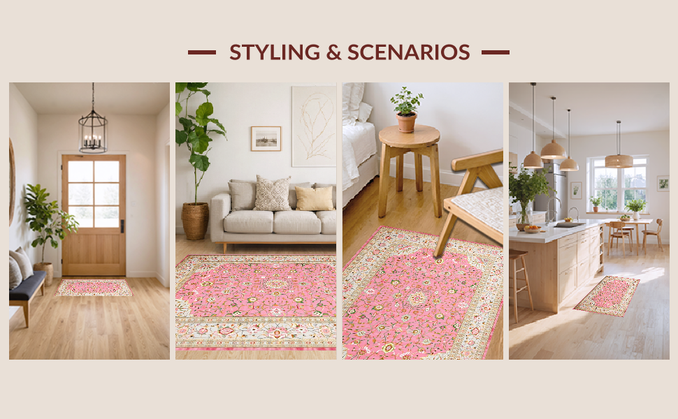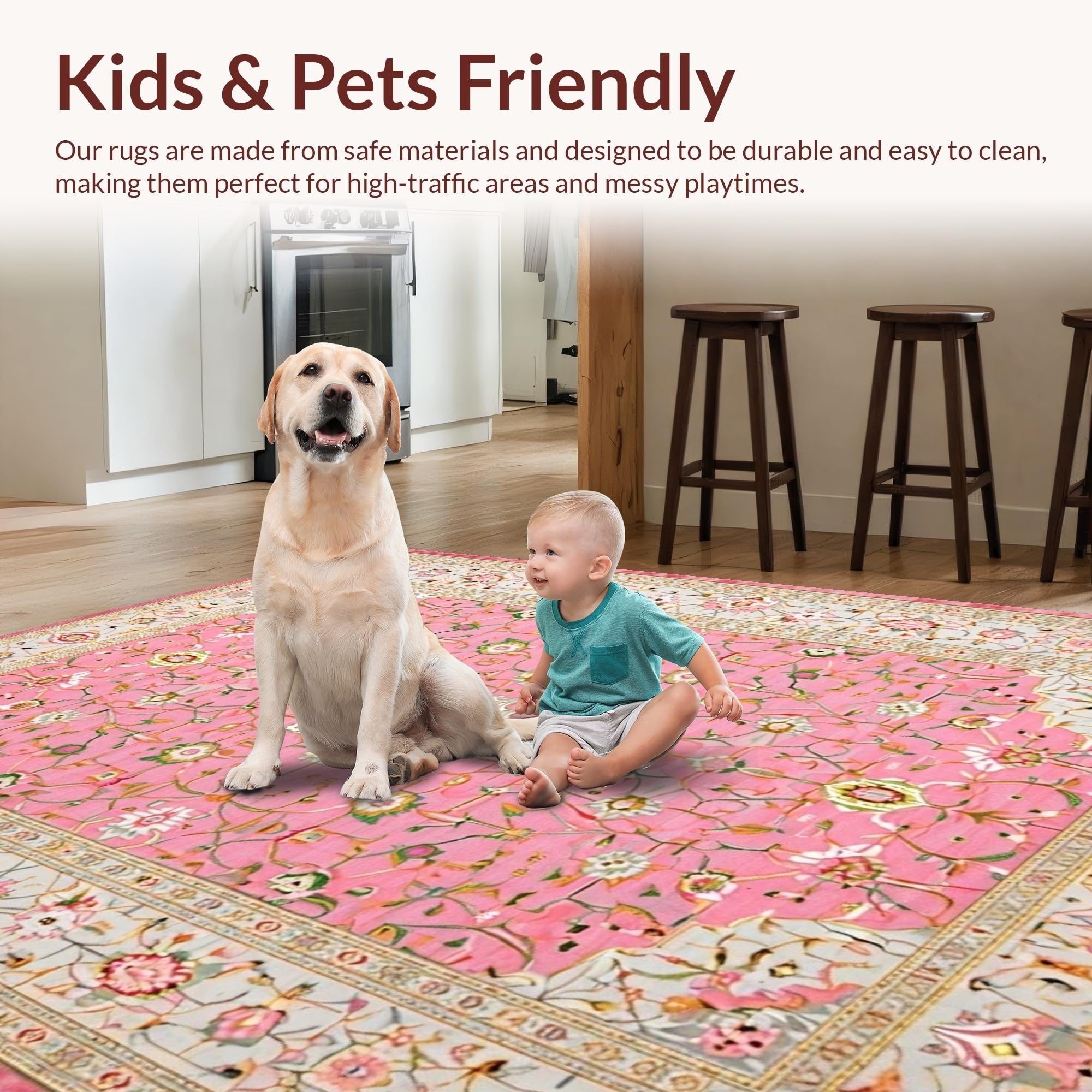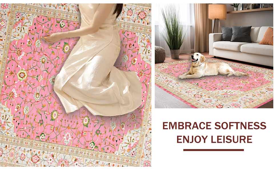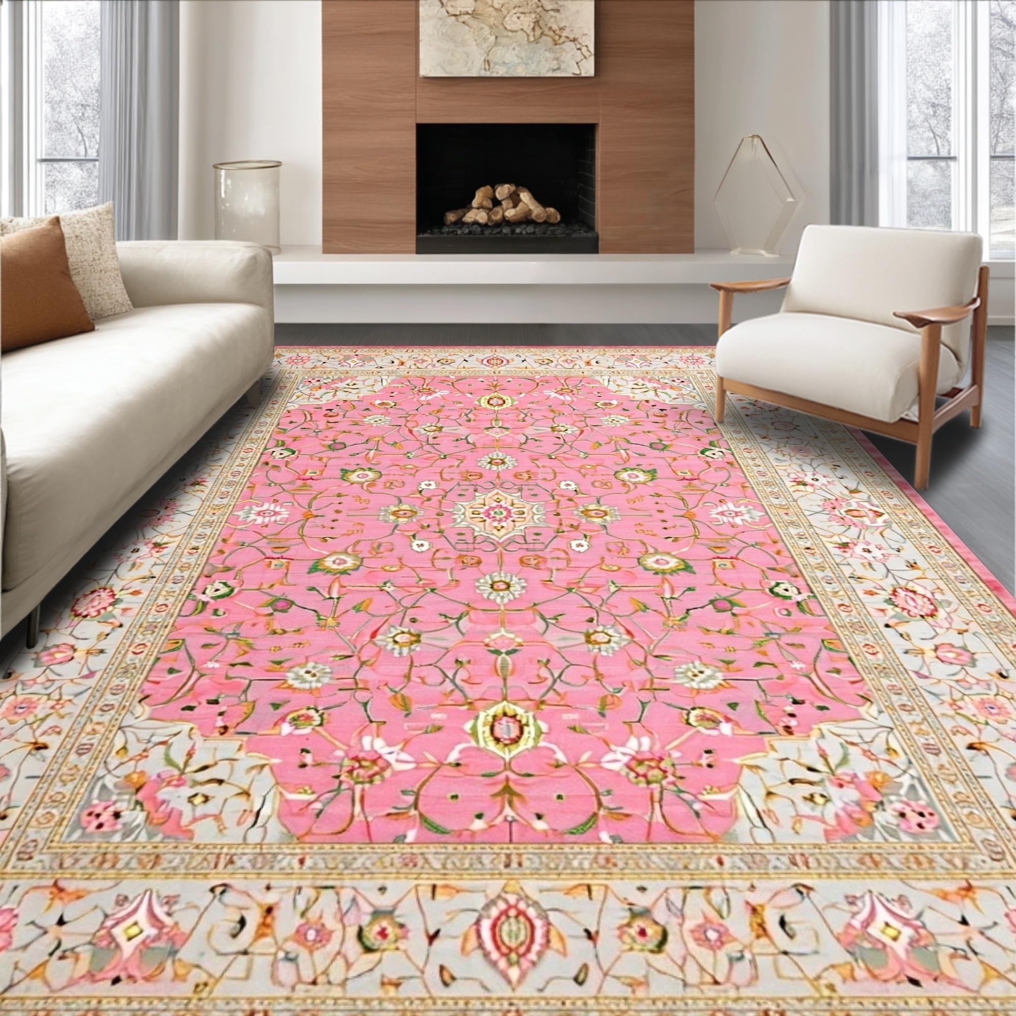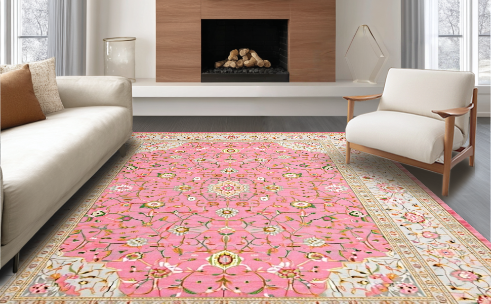 Ultra Soft Area Rug, Non Slip, Stain Resistant, Washable Area Rugs for Living Room, Bedroom, Modern Subtle Geometric Composition(Pink) Overview: