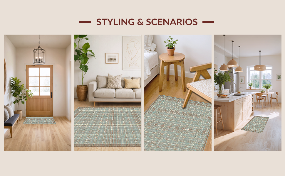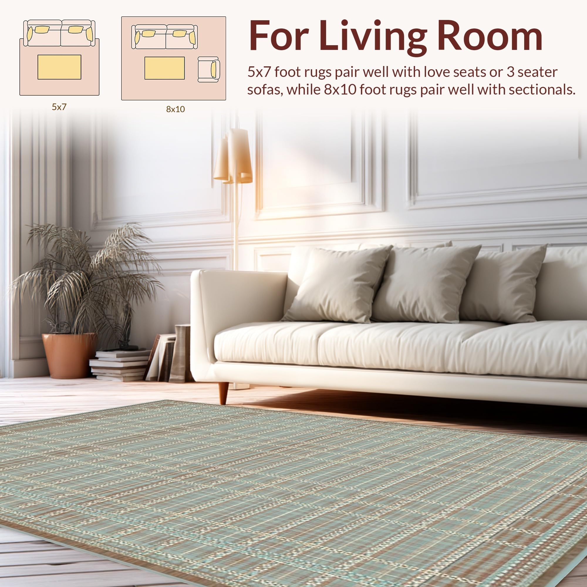 Ultra Soft Area Rug, Non Slip, Stain Resistant, Washable Area Rugs for Living Room, Bedroom, Modern Subtle Tiled Aesthetic(Beige) Overview: