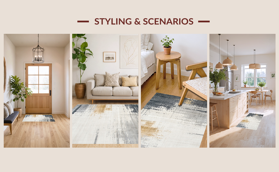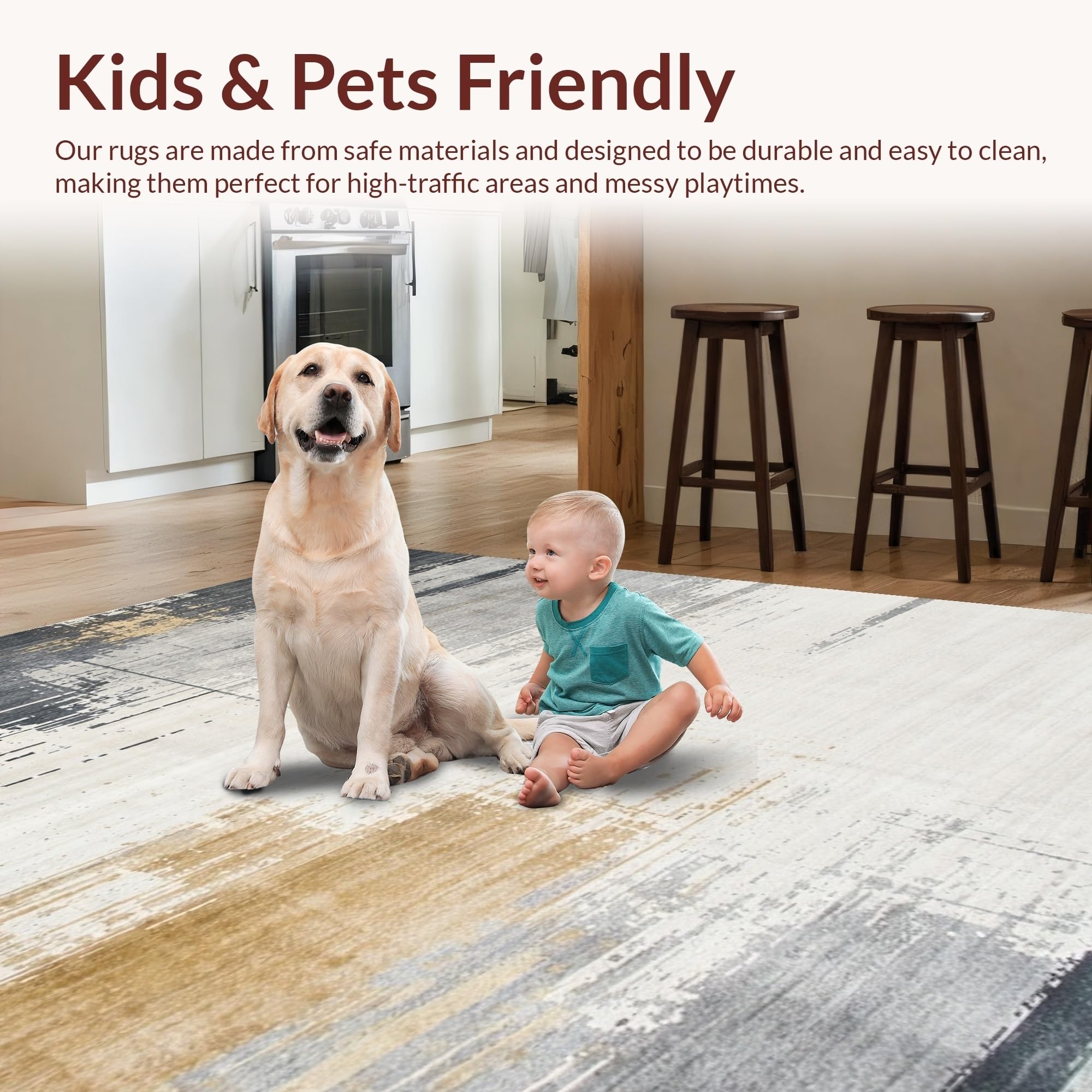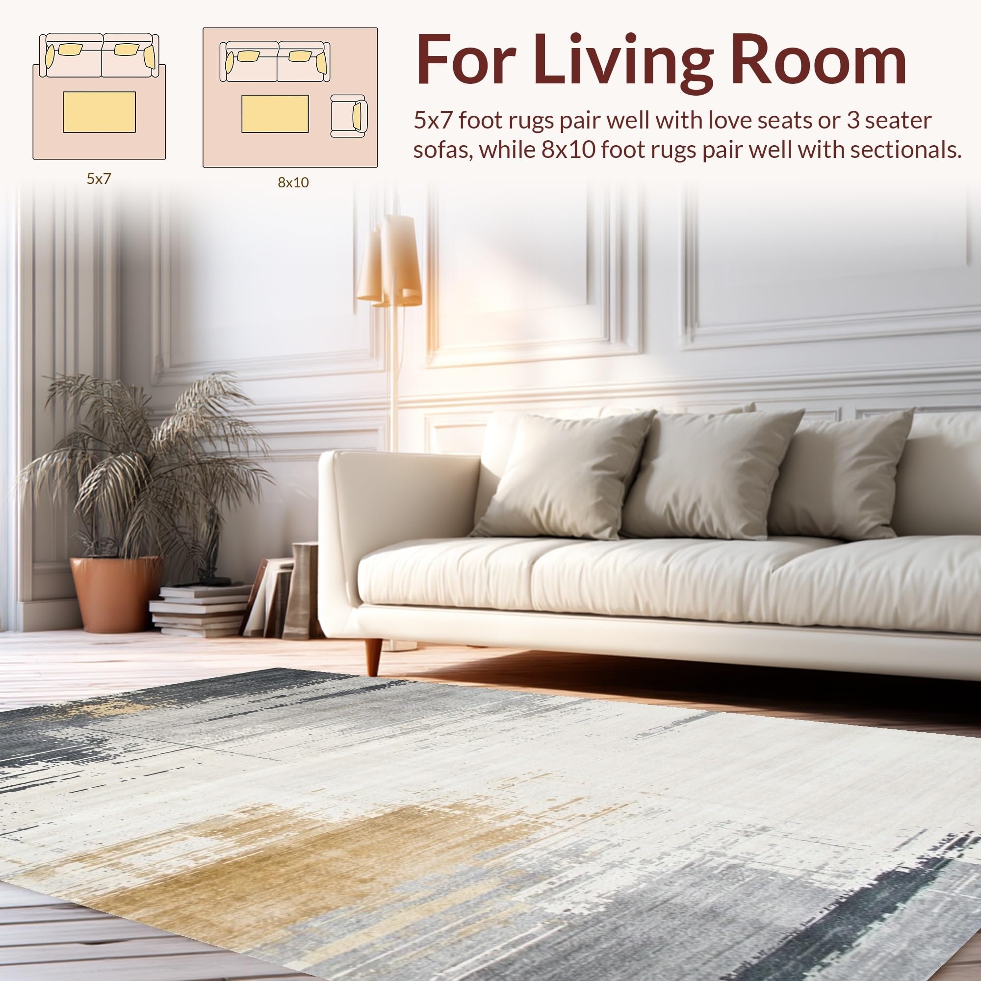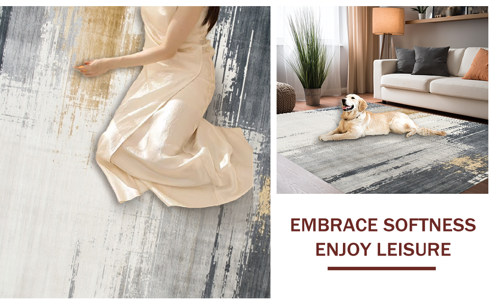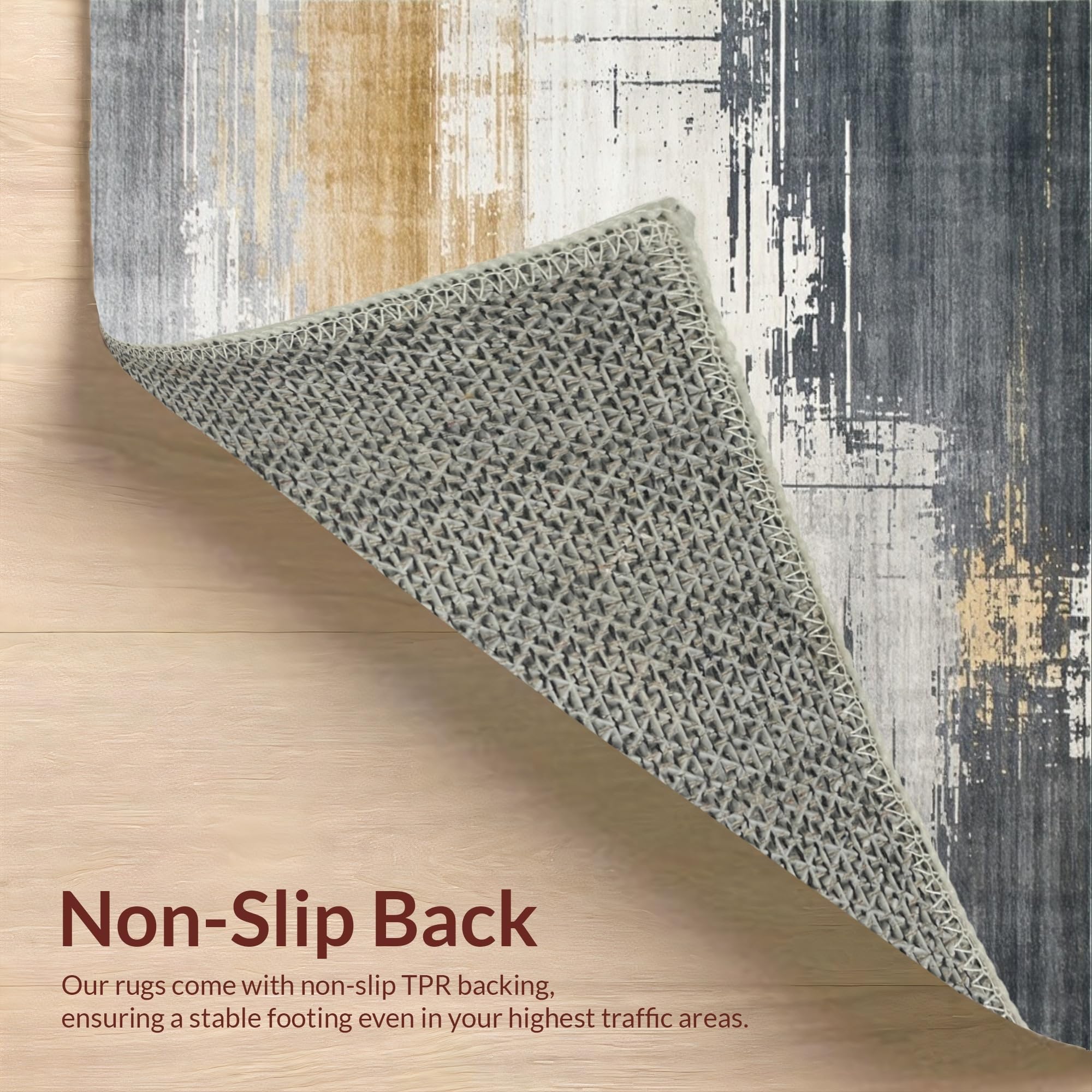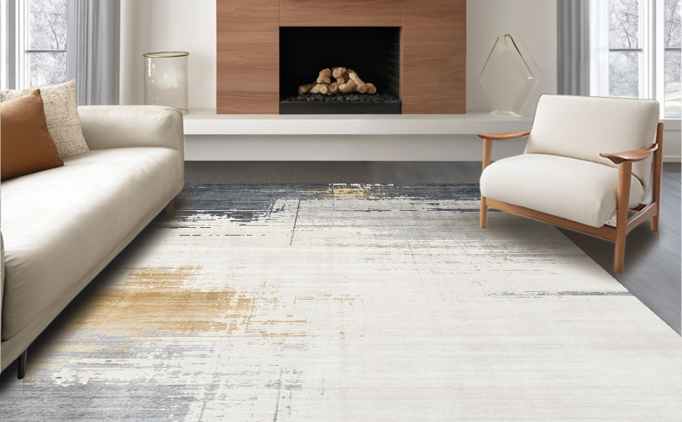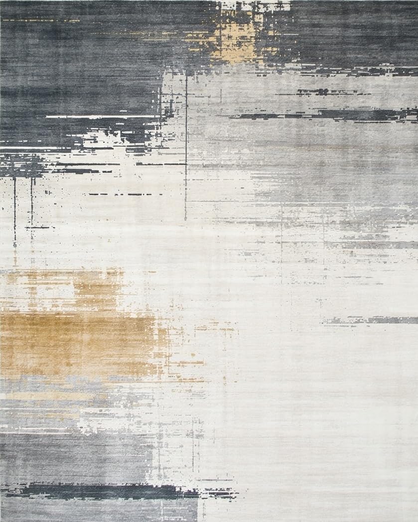 Ultra Soft Area Rug, Non Slip, Stain Resistant, Washable Area Rugs for Living Room, Bedroom, Modern Symmetrical Blurred Elements(Gray) Overview: