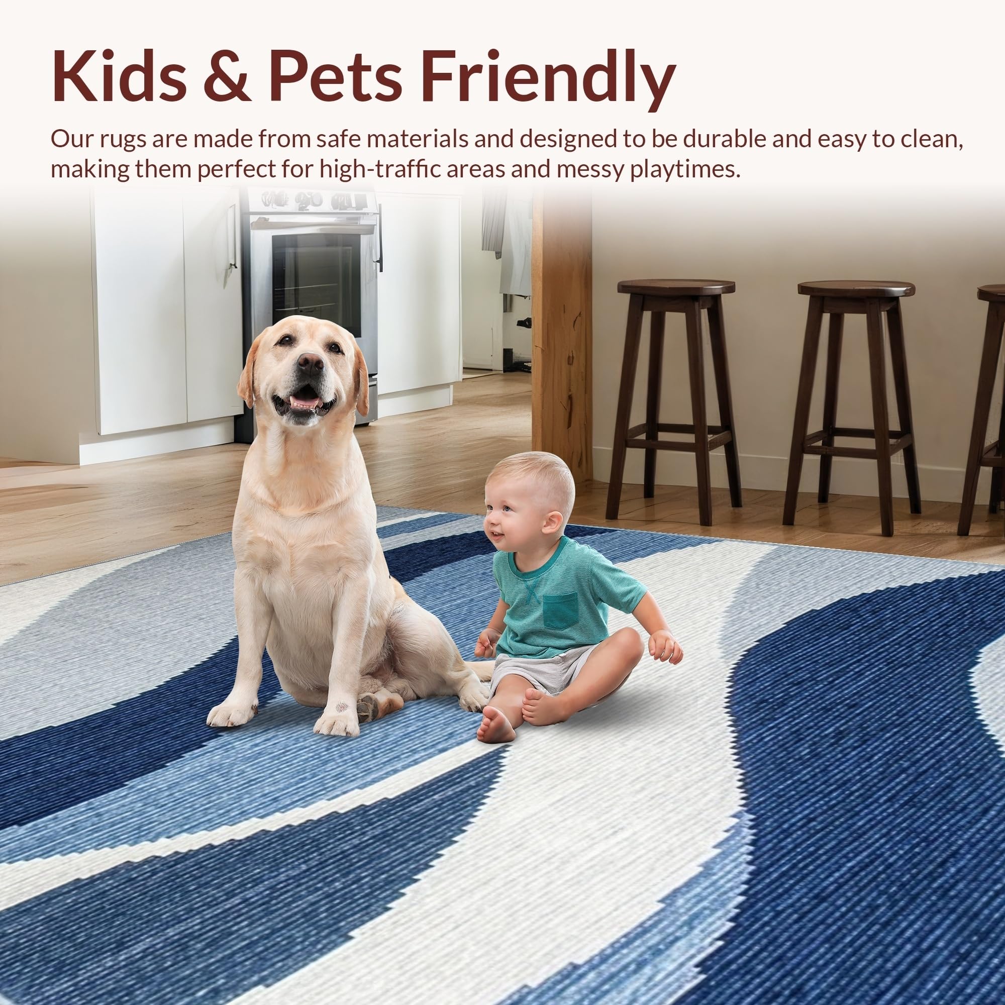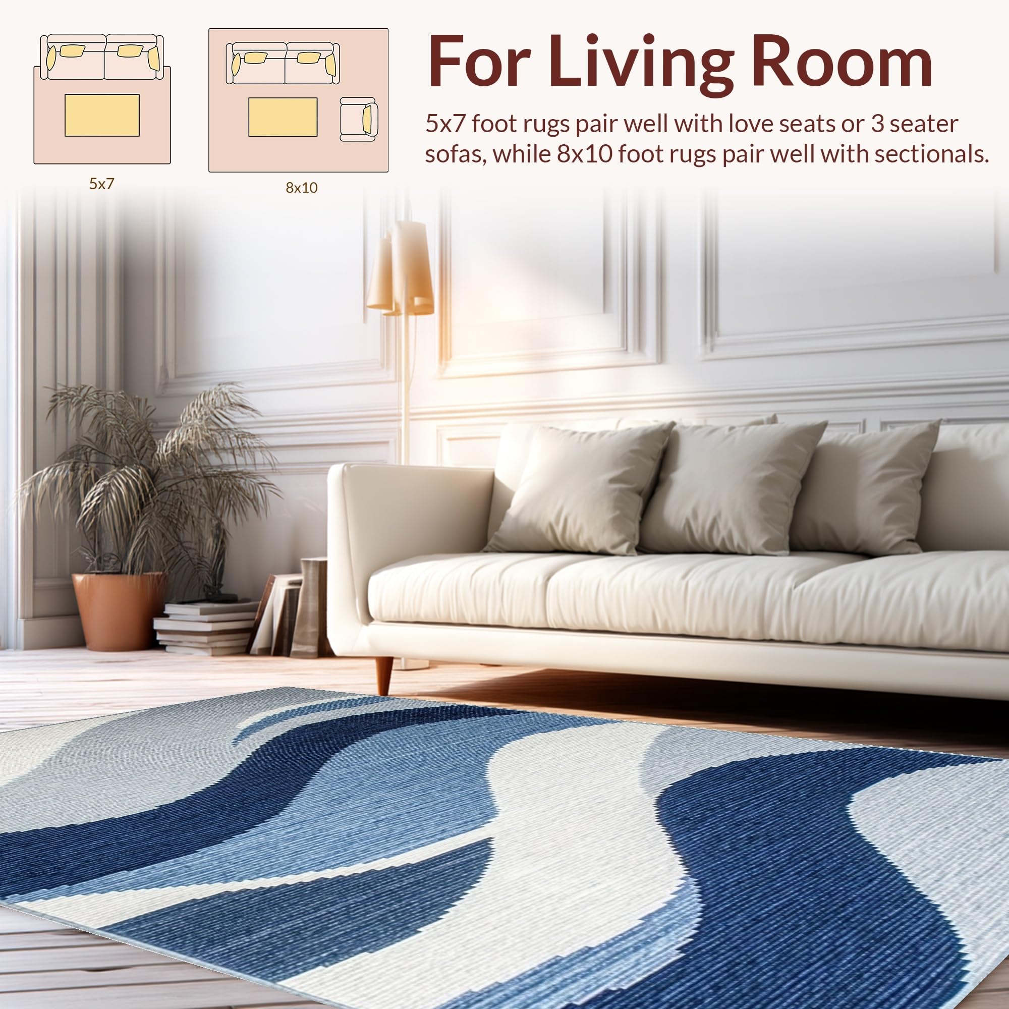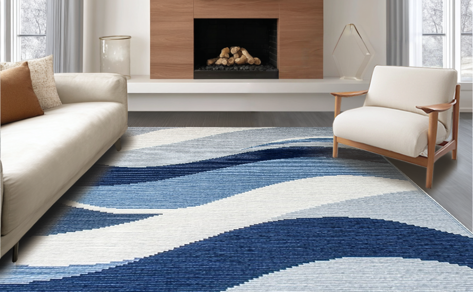 Ultra Soft Area Rug, Non Slip, Stain Resistant, Washable Area Rugs for Living Room, Bedroom, Modern Symmetrical Diamond Layout(Blue) Overview:
