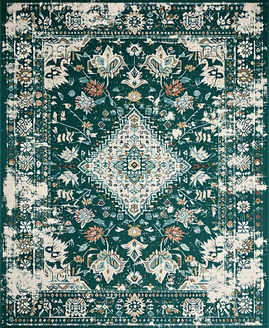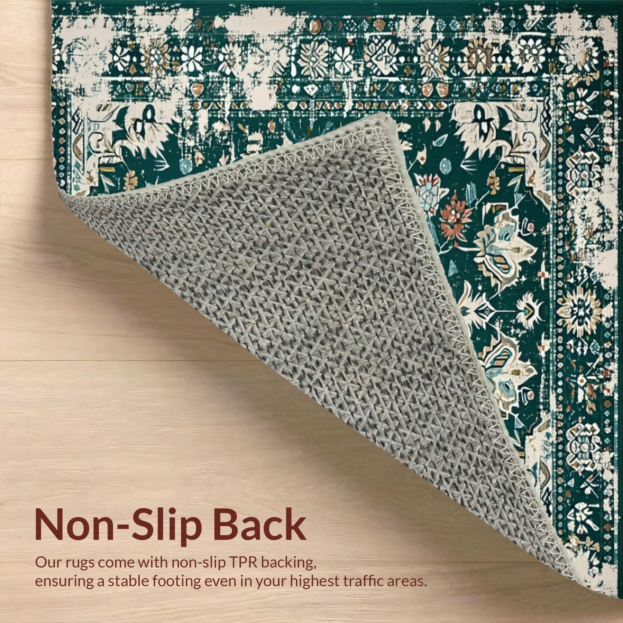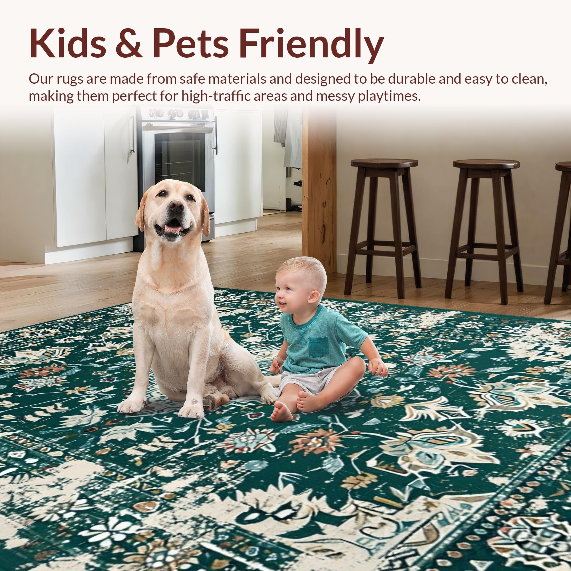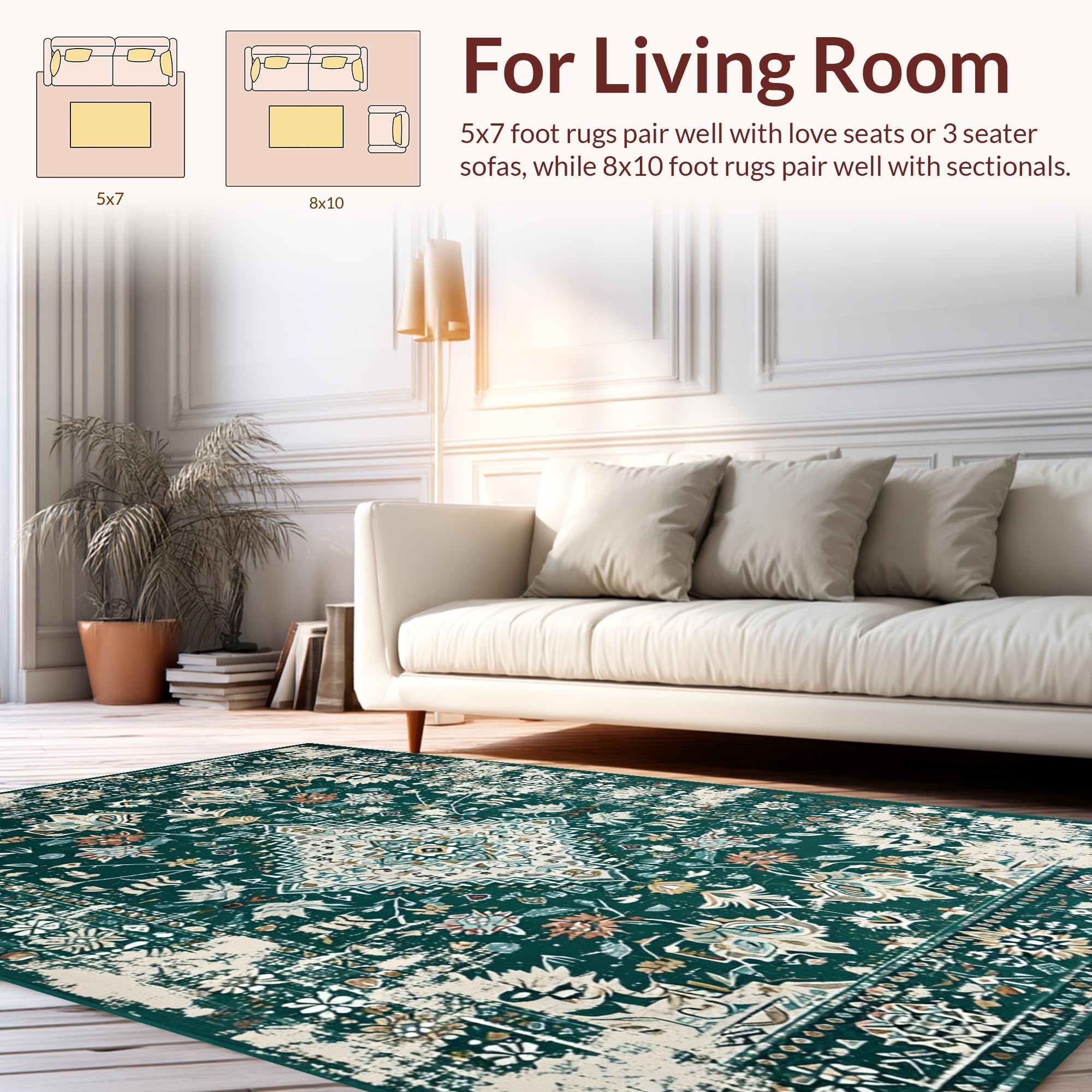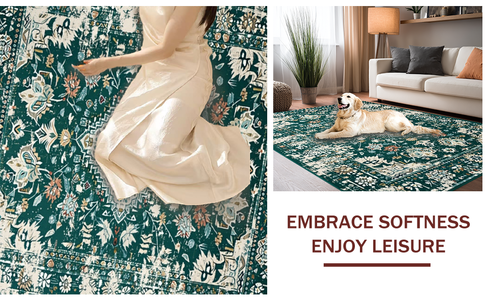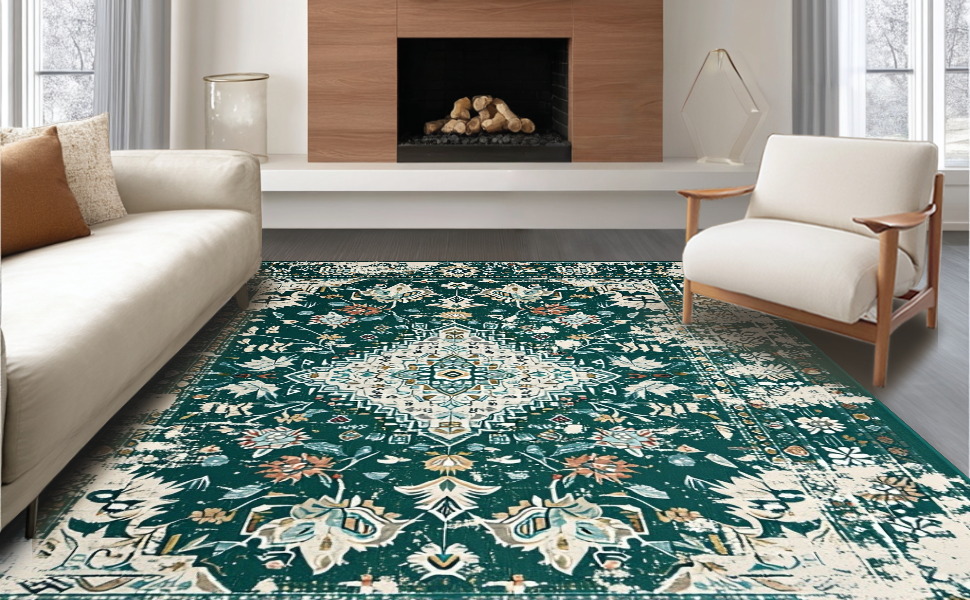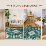 Ultra Soft Area Rug, Non Slip, Stain Resistant, Washable Area Rugs for Living Room, Bedroom, Modern Symmetrical Floral Accents(Green) Overview: