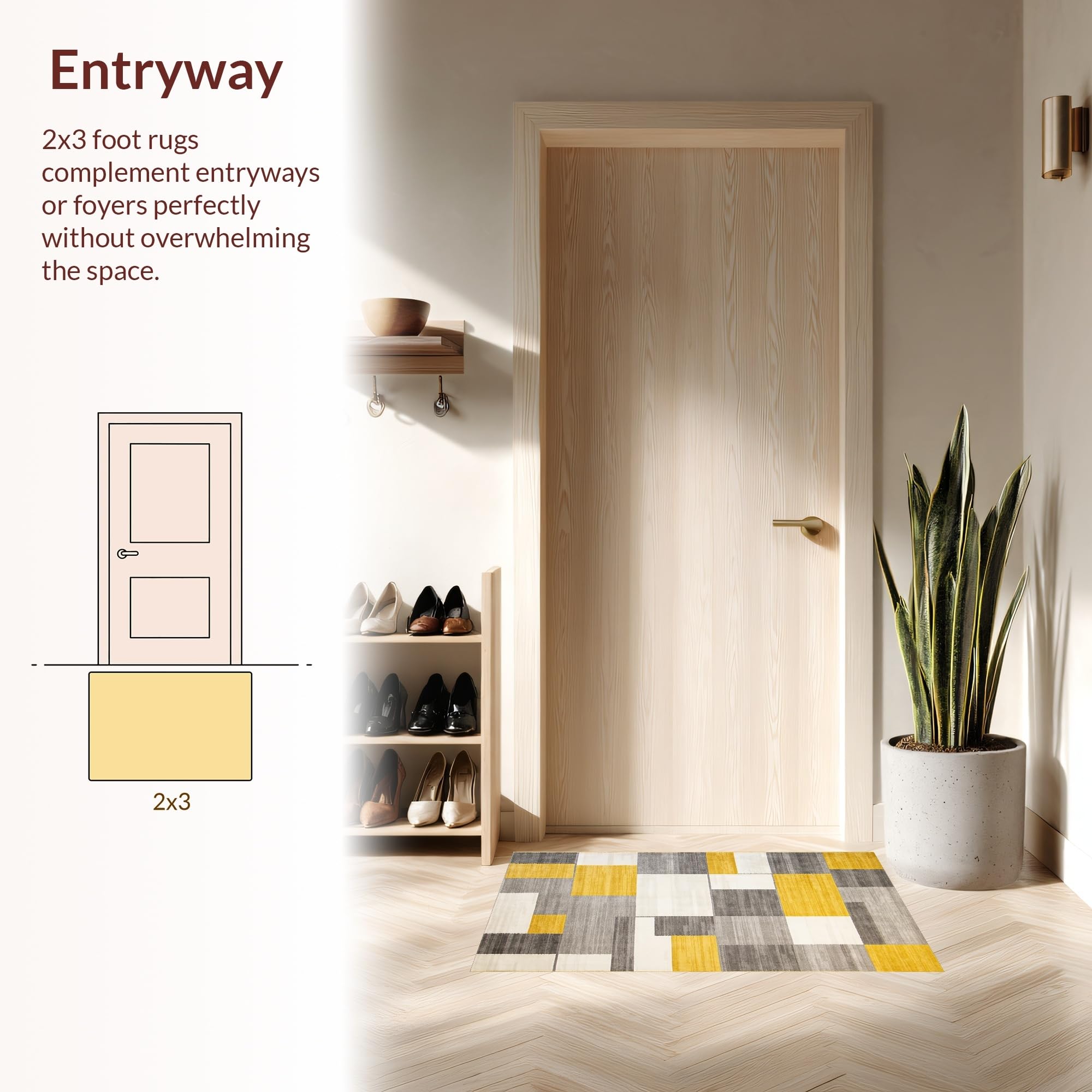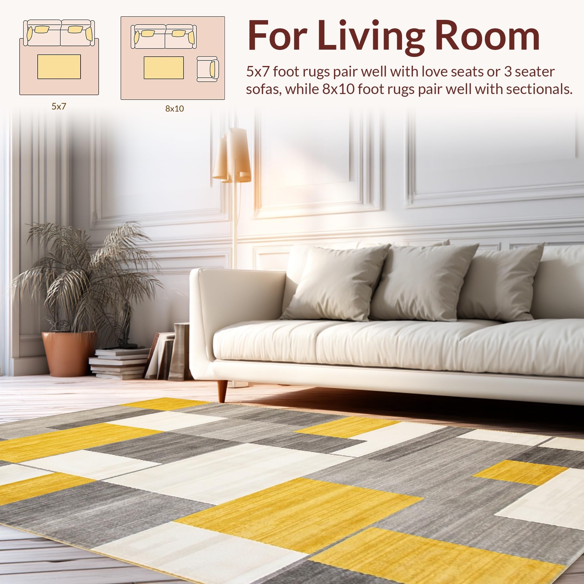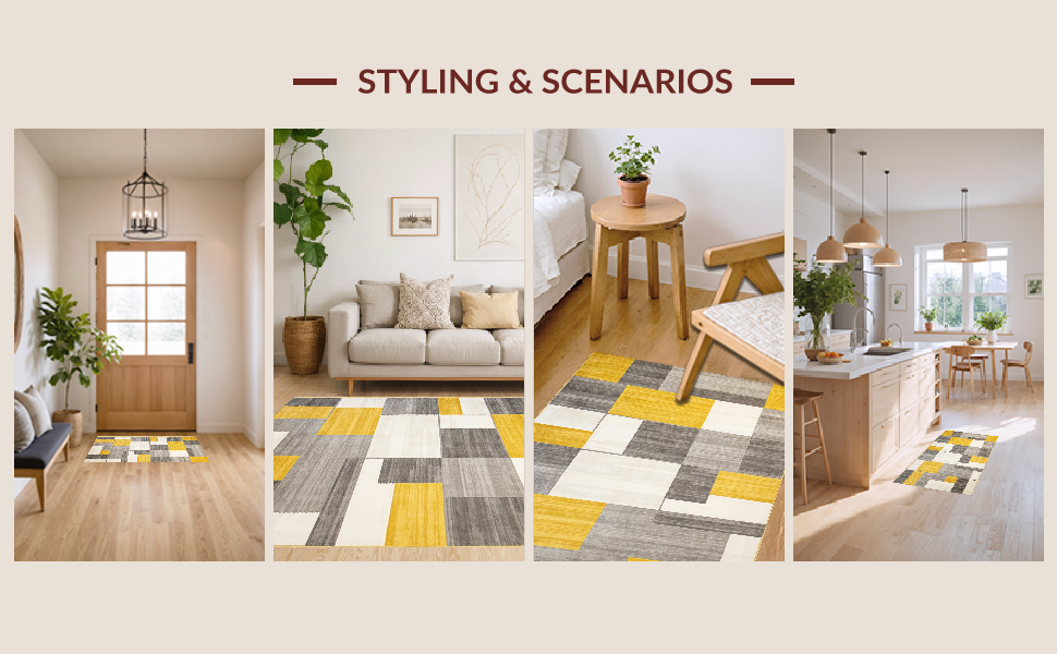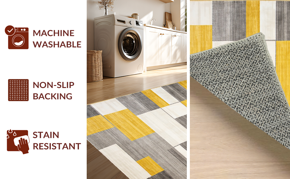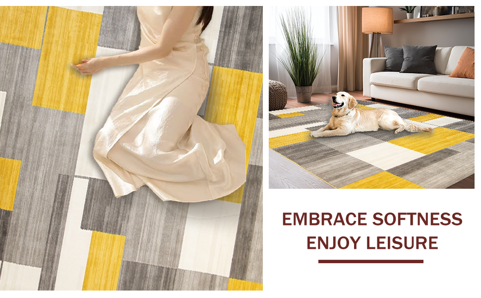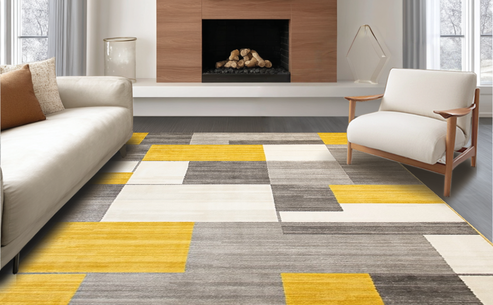 Ultra Soft Area Rug, Non Slip, Stain Resistant, Washable Area Rugs for Living Room, Bedroom, Modern Tan Gray Color Fusion(Yellow) Overview: