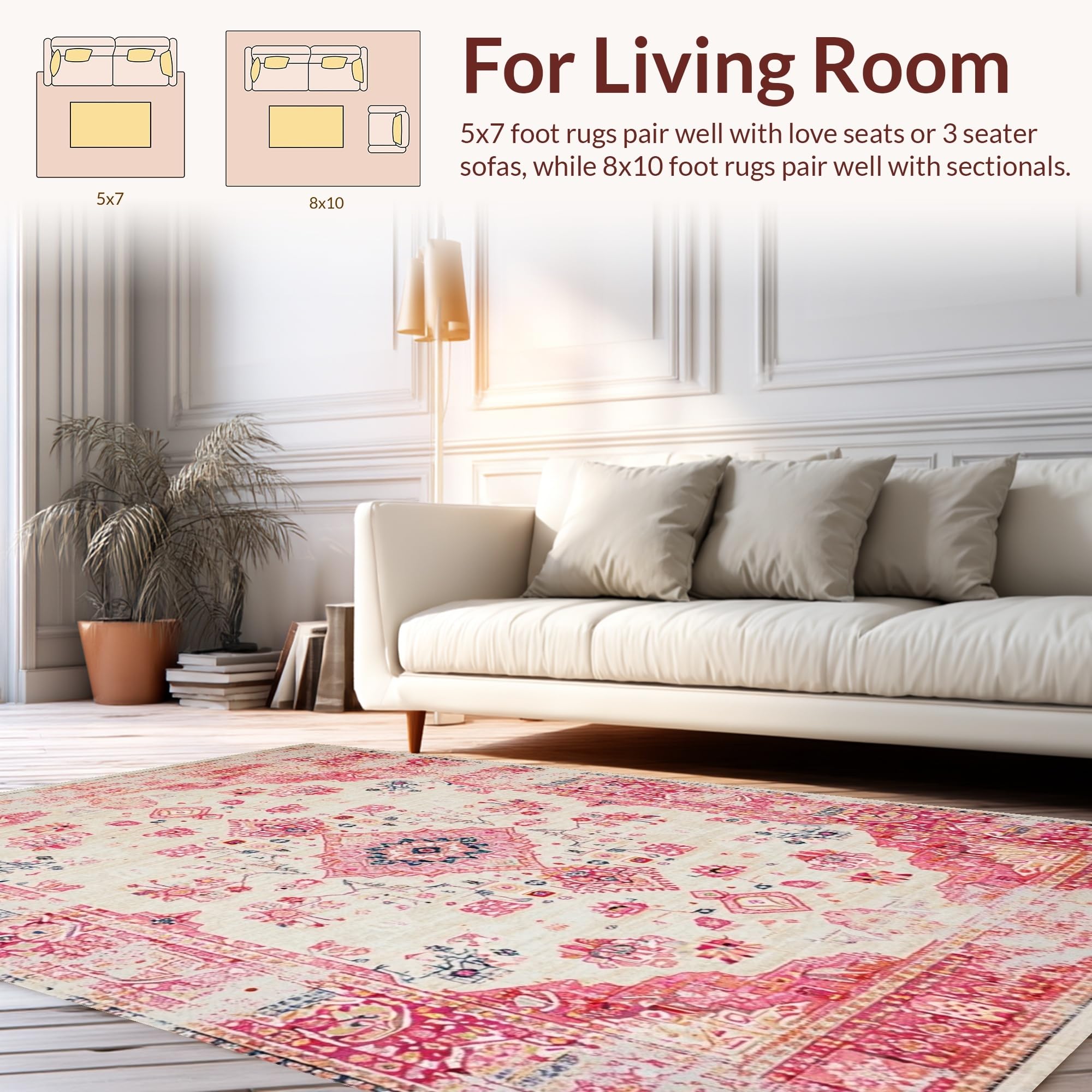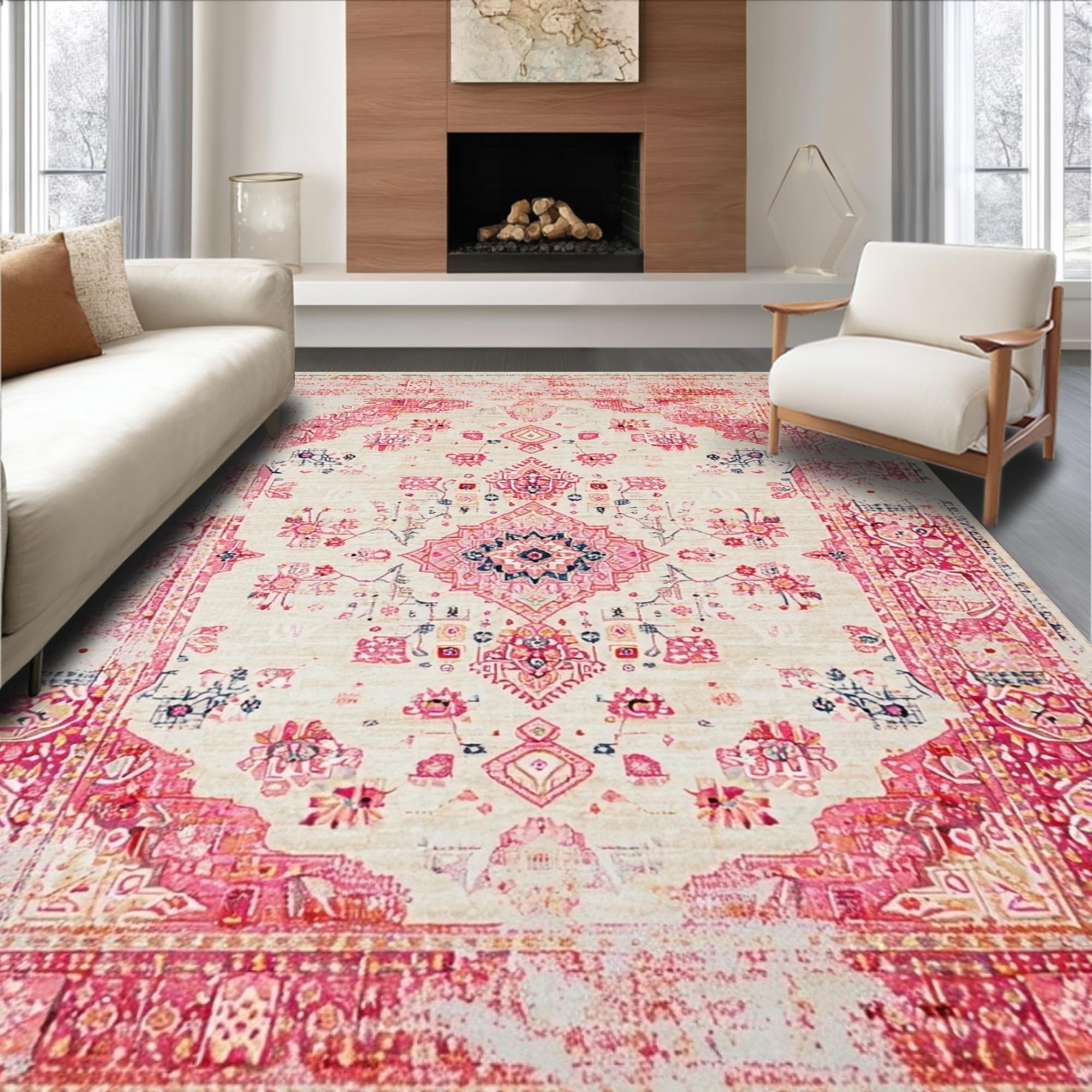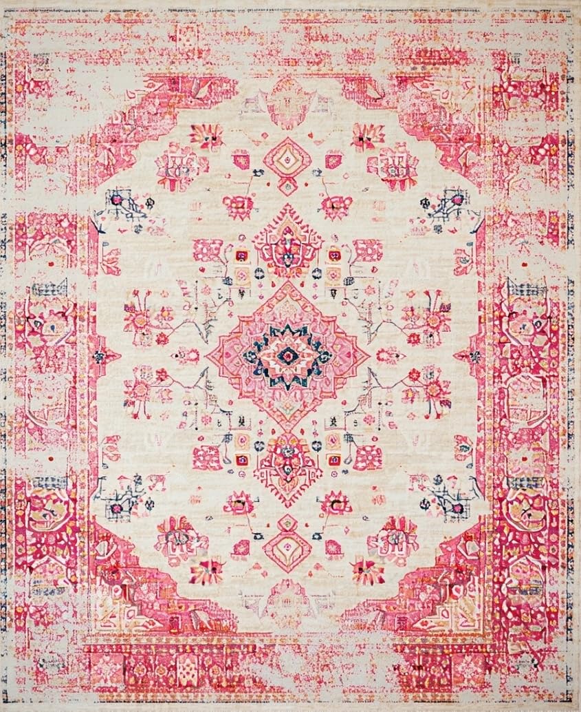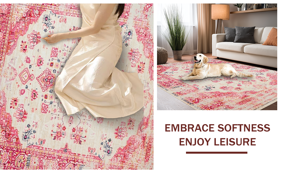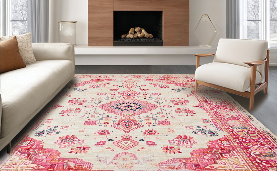 Ultra Soft Area Rug, Non Slip, Stain Resistant, Washable Area Rugs for Living Room, Bedroom, Modern Textured Flower Composition(Pink) Overview: