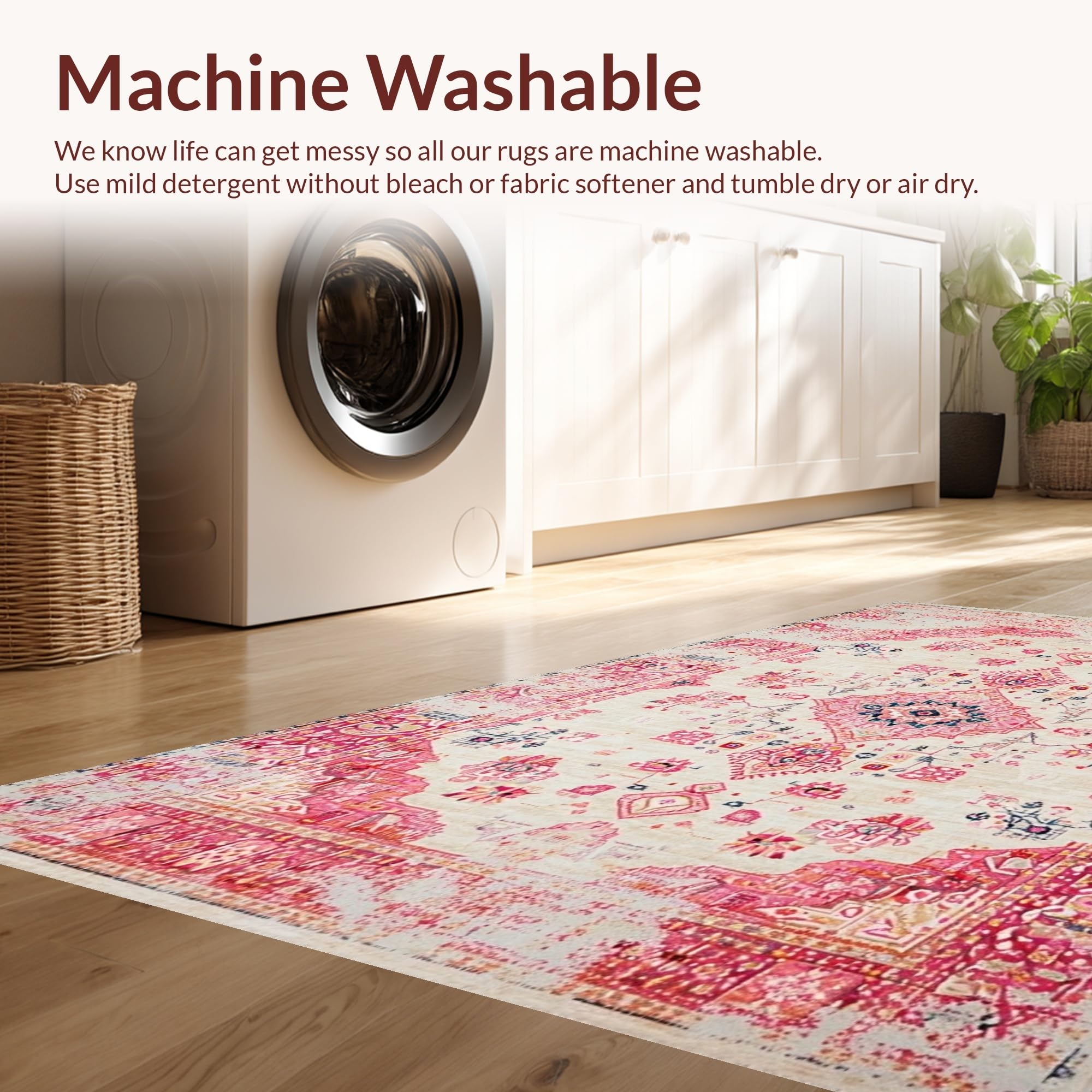 - Machine Washable: Our rugs can be easily thrown in the wash machine.