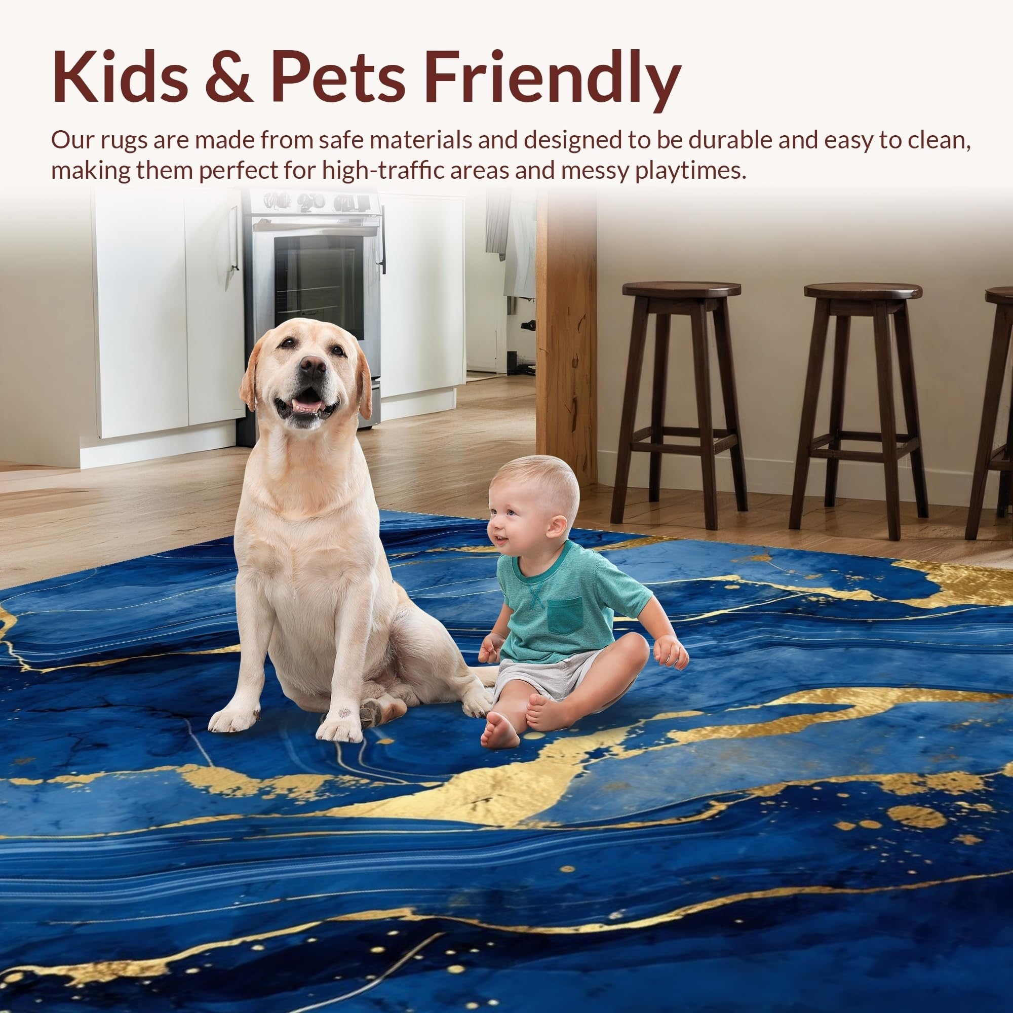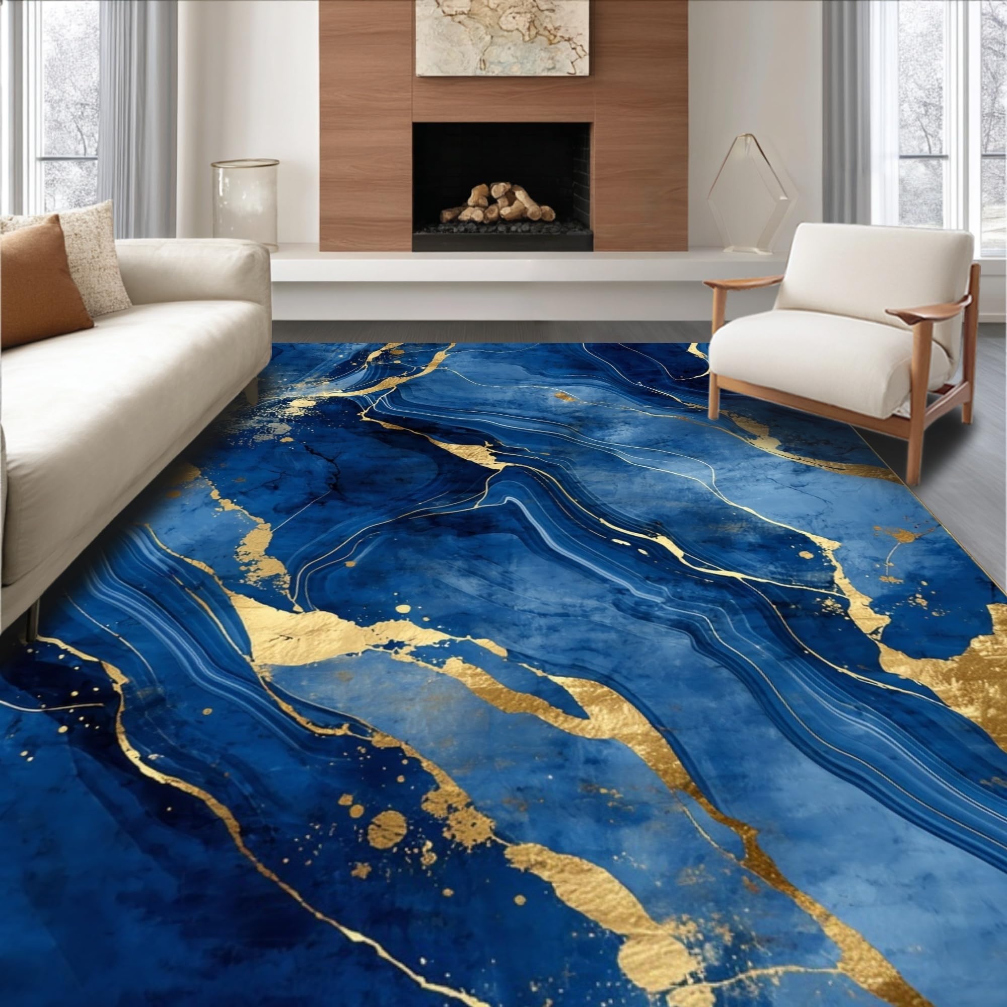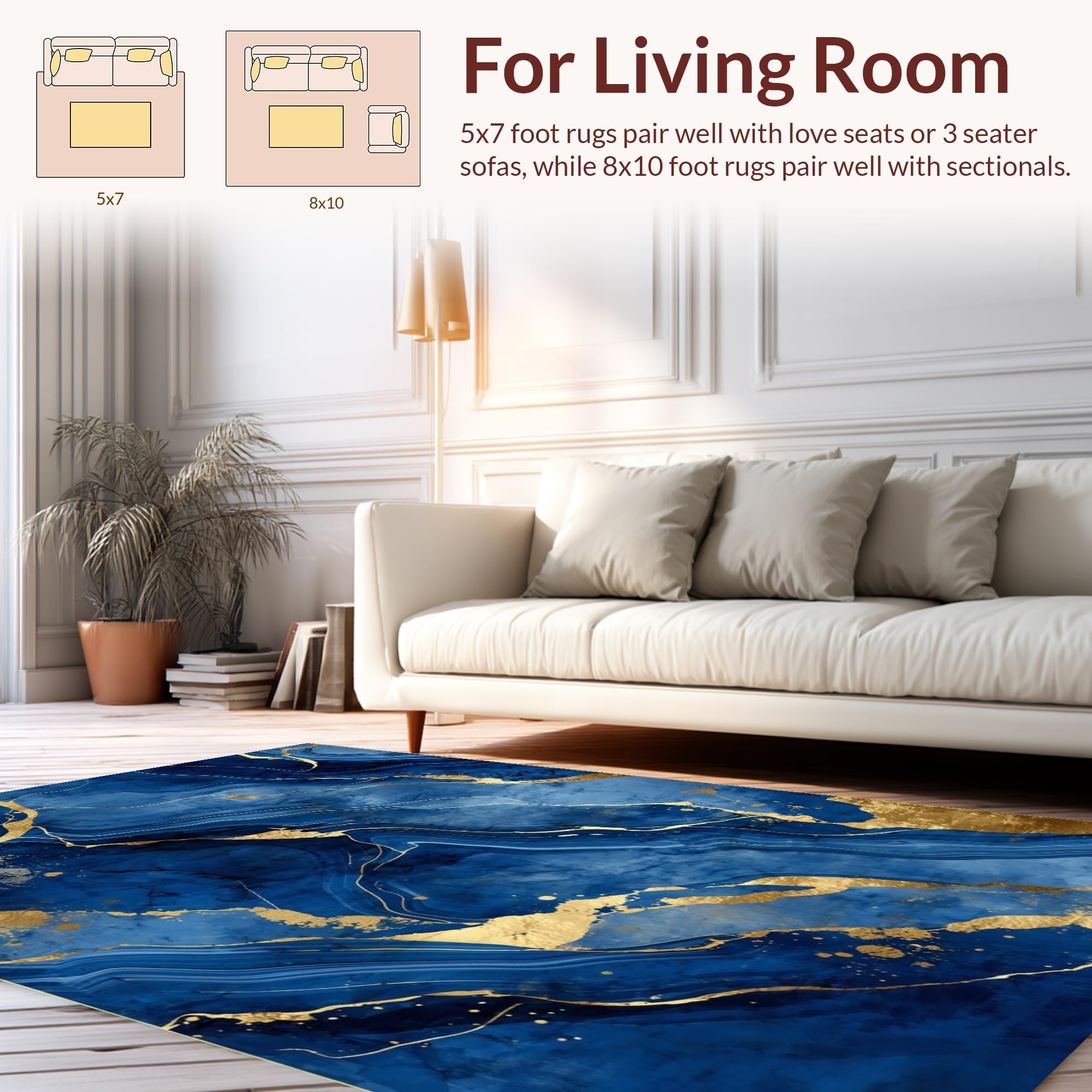 Ultra Soft Area Rug, Non Slip, Stain Resistant, Washable Area Rugs for Living Room, Bedroom, Modern Textured Geometric Fusion(Blue) Overview: