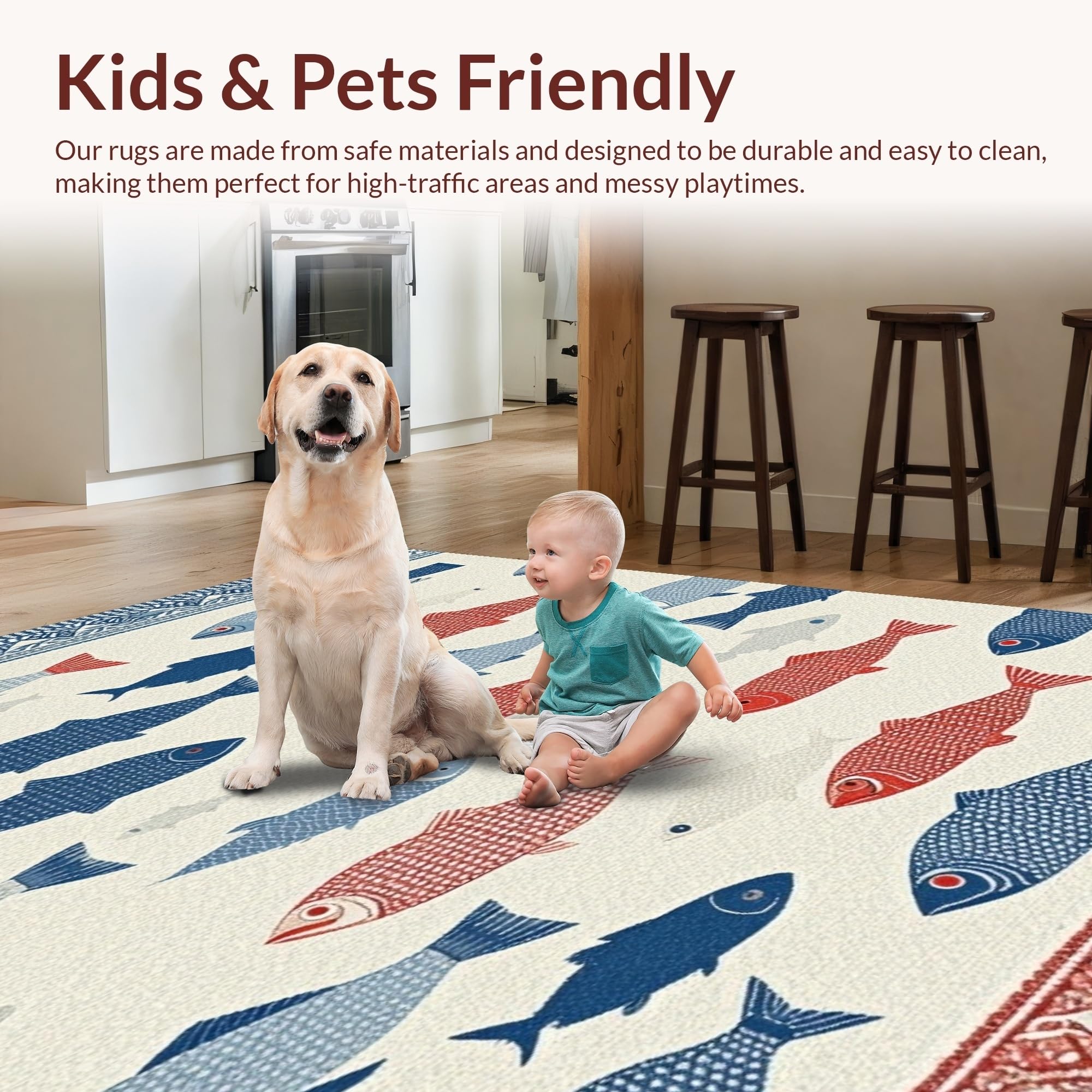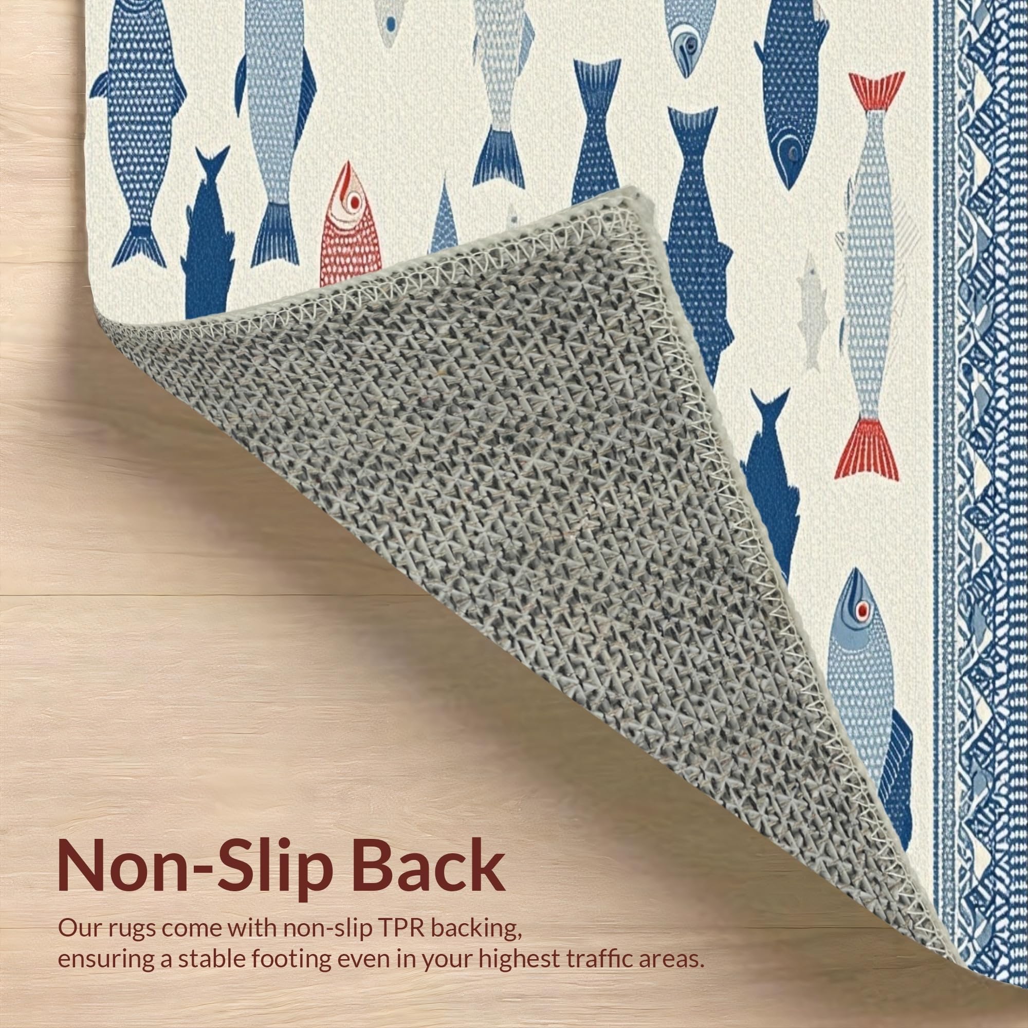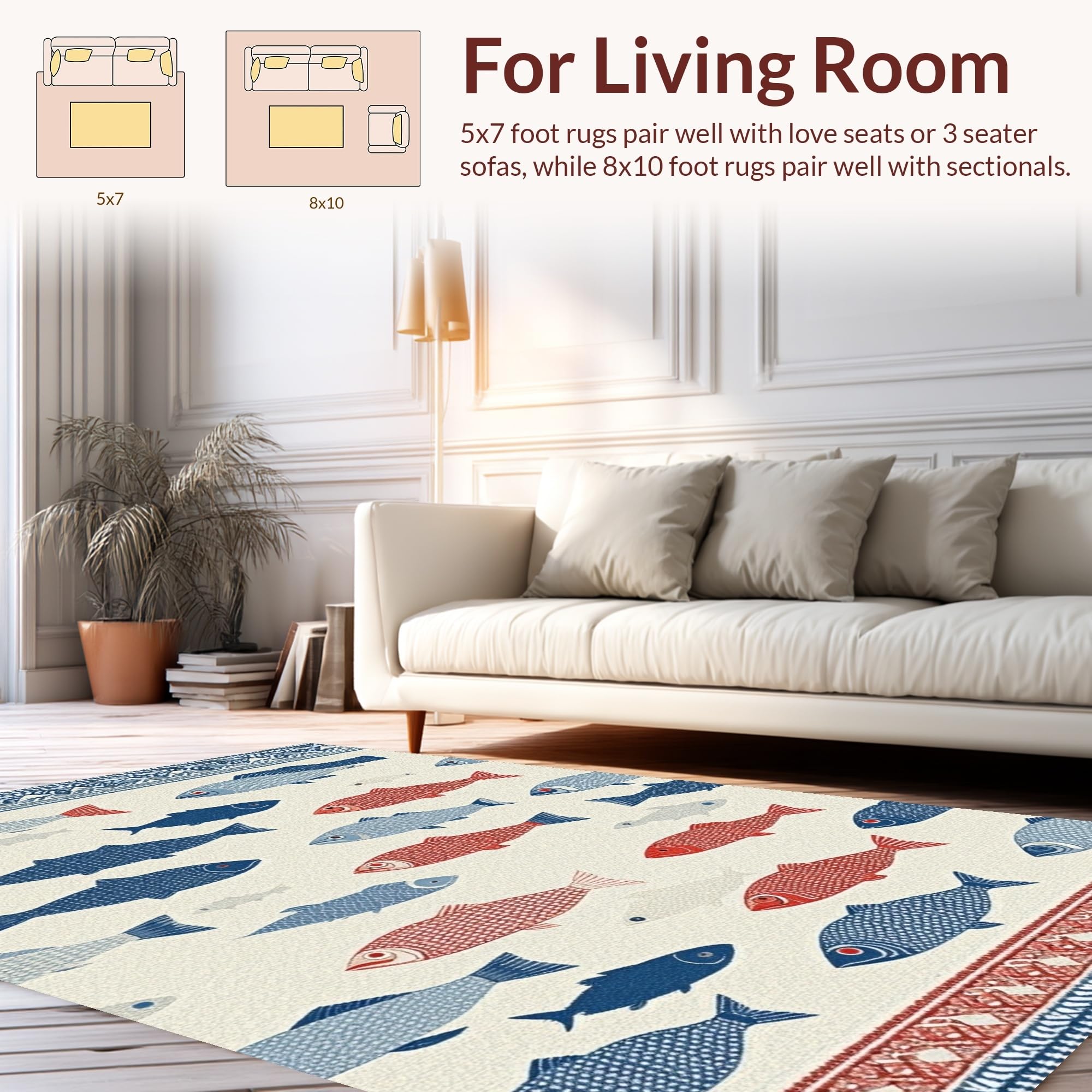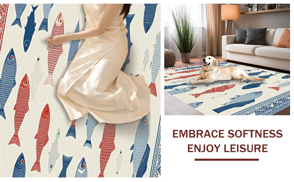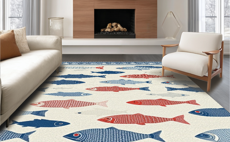 Ultra Soft Area Rug, Non Slip, Stain Resistant, Washable Area Rugs for Living Room, Bedroom, Modern Tiled Pattern with Ocean Vibes(Beige) Overview: