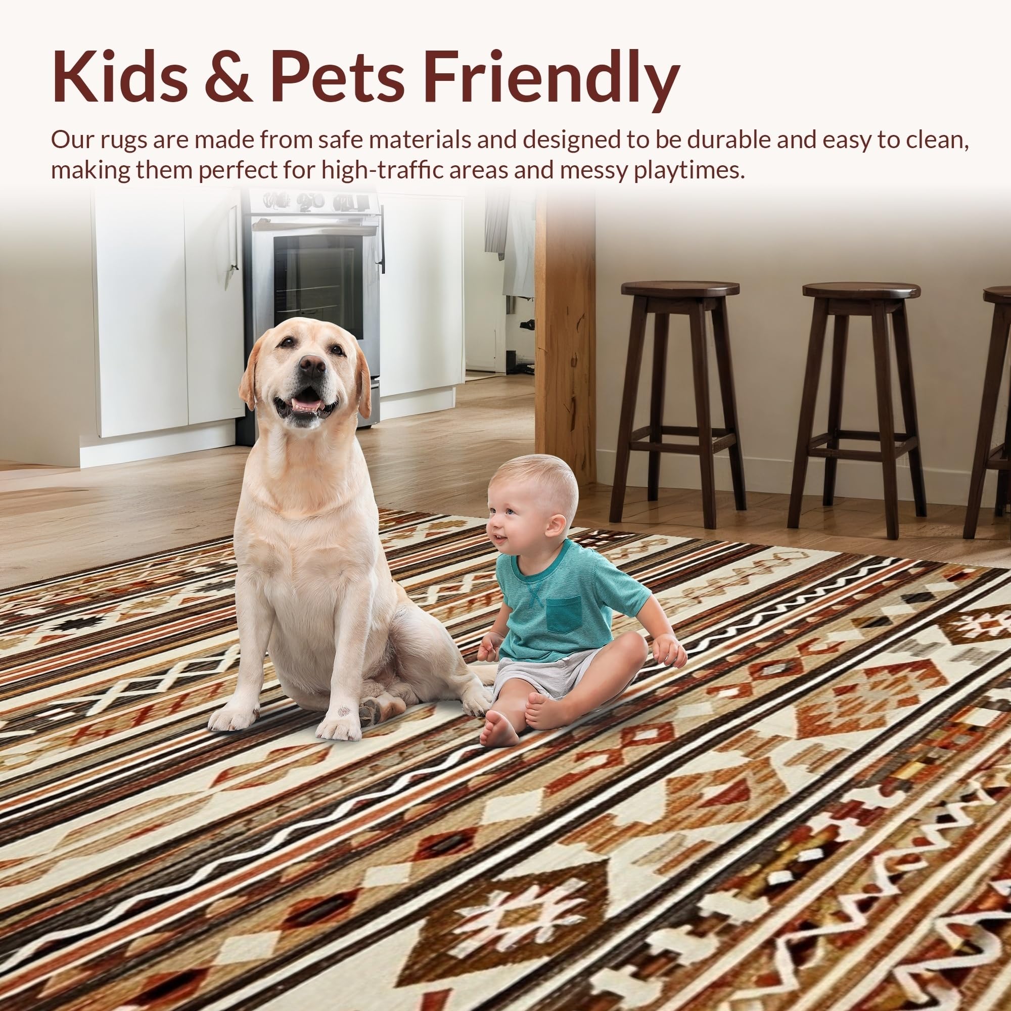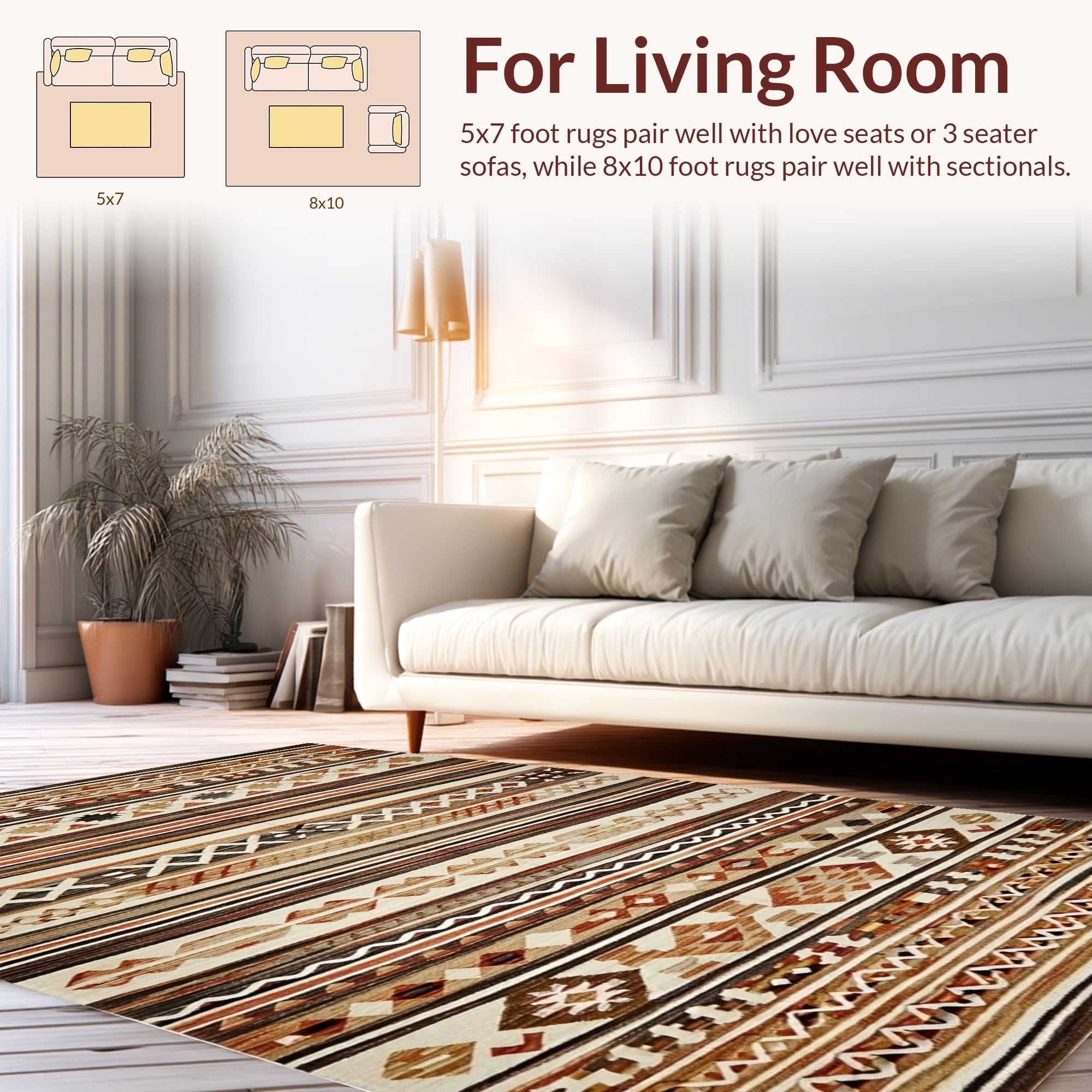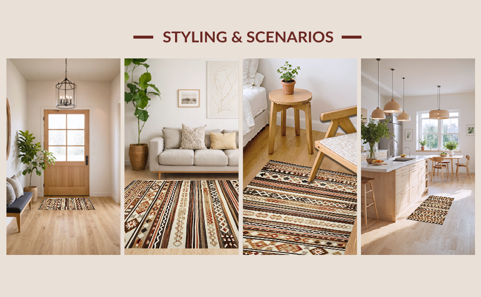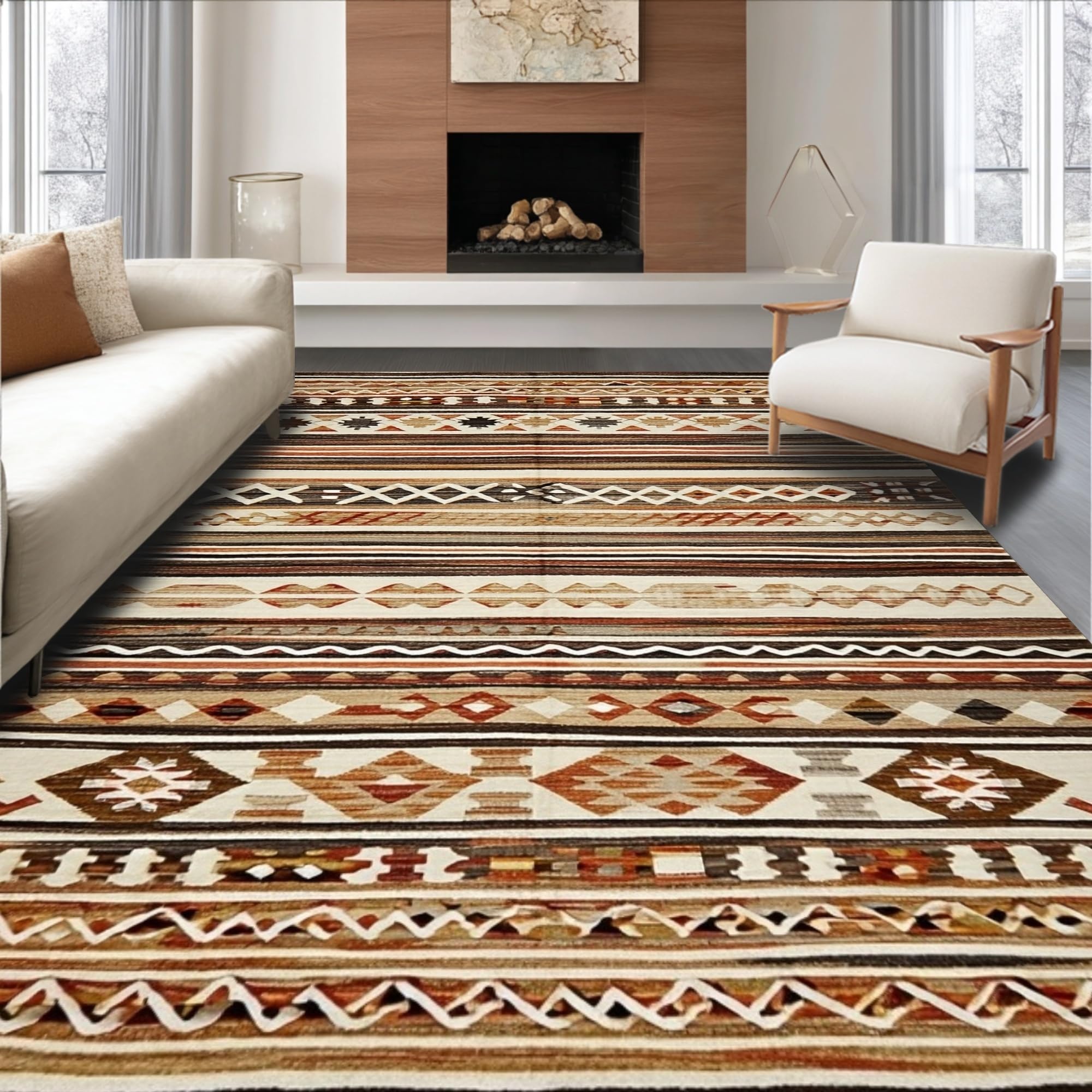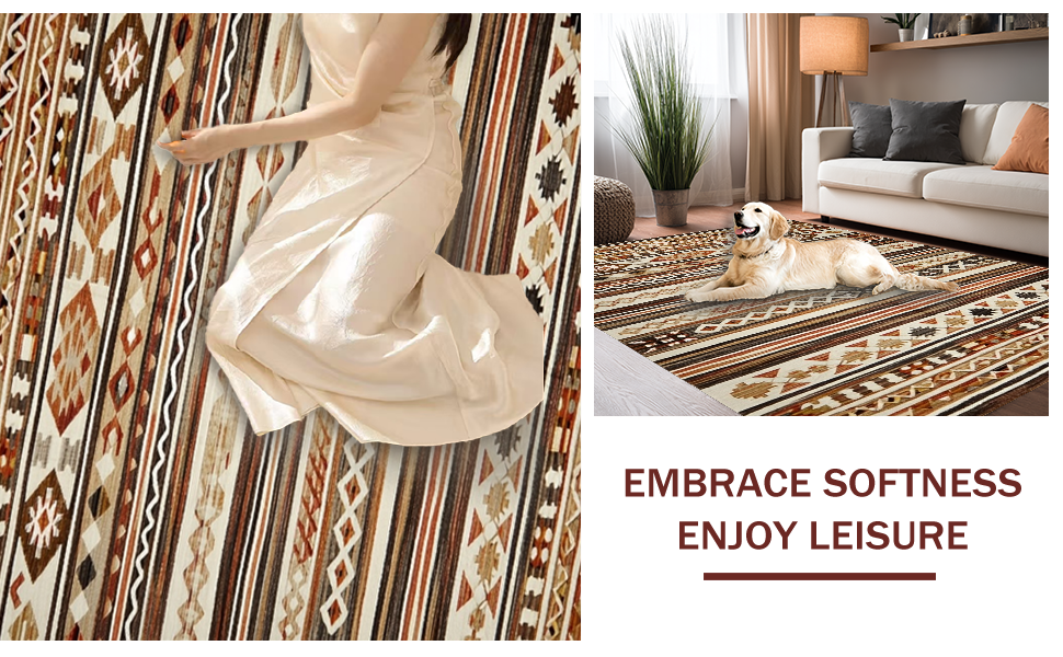 Ultra Soft Area Rug, Non Slip, Stain Resistant, Washable Area Rugs for Living Room, Bedroom, Modern Vintage Lattice Composition(Brown) Overview: