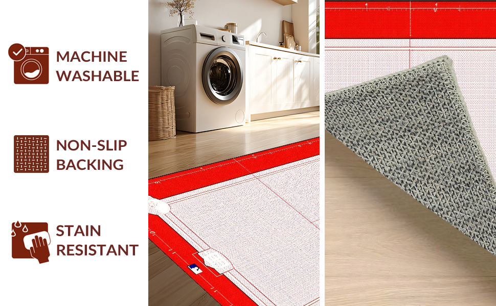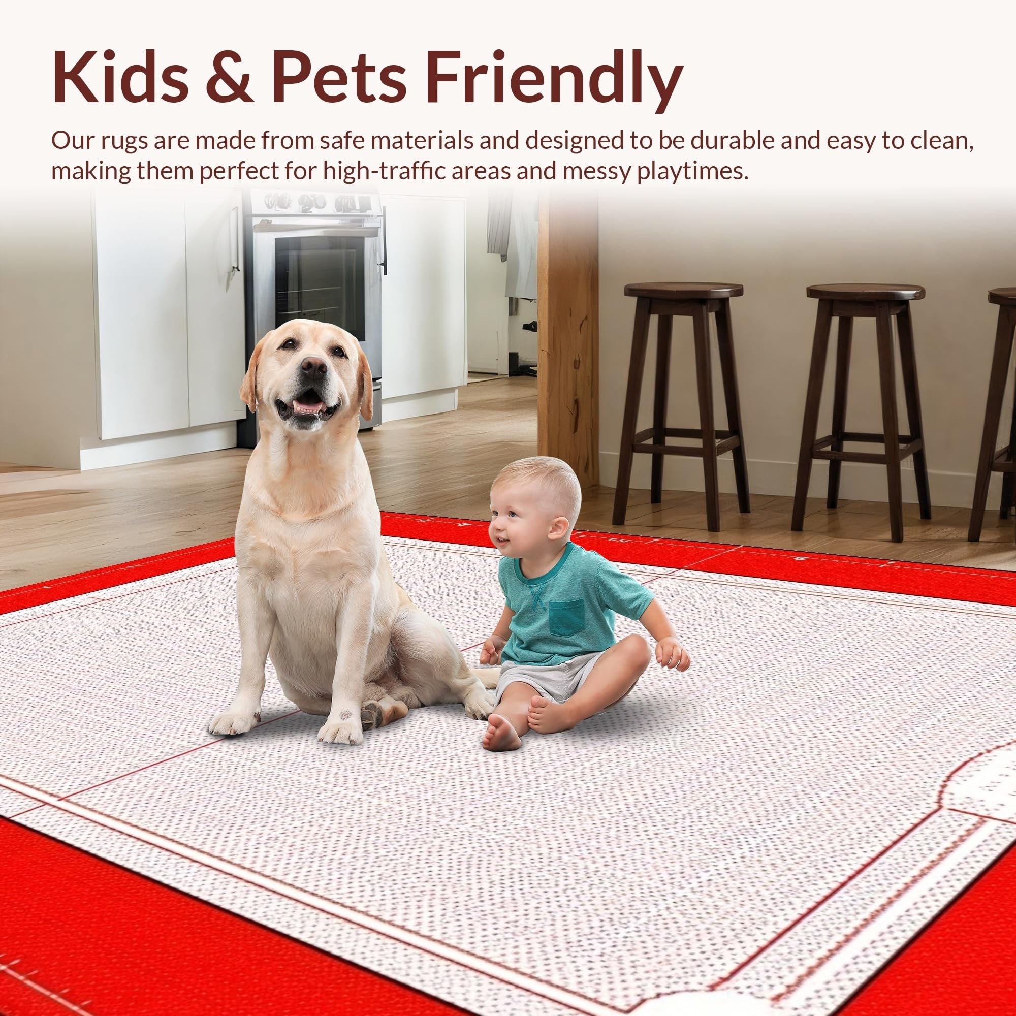 Ultra Soft Area Rug, Non Slip, Stain Resistant, Washable Area Rugs for Living Room, Bedroom, Modern Youthful Baseball Theme(Red) Overview: