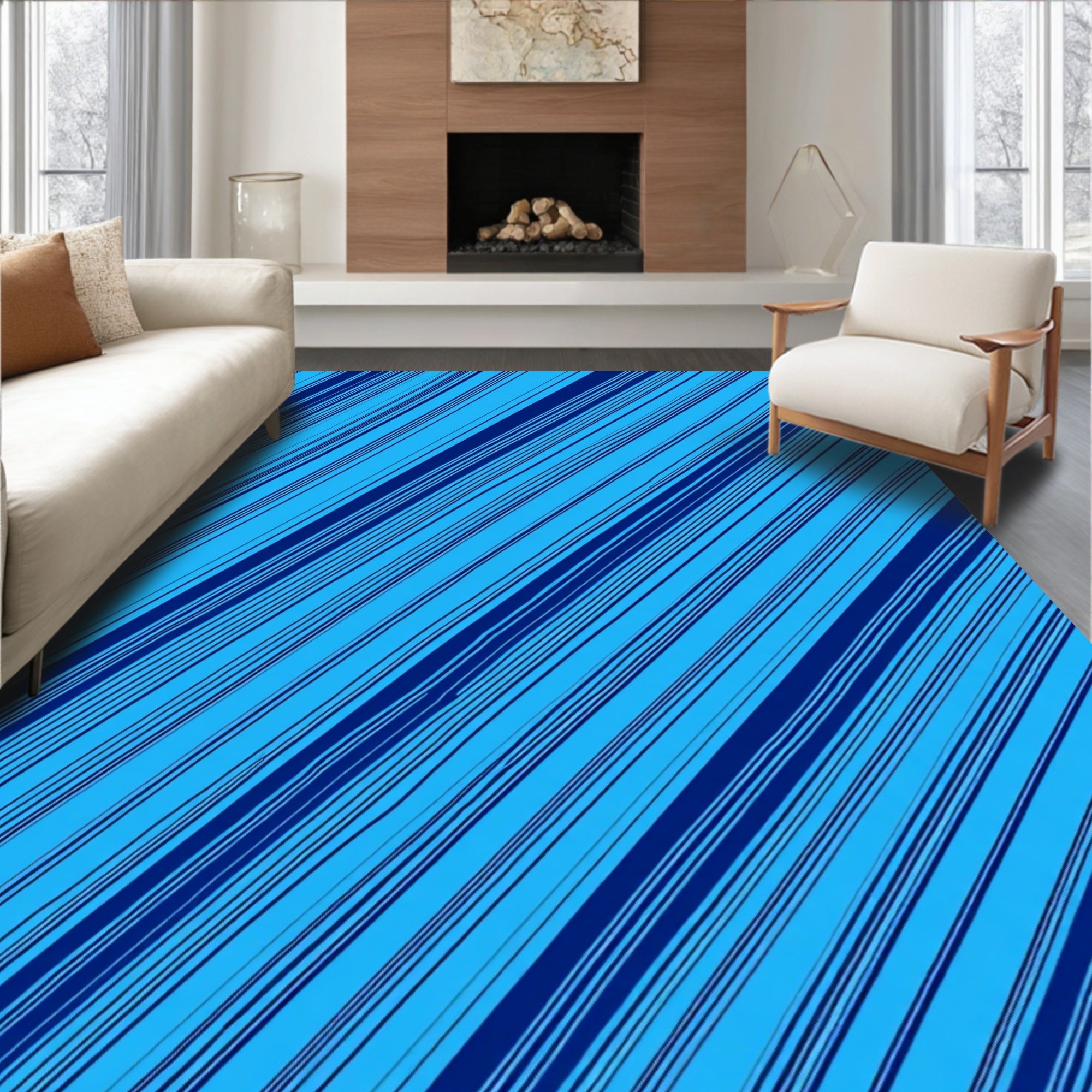 Ultra Soft Area Rug, Non Slip, Stain Resistant, Washable Area Rugs for Living Room, Bedroom, Modern Zigzag Striped Gradient Aesthetic Trendy(Blue) Overview: