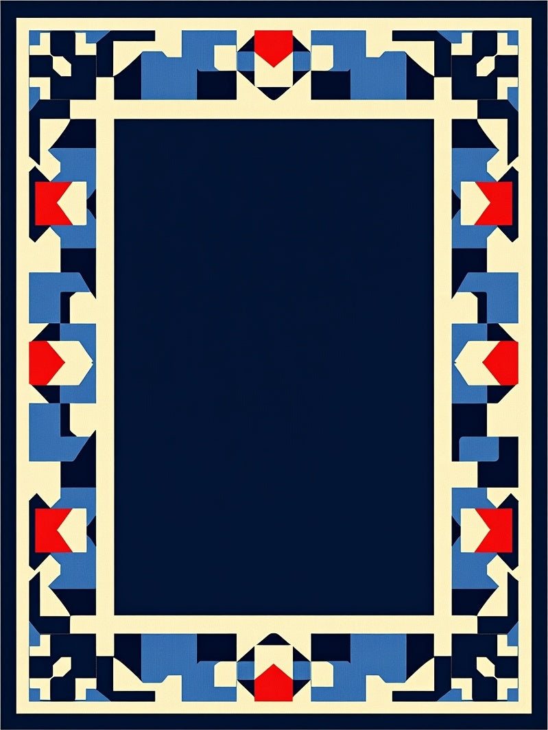 Modernist Border Stripe with Interlocking Mosaic(Navy)