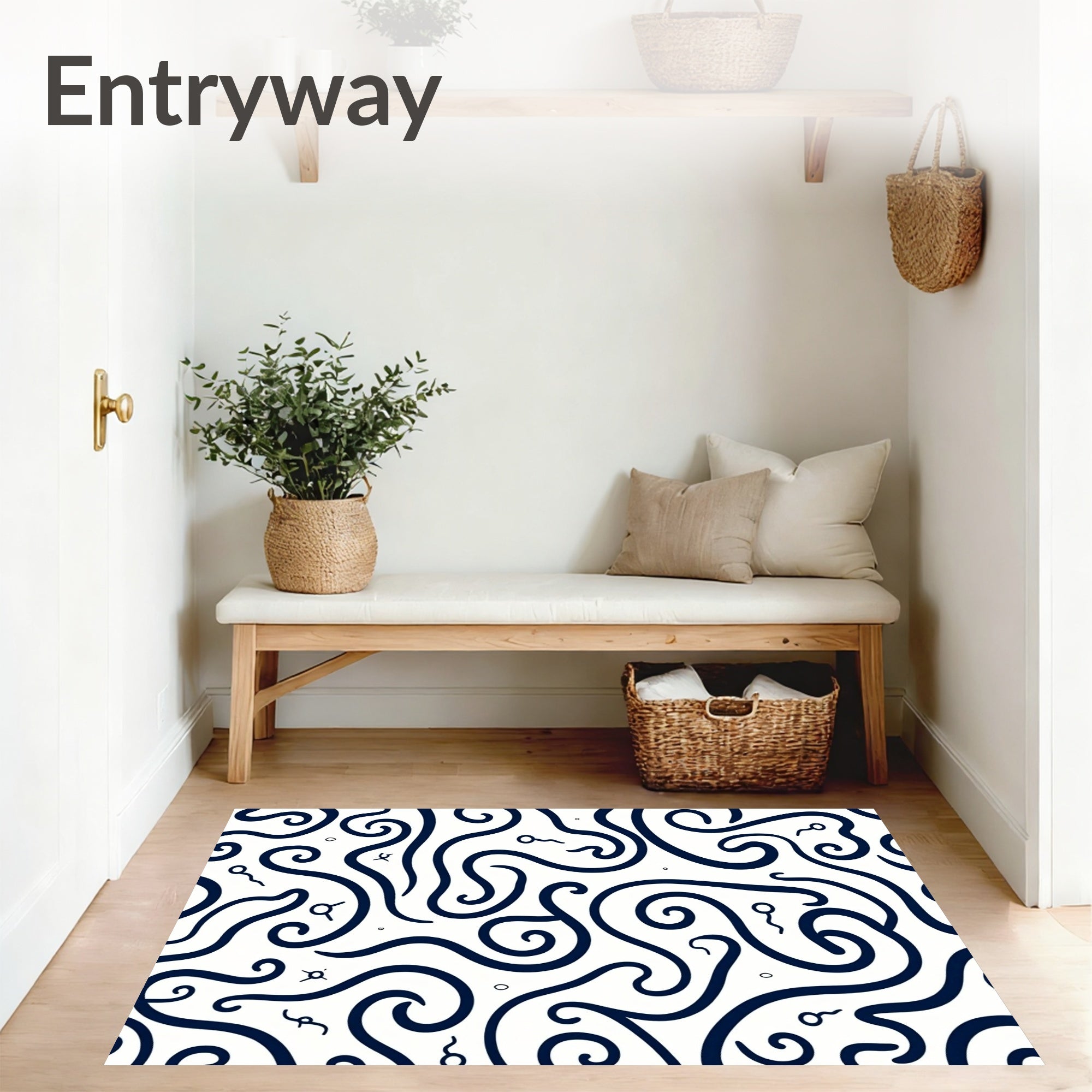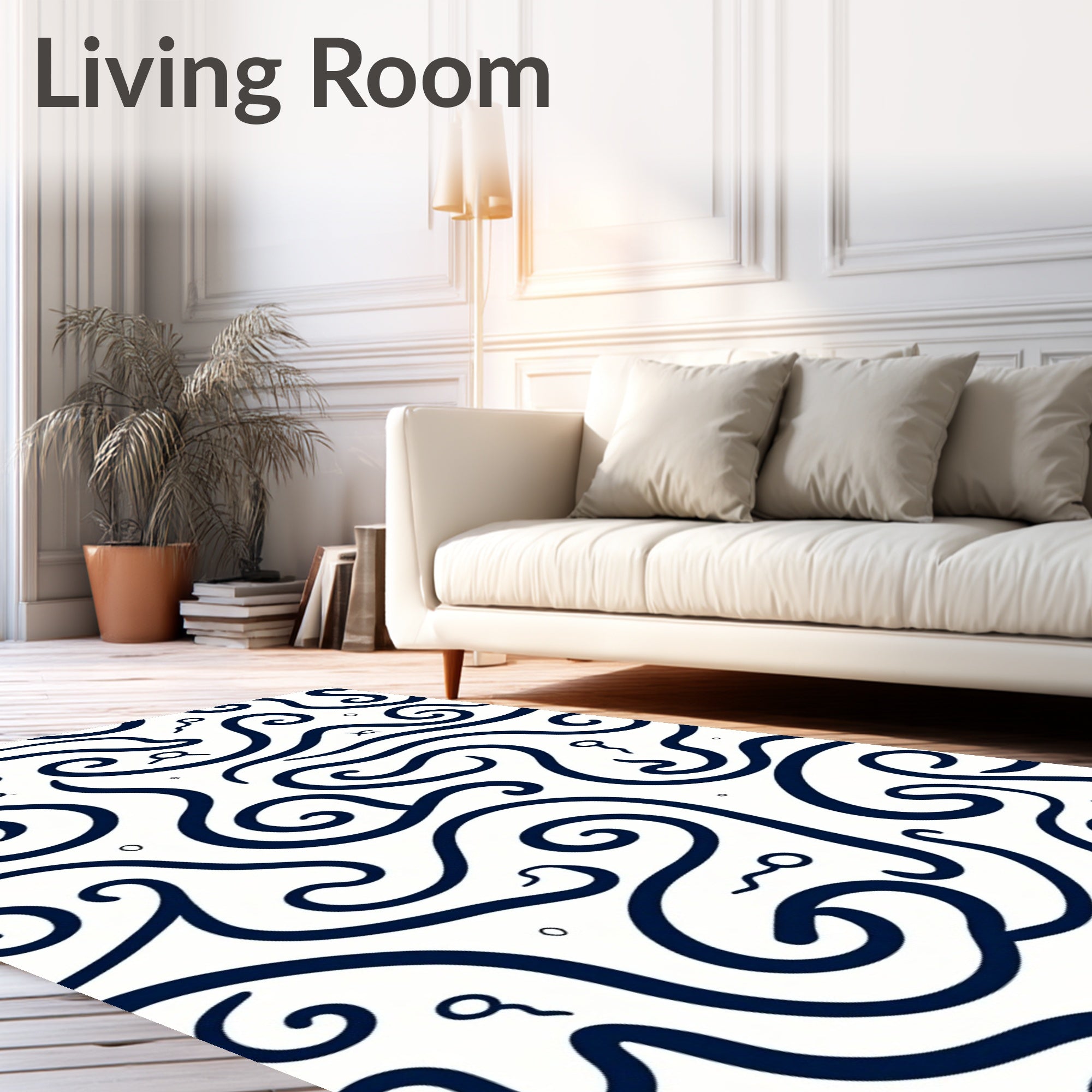 Ultra Soft Area Rug, Non Slip, Stain Resistant, Washable Area Rugs for Living Room, Bedroom, Modernist Curving Ribbon Spiral Twist Asymmetrical(Blue) Overview: