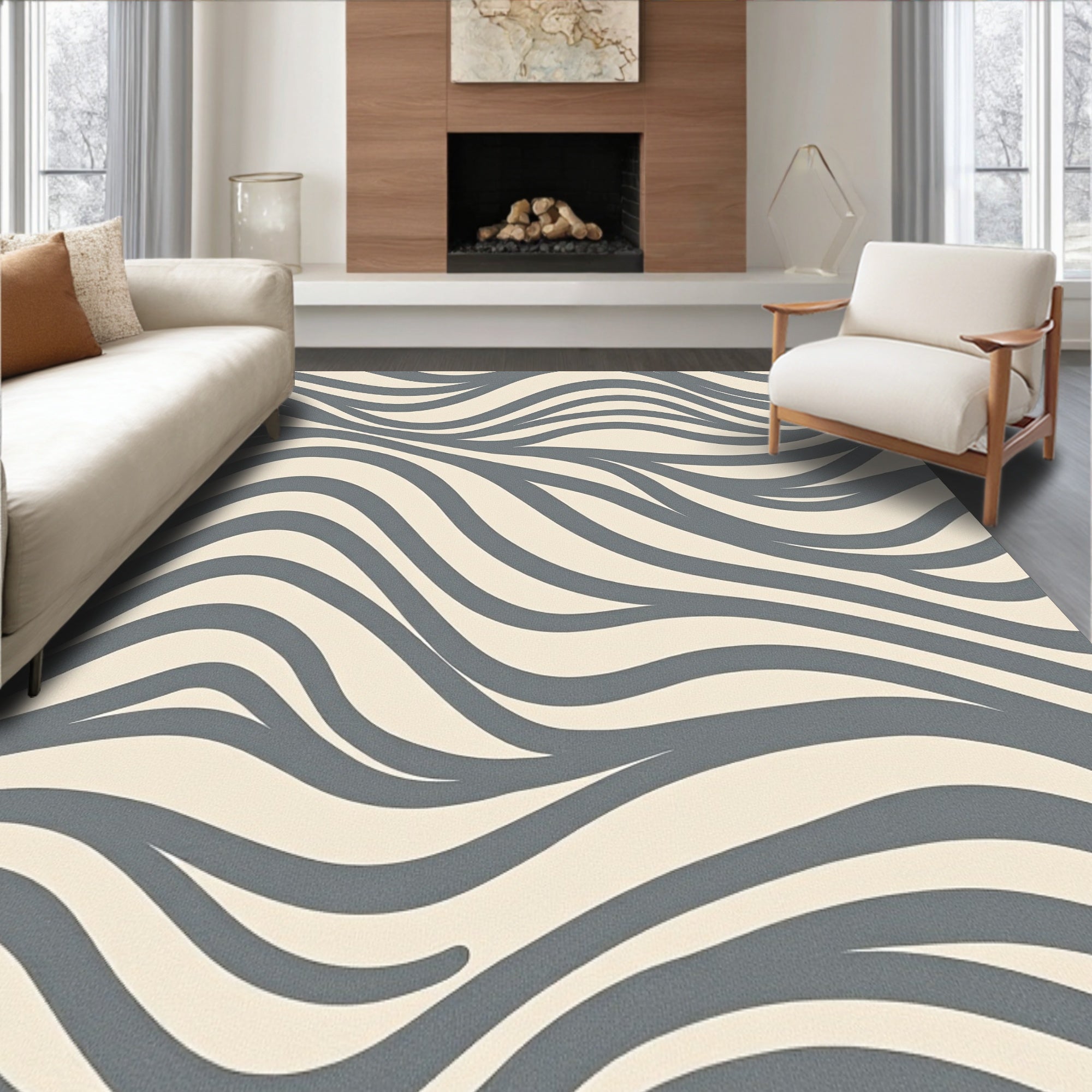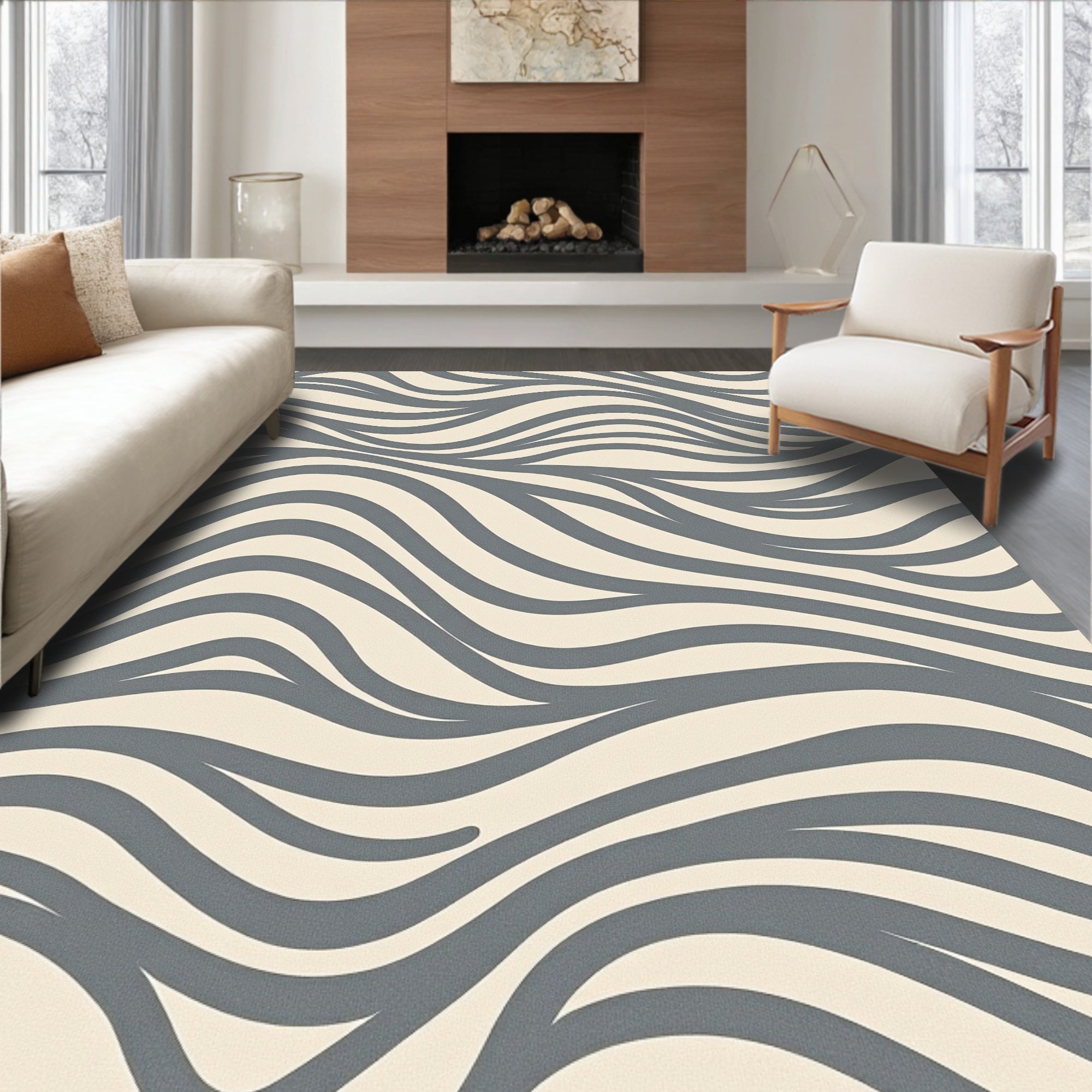 Ultra Soft Area Rug, Non Slip, Stain Resistant, Washable Area Rugs for Living Room, Bedroom, Modernist Expressionist Wave Handwoven Decorative(Gray) Overview: